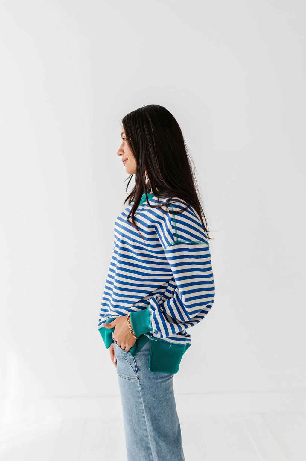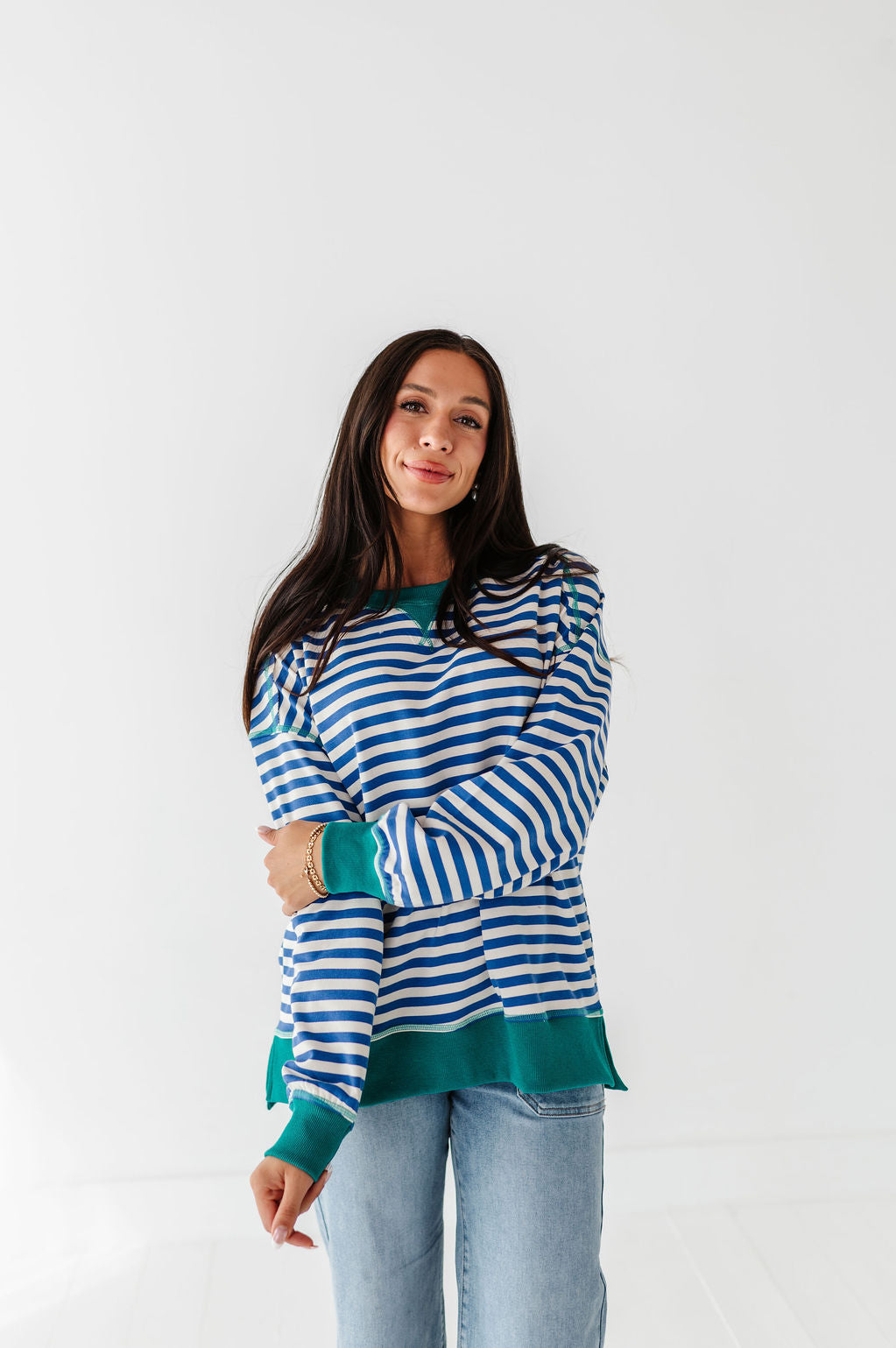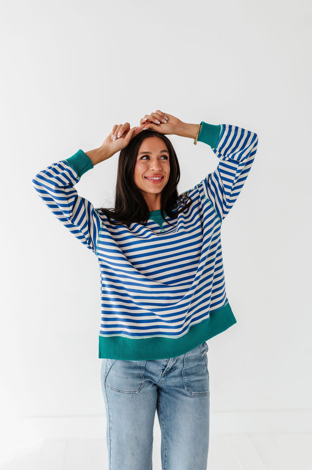 Super cute! Bottoms are a high waisted fit and the top stayed in place on my very active daughter.