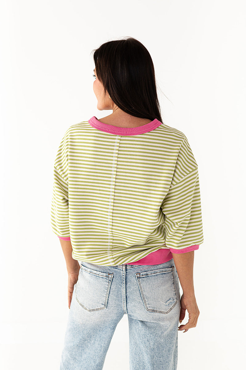 cute, soft top. i followed the video sizing and ordered a small. 5'5", 165#, B cup.