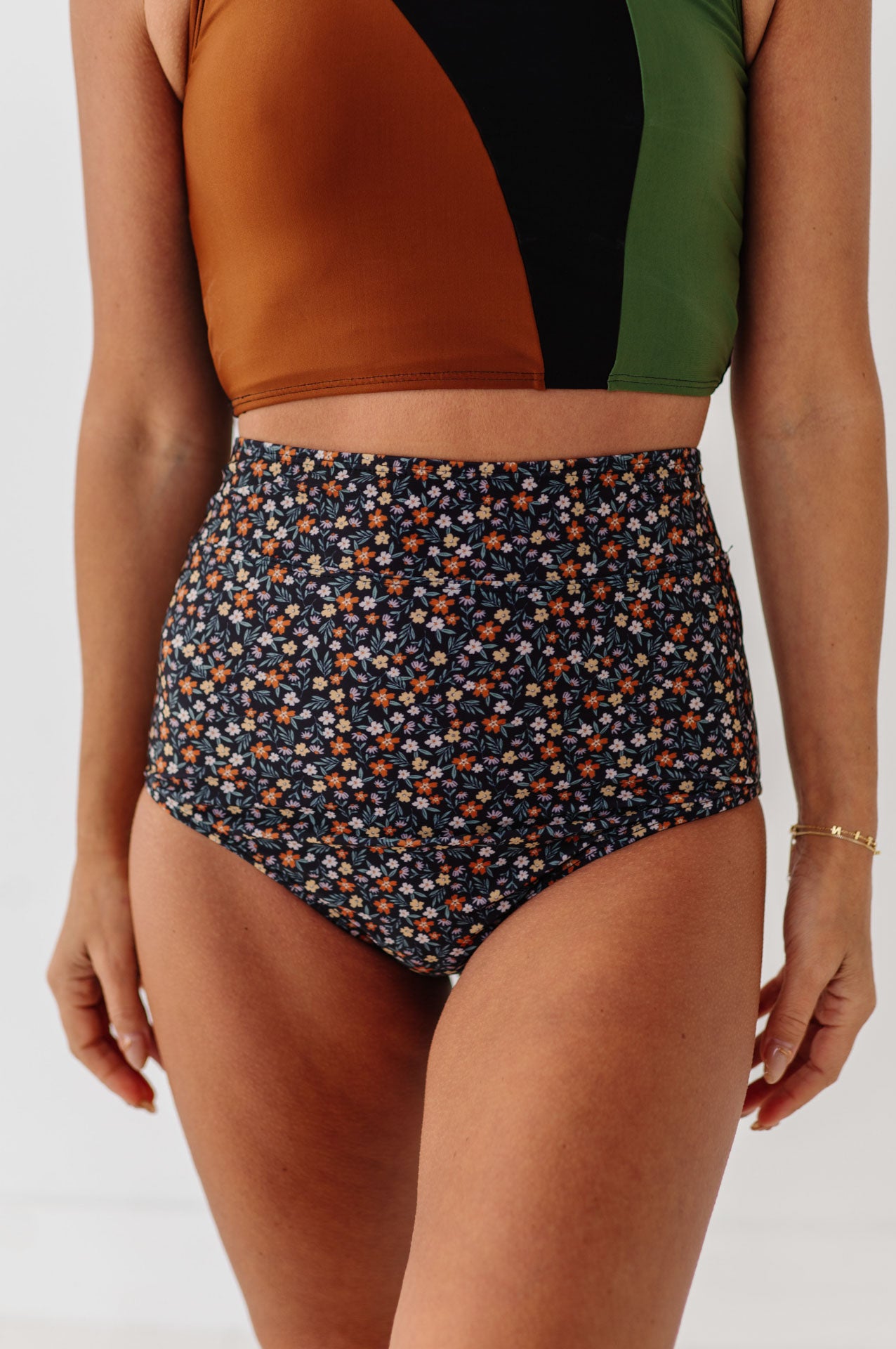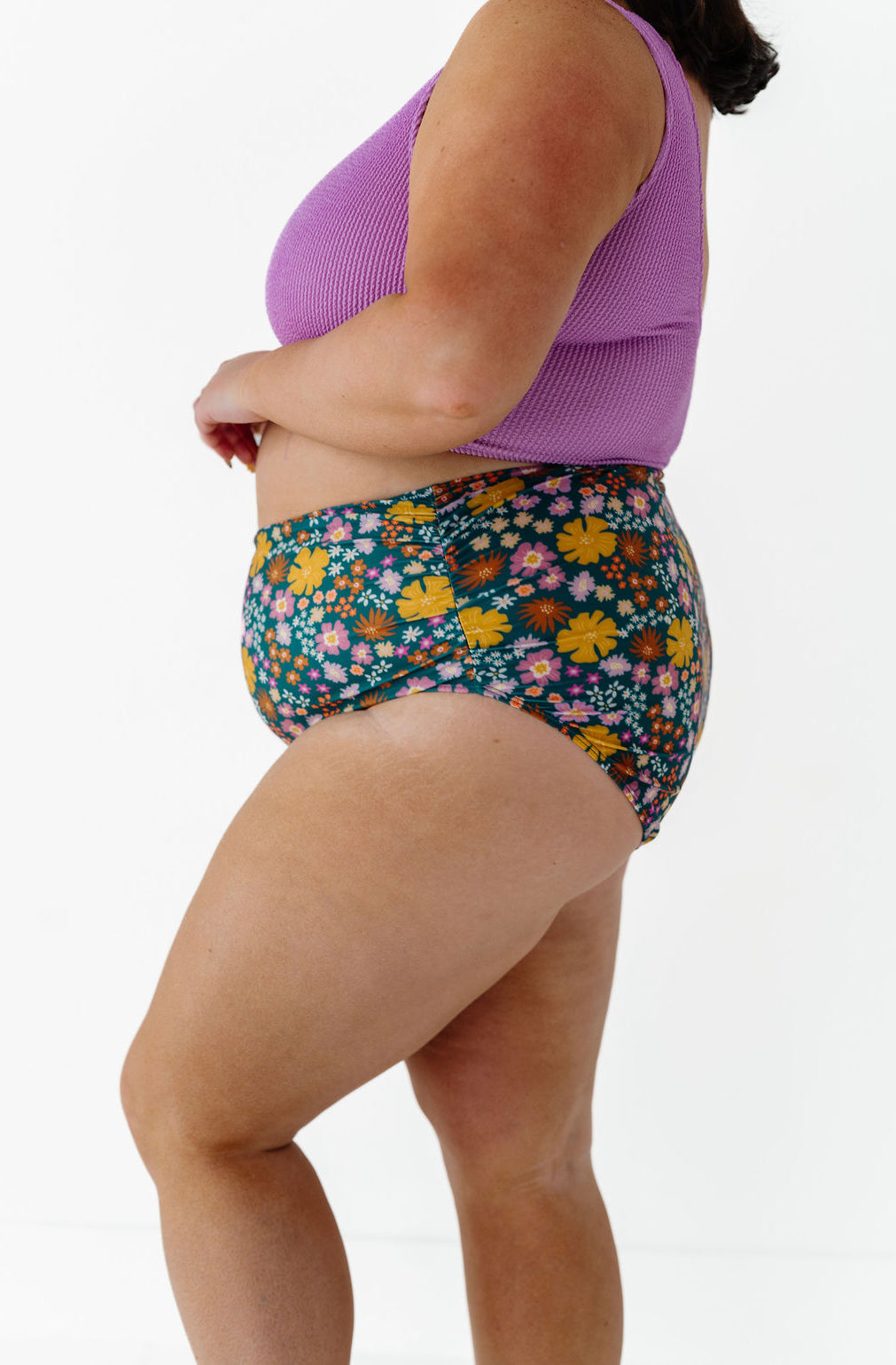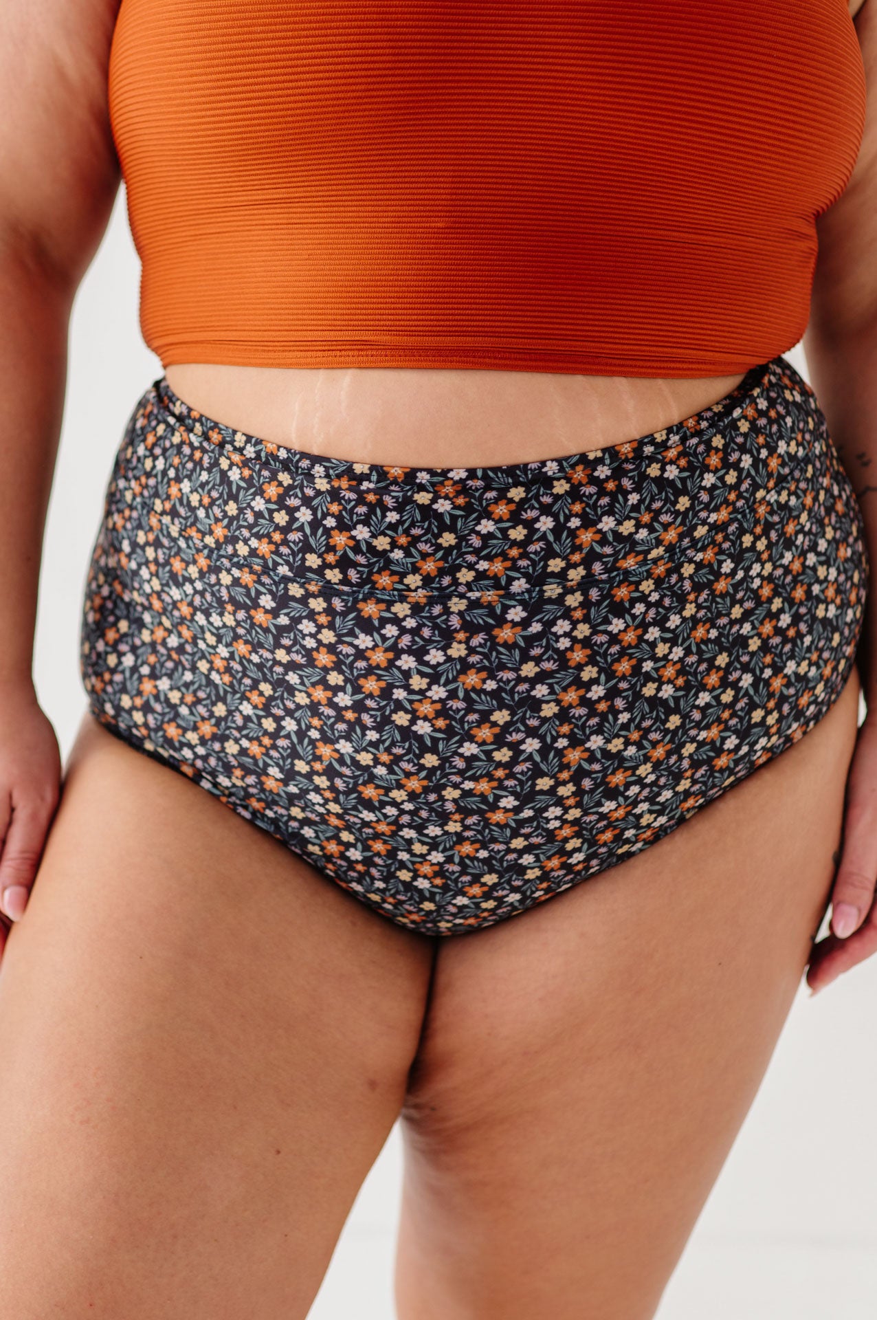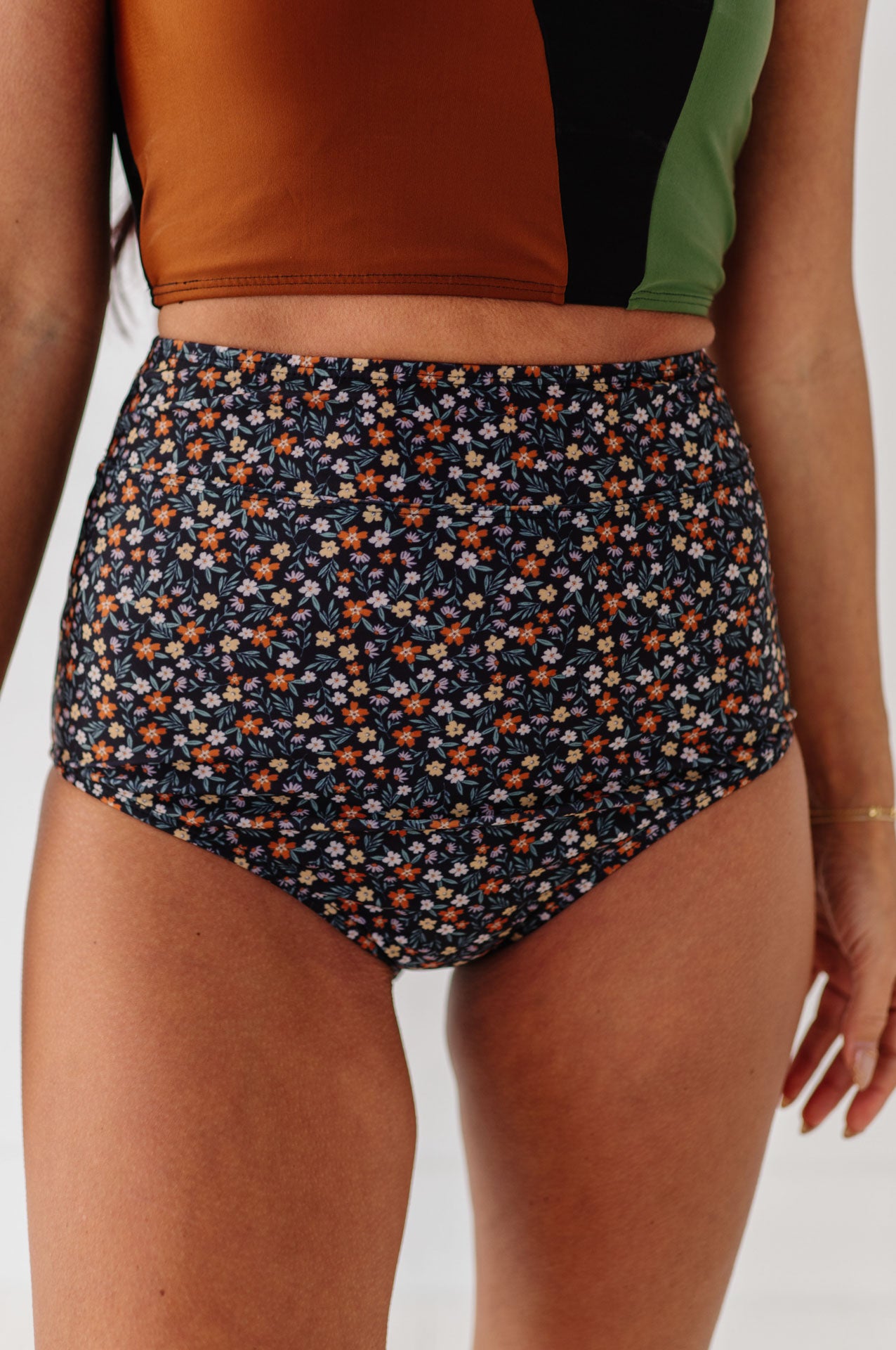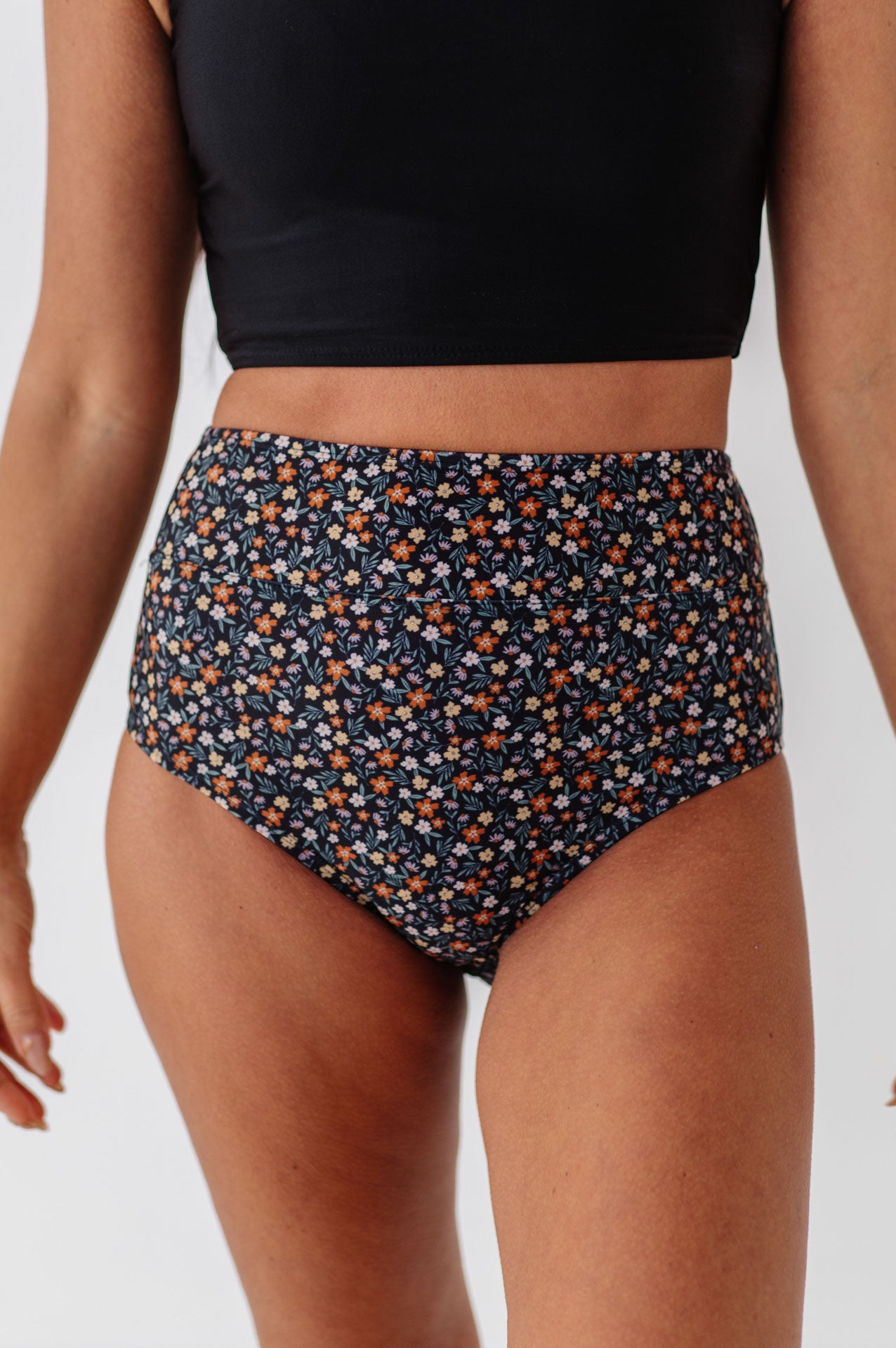 Just what I was looking for! Perfect rise just above belly button. I was looking for a swimsuit line that had pieces I felt comfortable in running around with my two young kids and this is it!