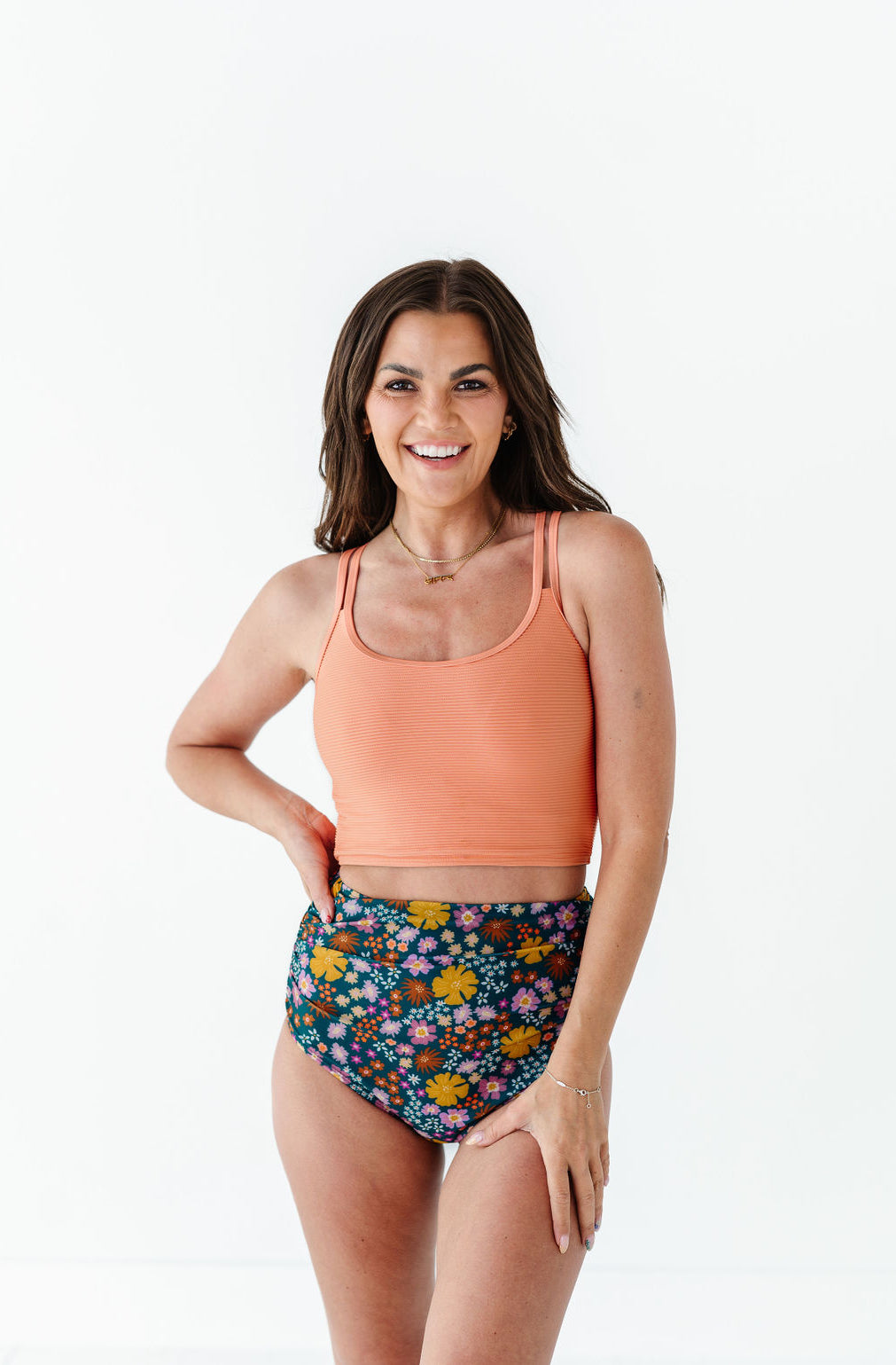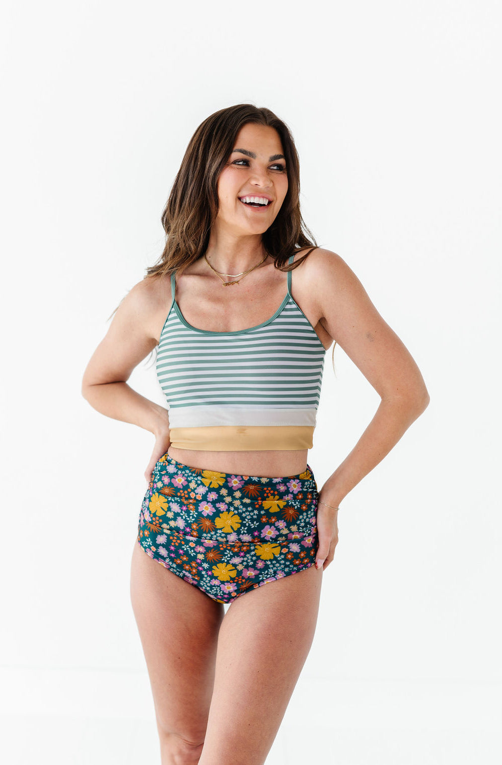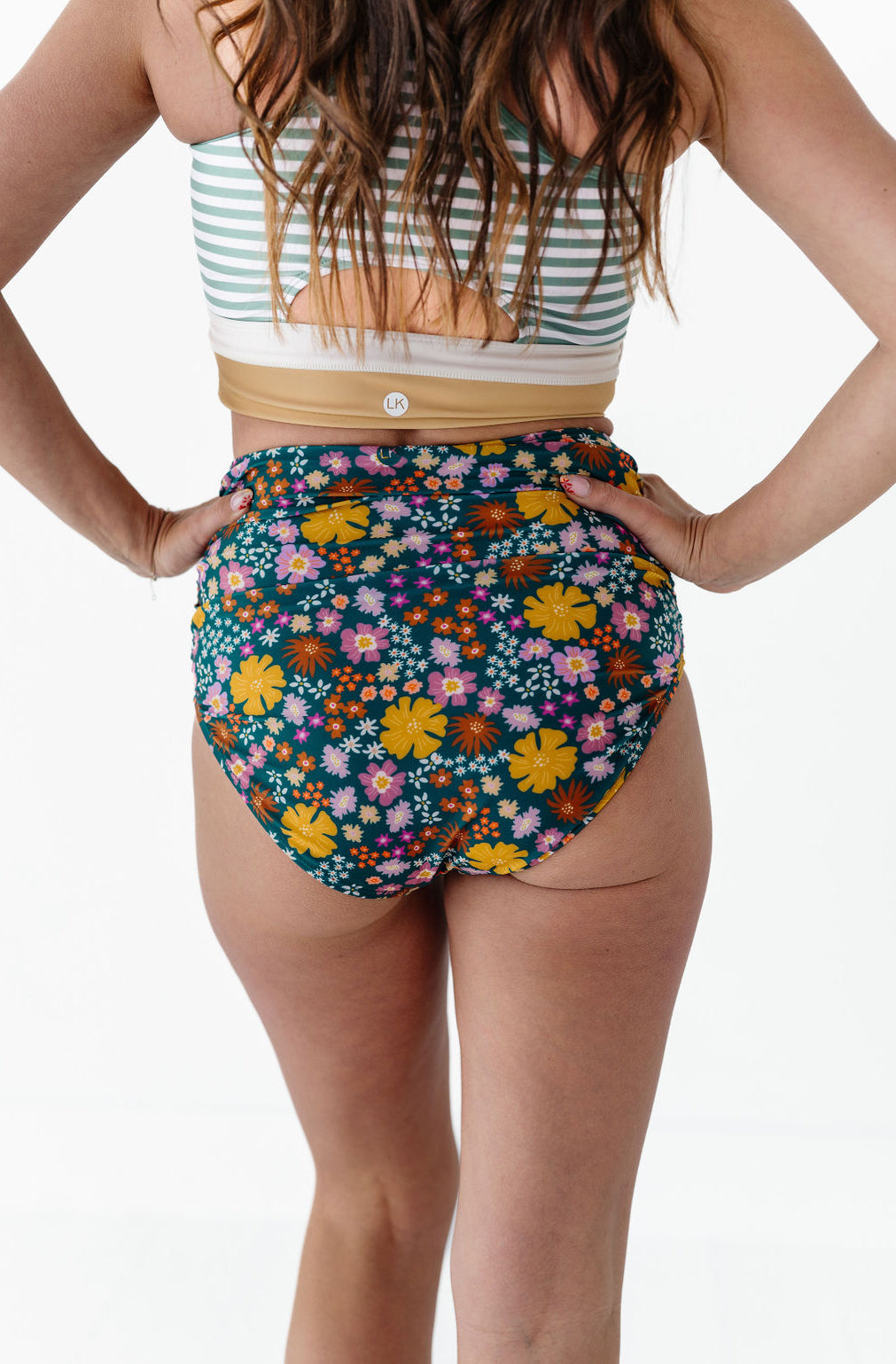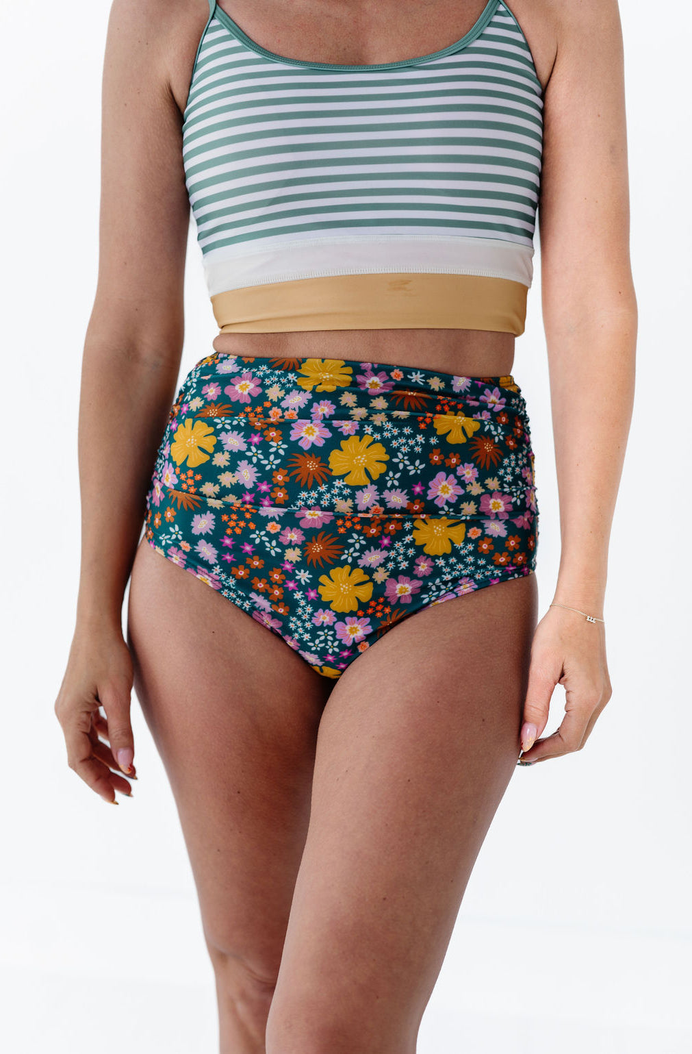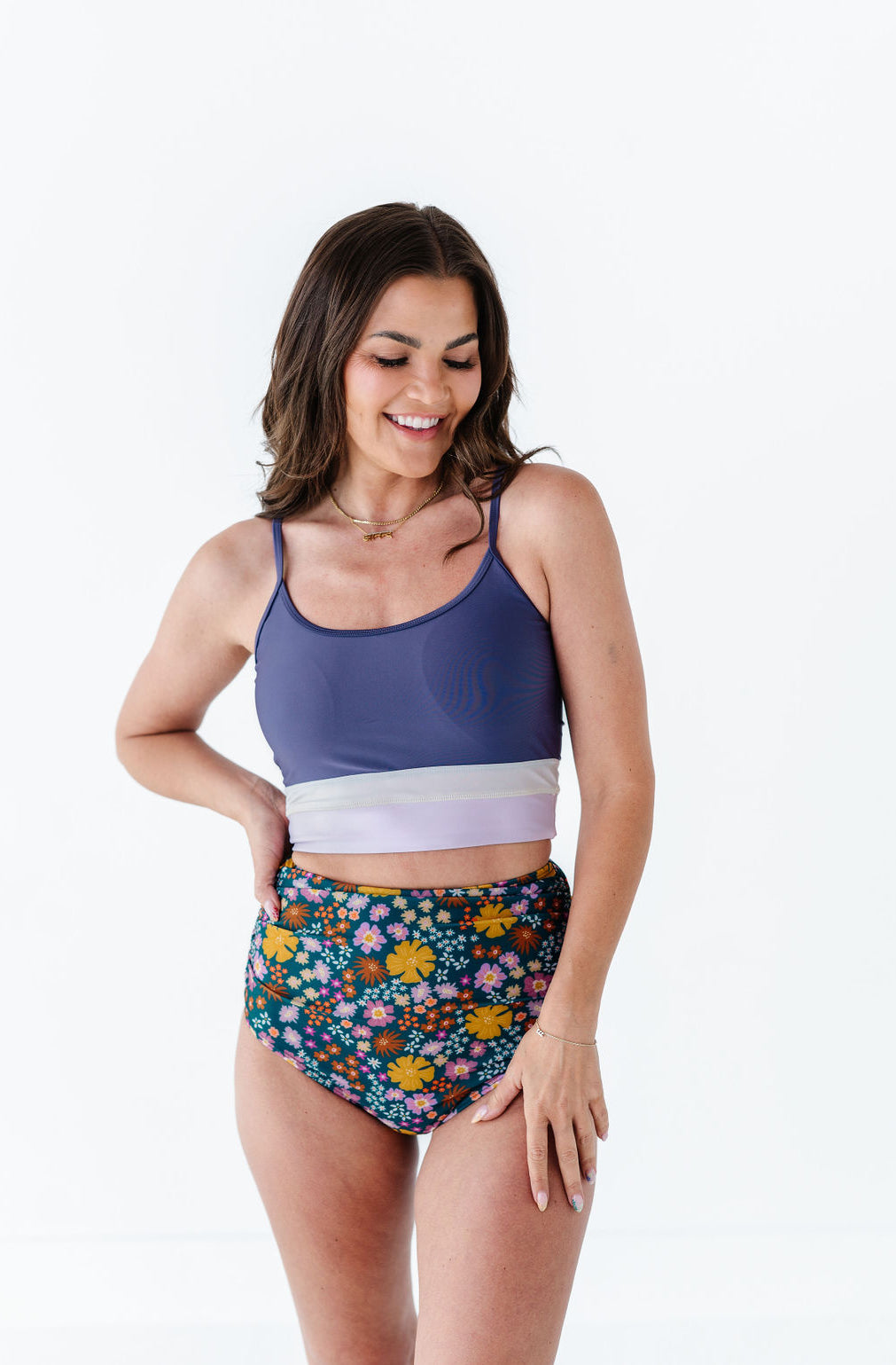 Just what I was looking for! Perfect rise just above belly button. I was looking for a swimsuit line that had pieces I felt comfortable in running around with my two young kids and this is it!