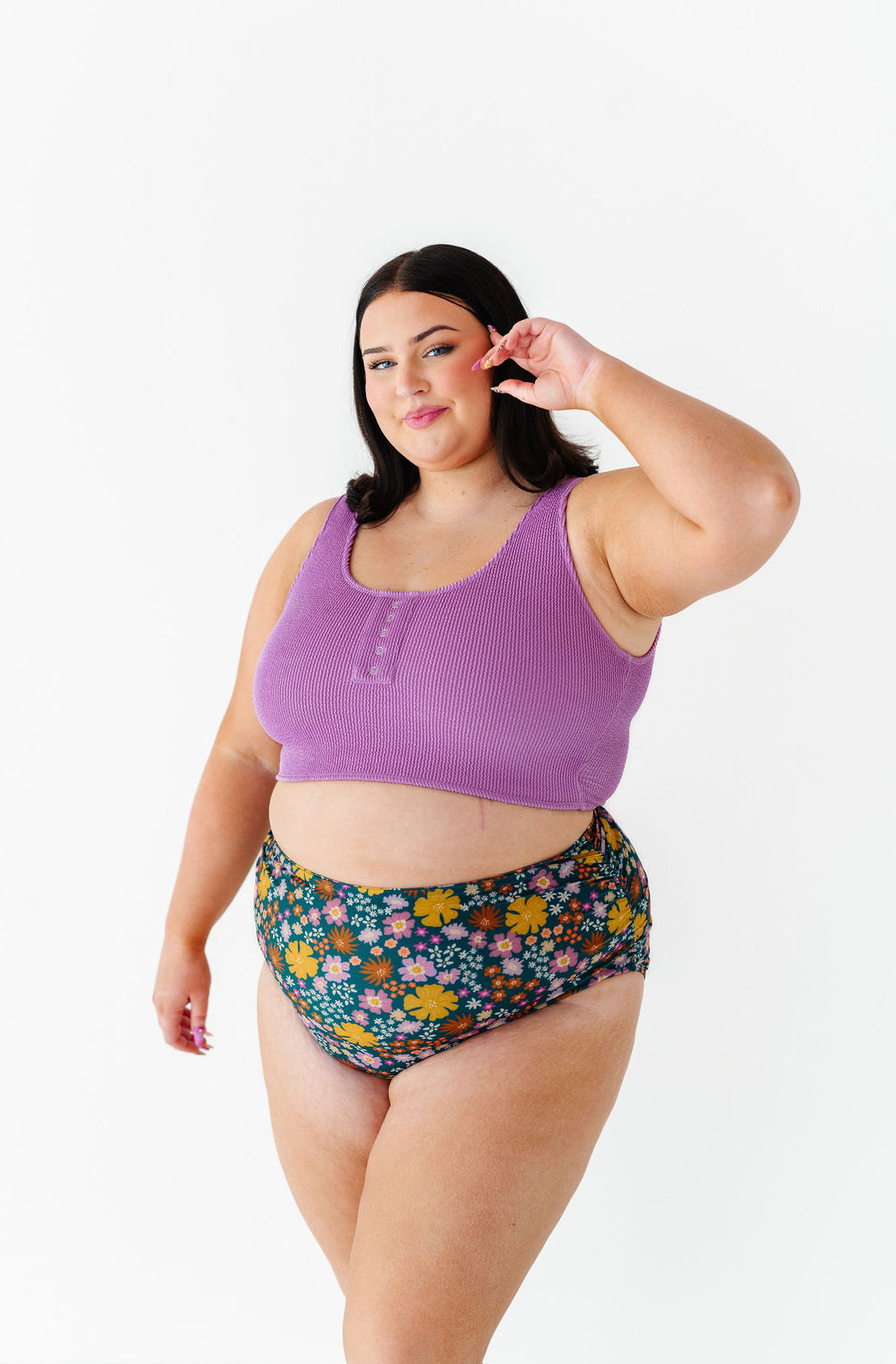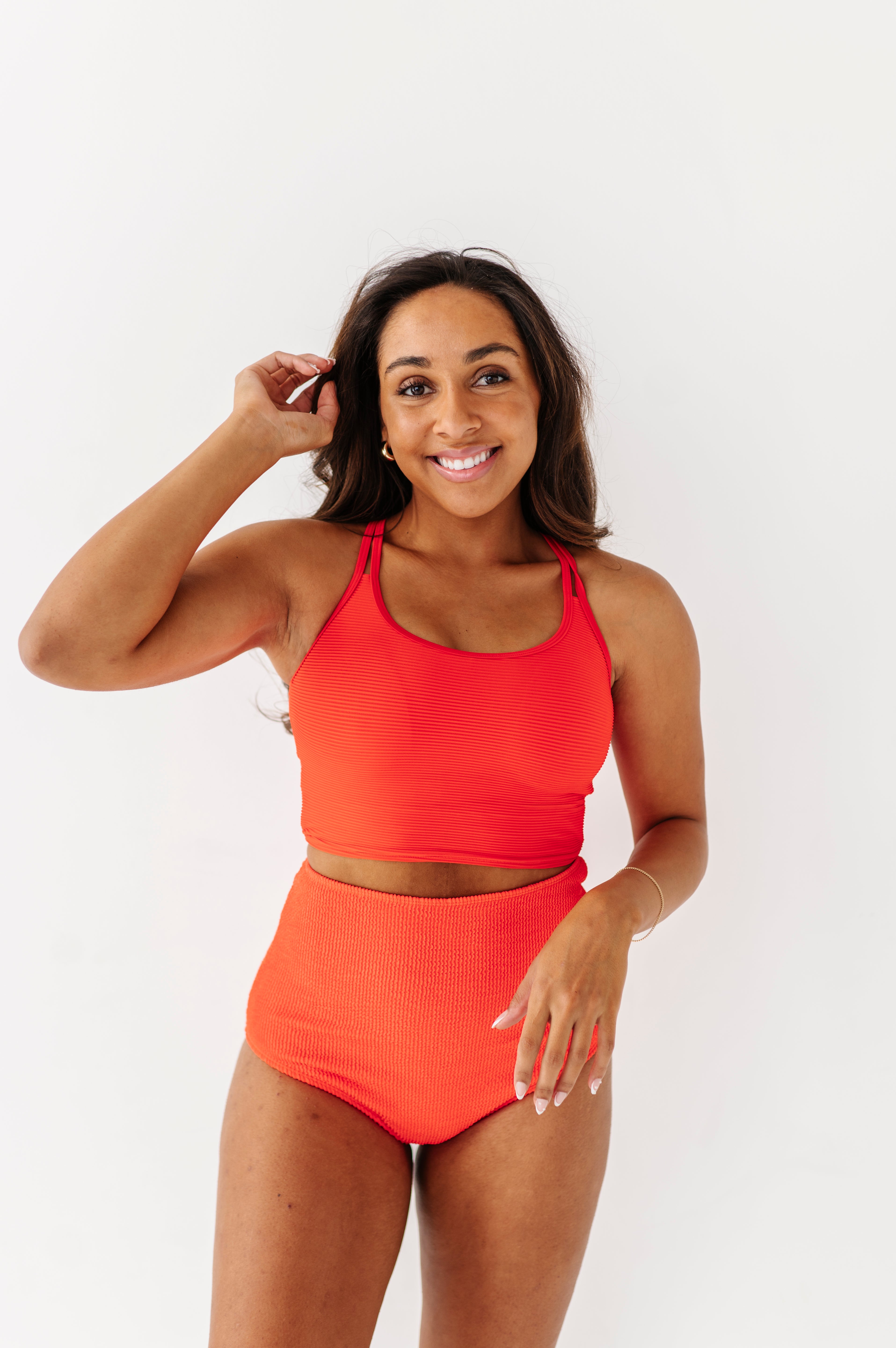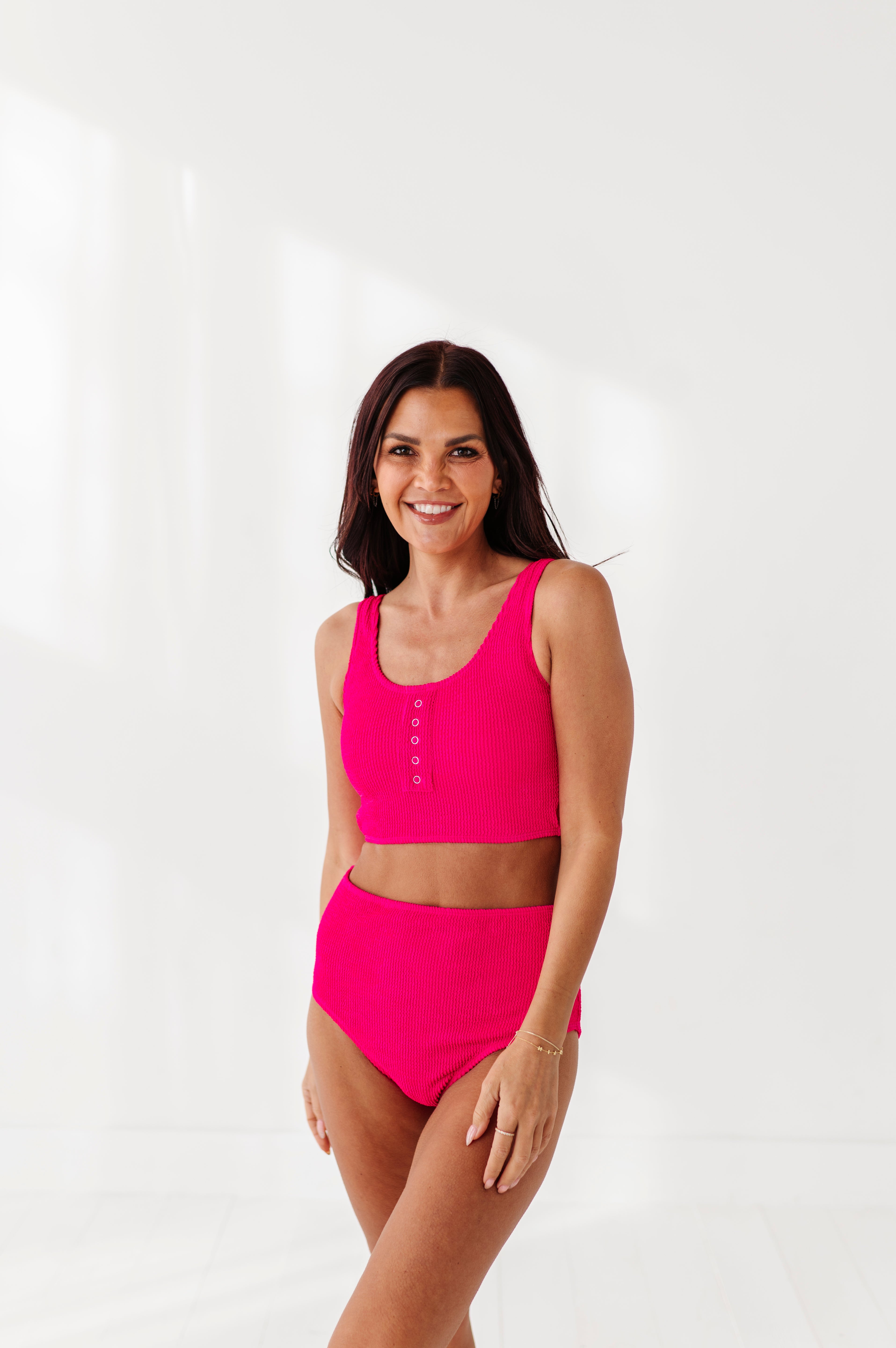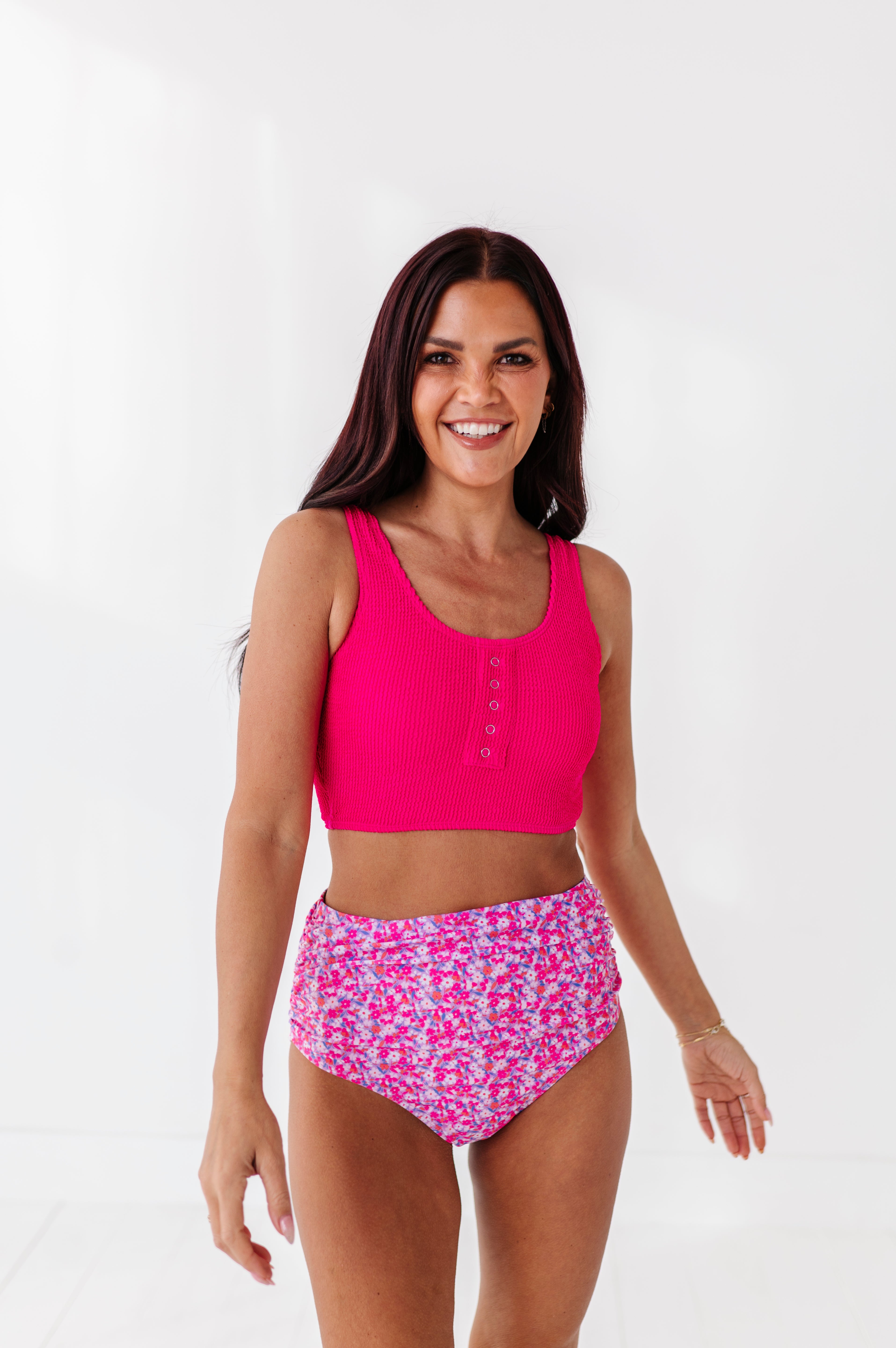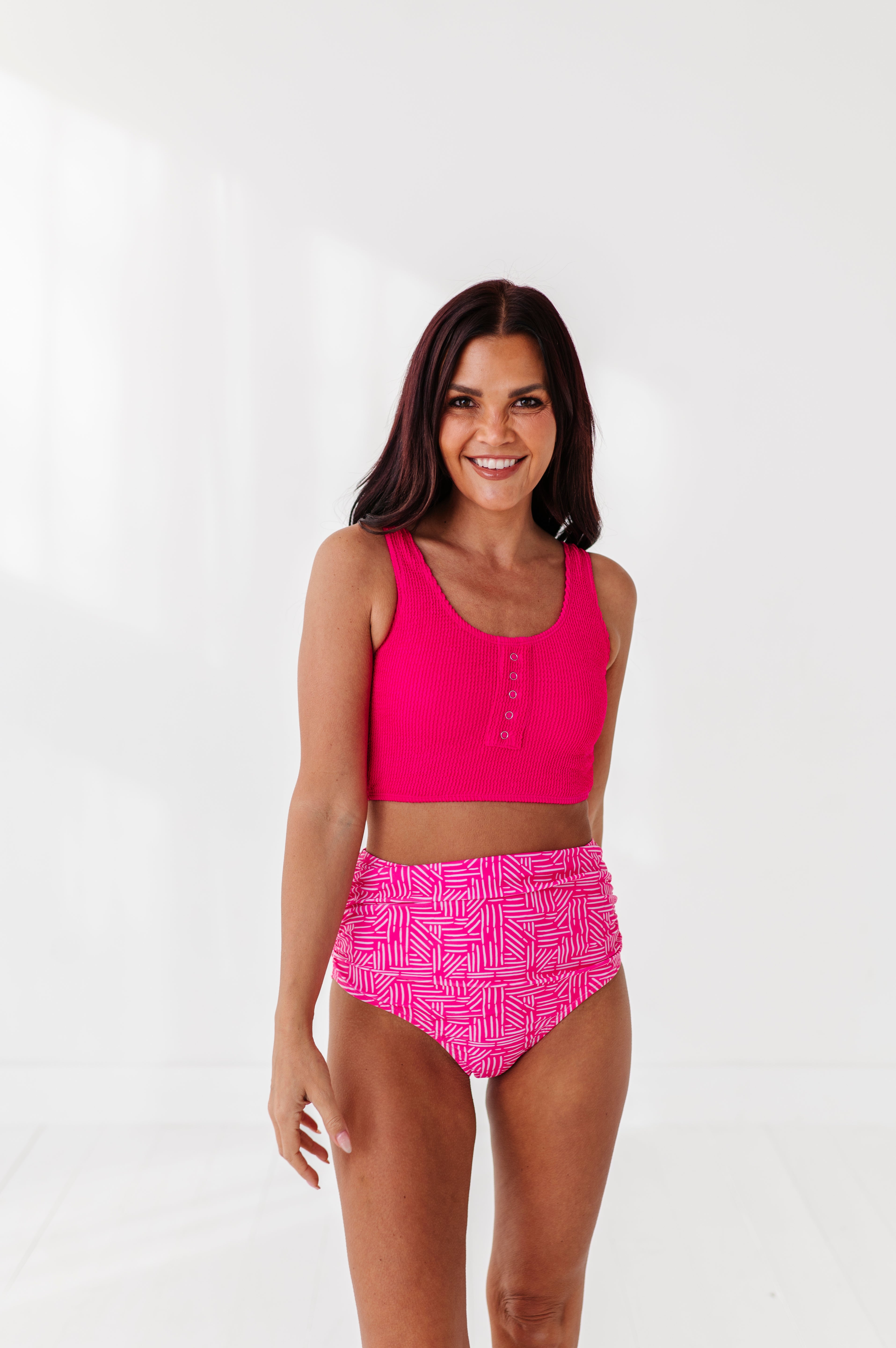 Just what I was looking for! Perfect rise just above belly button. I was looking for a swimsuit line that had pieces I felt comfortable in running around with my two young kids and this is it!