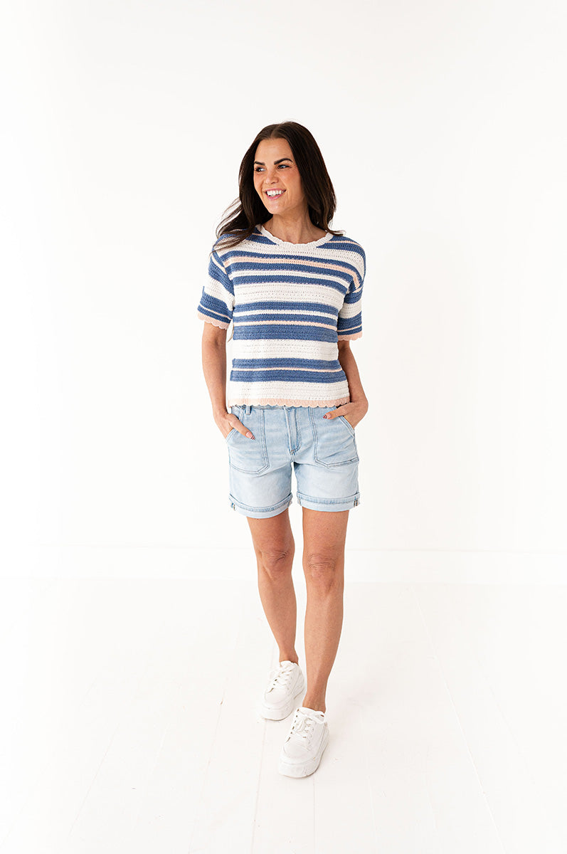 I started buying the colorblock crop with the matching high waisted Monroe bottoms a year ago. I have a few different colors in them and I’m obsessed. I am 5’2 136 pounds and wear medium in both. I’m about to be 40 and would rather have butt and tummy coverage and this provides both. I have bought from many other shops over the years, and this is the only bathing suit that gives me the butt coverage I want, while still looking cute.