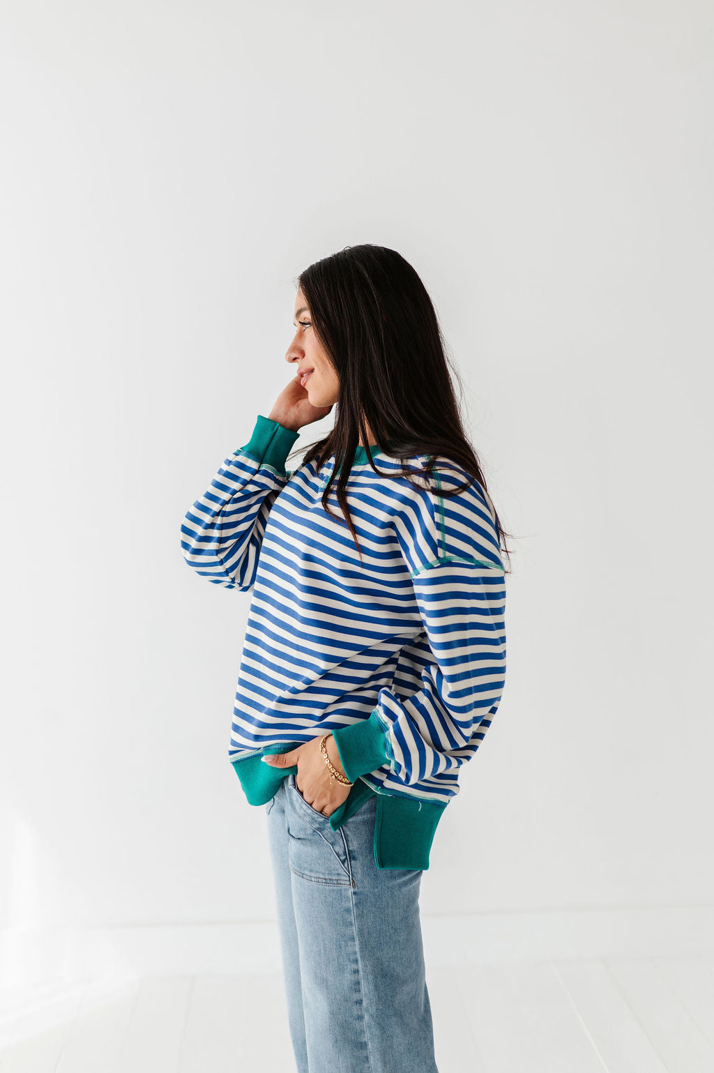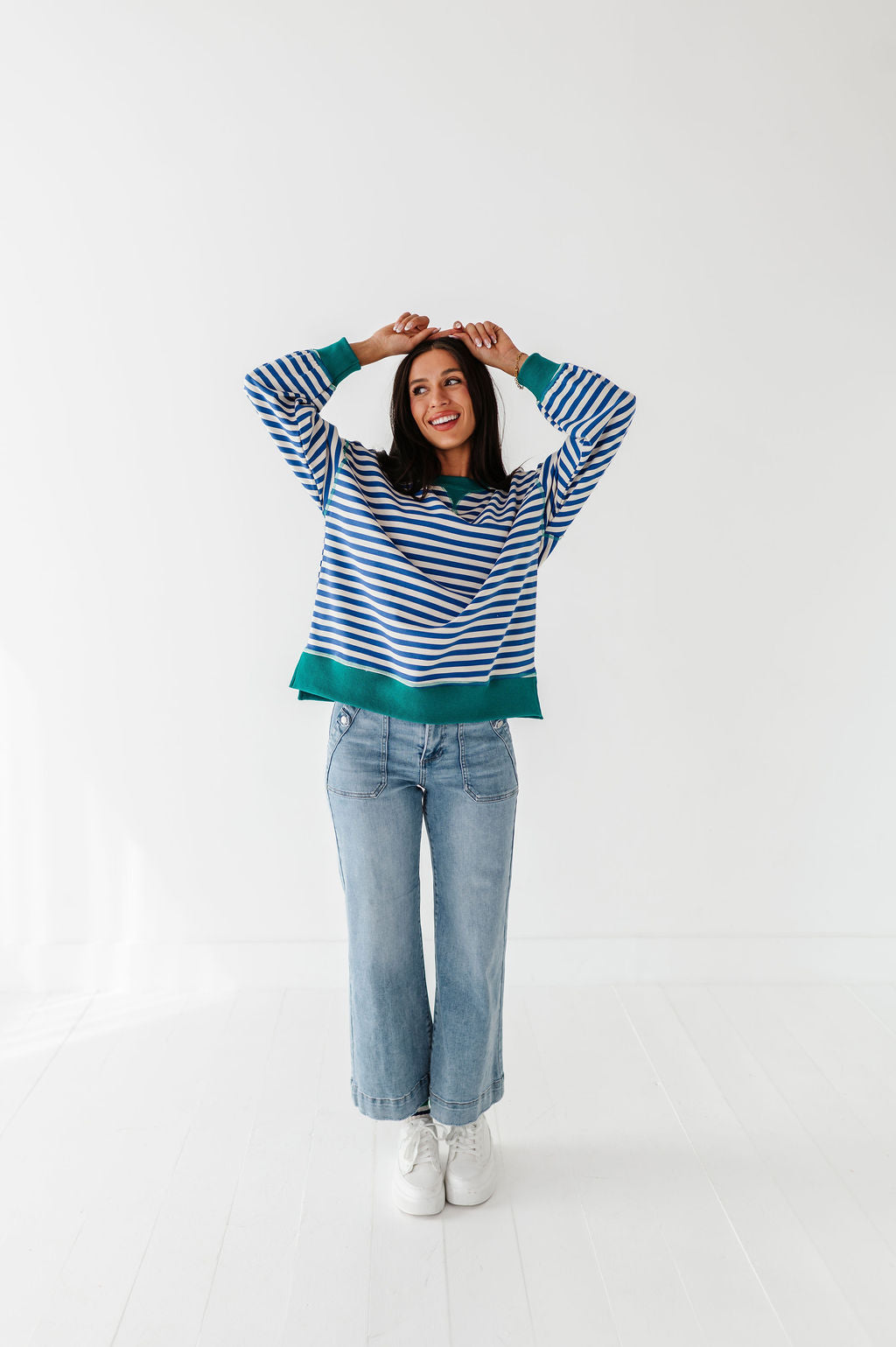 Super cute! Bottoms are a high waisted fit and the top stayed in place on my very active daughter.