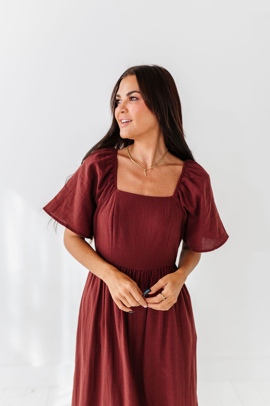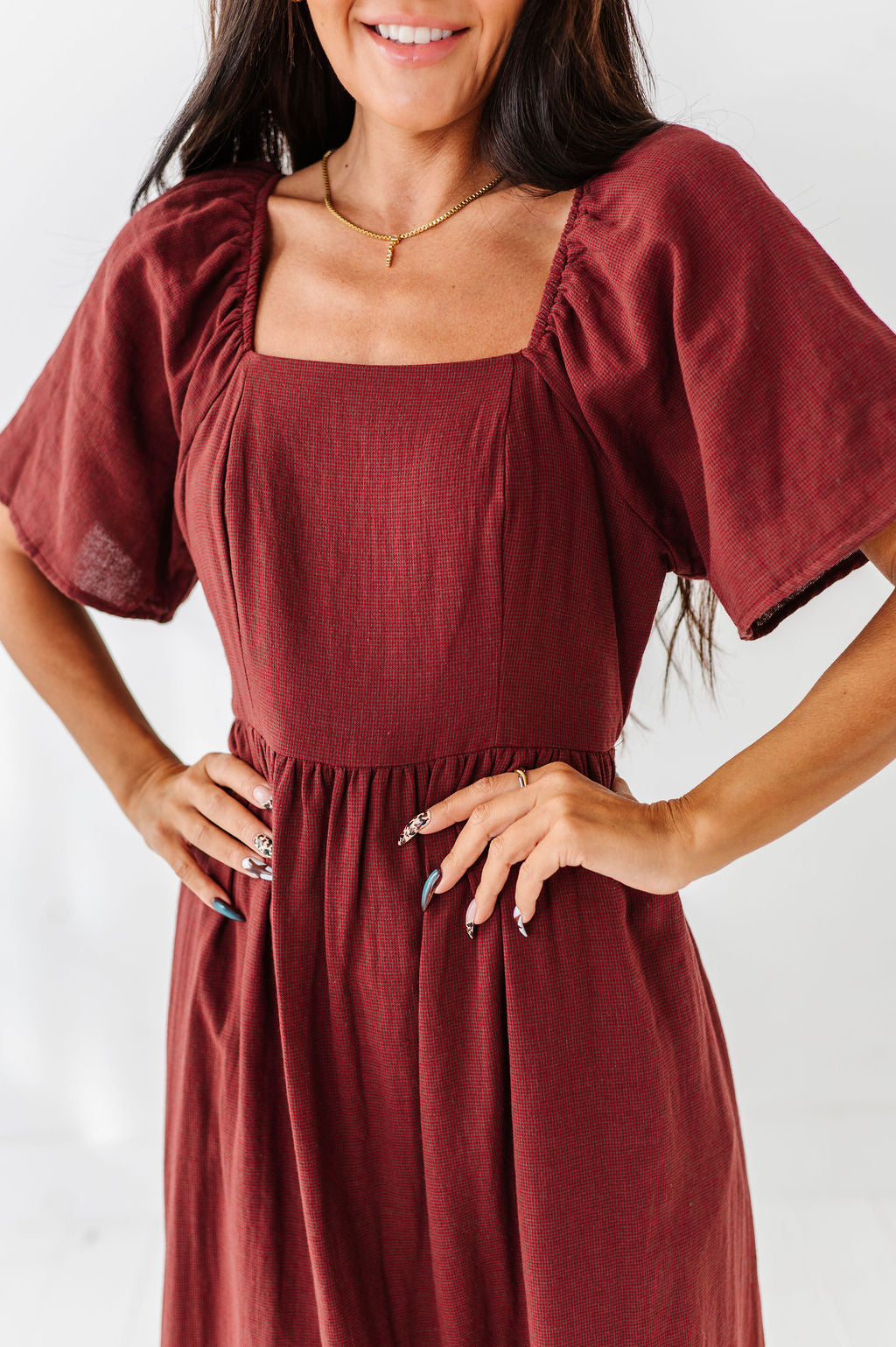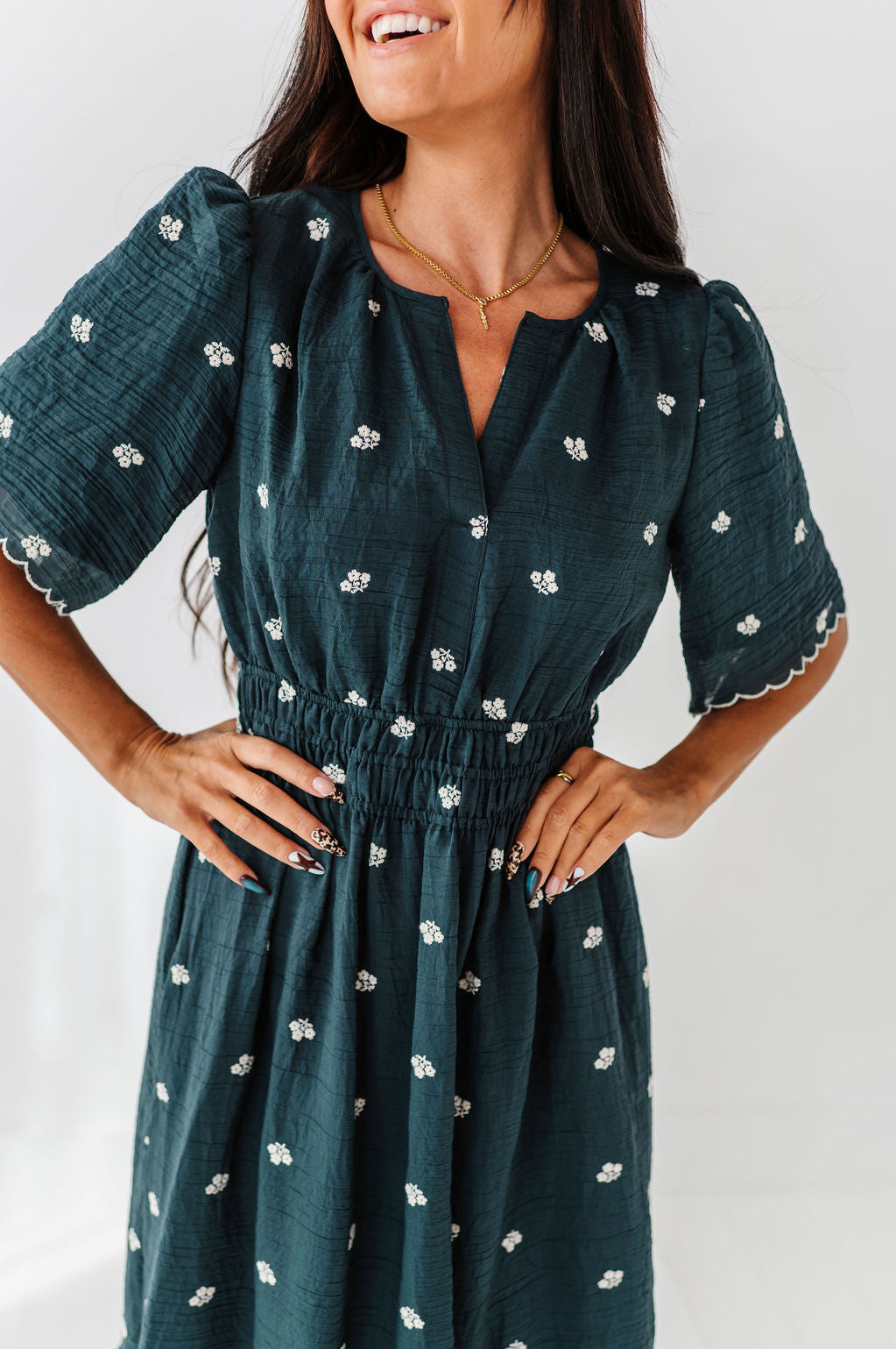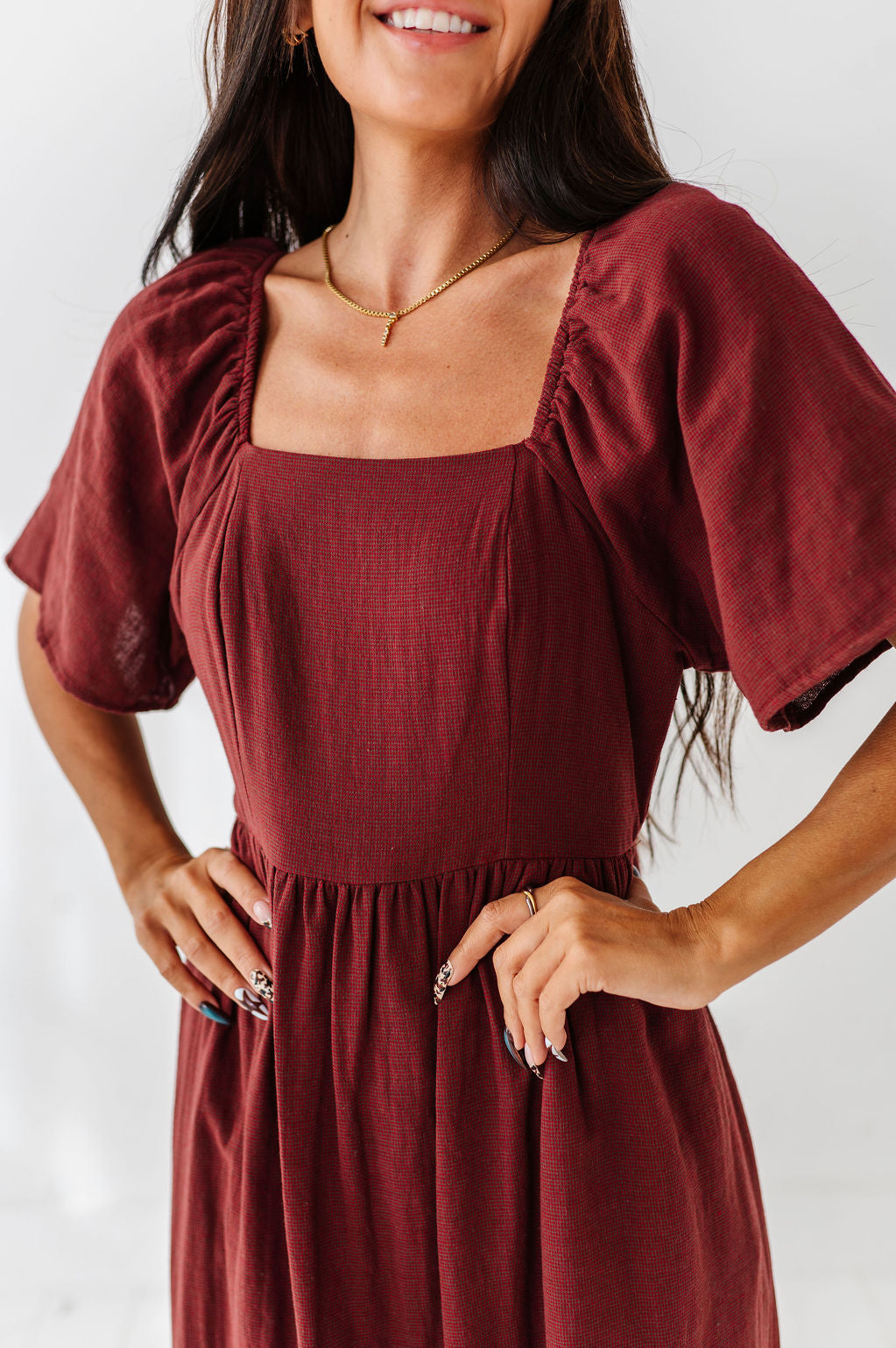 The dress is super cute! I like the zipper on the side because it snatches me right up but makes it easier to get the dress on. The elastic on the sleeves isn’t too tight which I really like. Overall the dress is a great material, super comfortable, and definitely worth it!