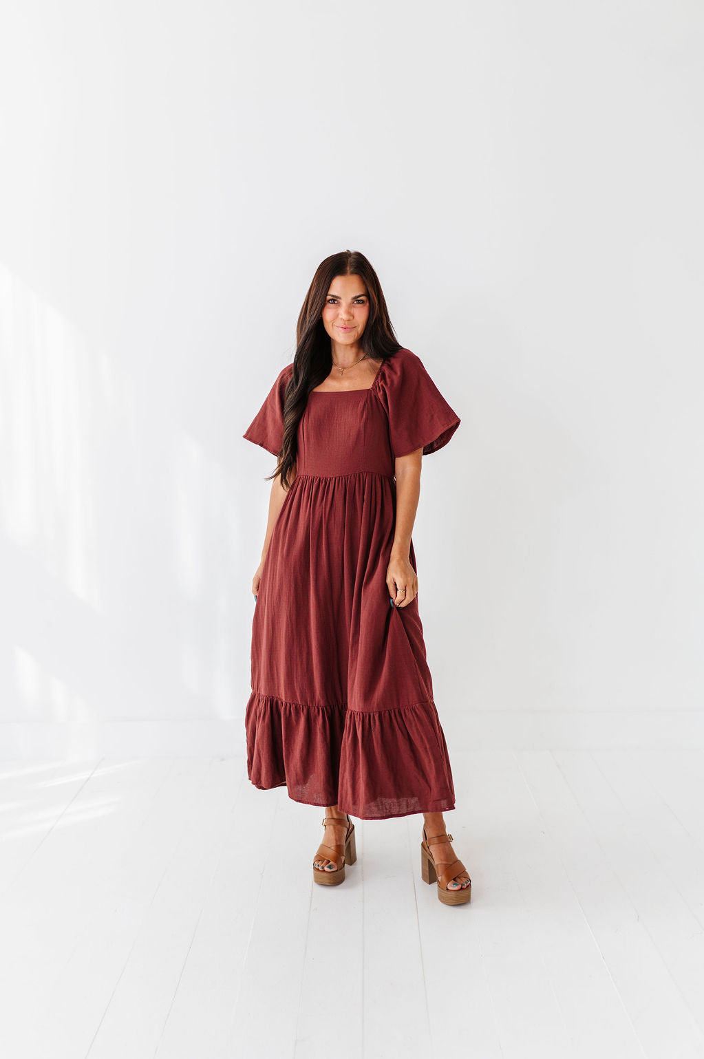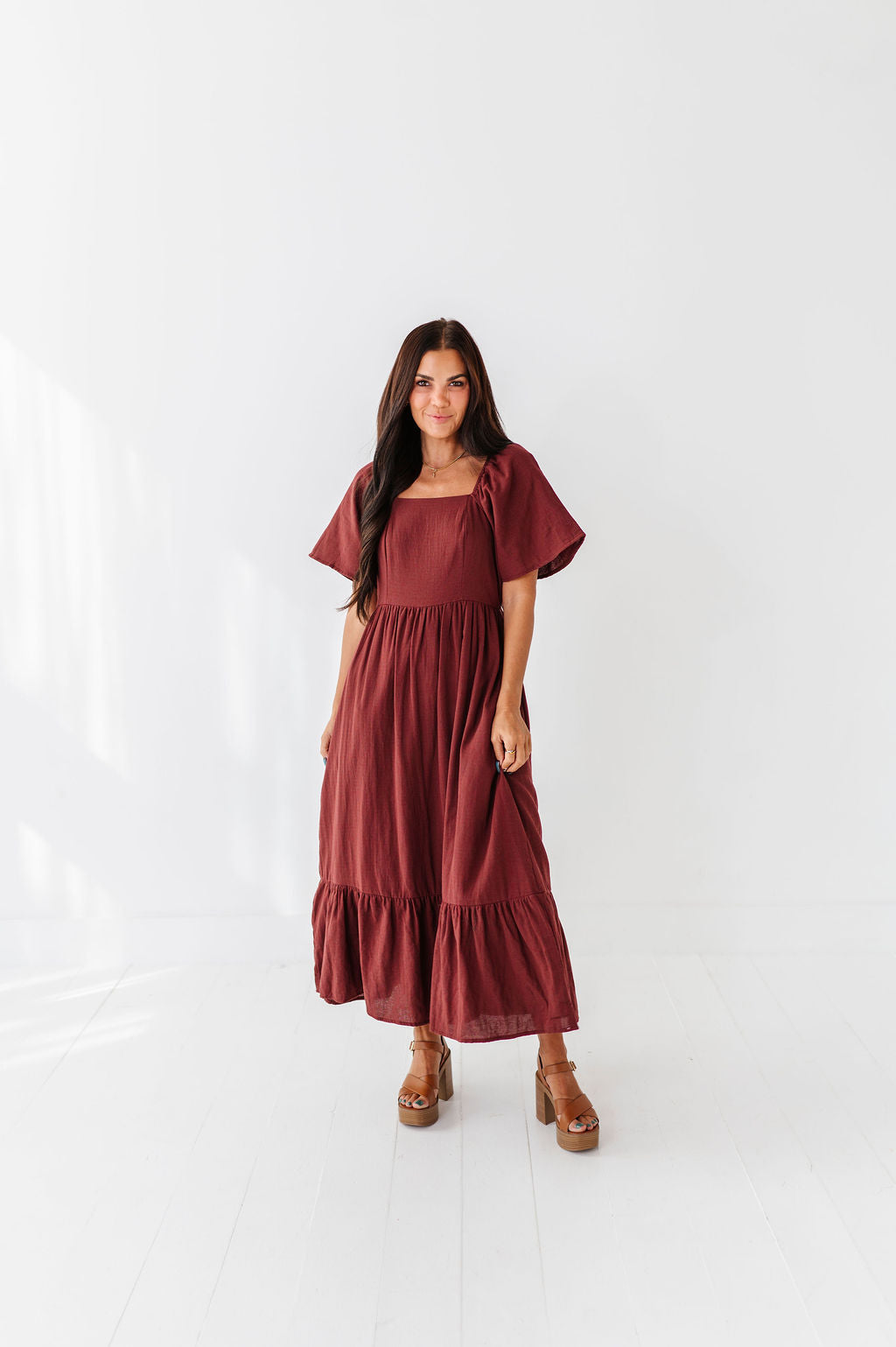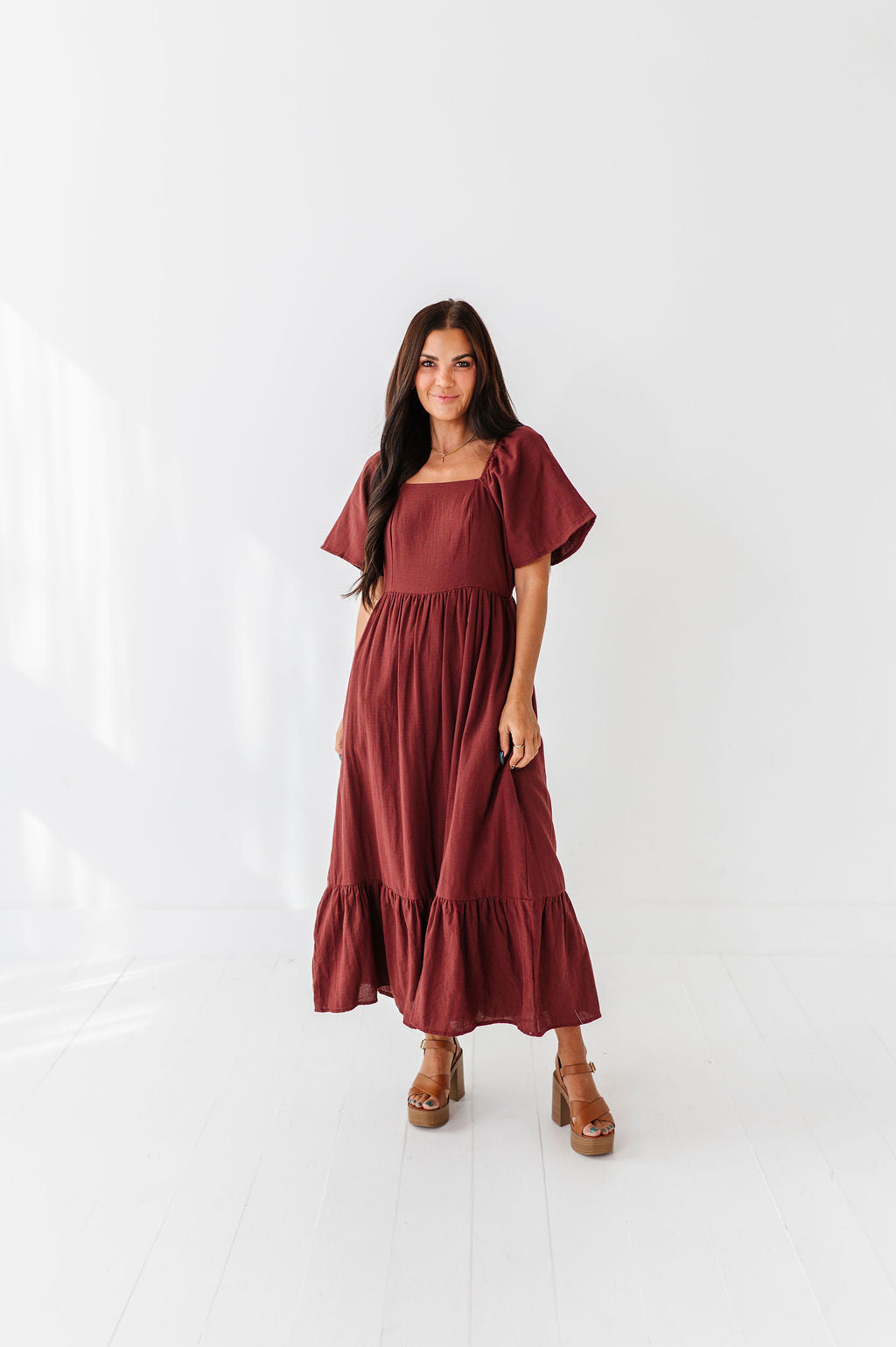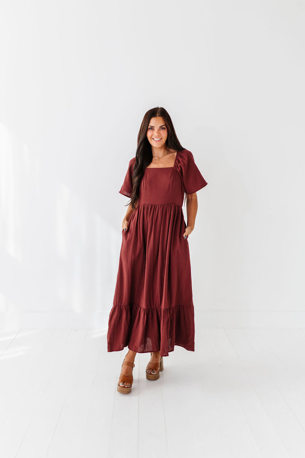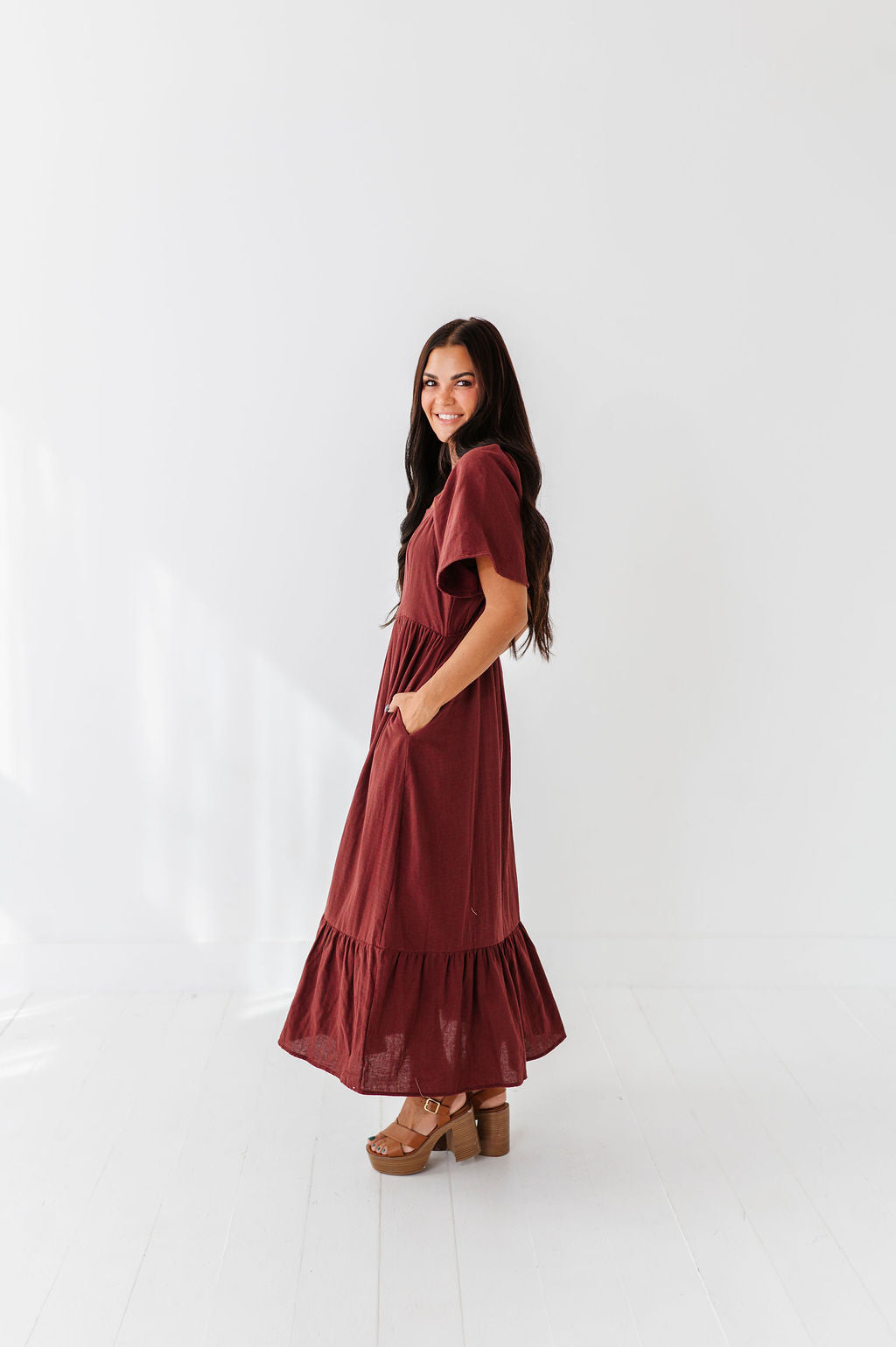 The dress is super cute! I like the zipper on the side because it snatches me right up but makes it easier to get the dress on. The elastic on the sleeves isn’t too tight which I really like. Overall the dress is a great material, super comfortable, and definitely worth it!