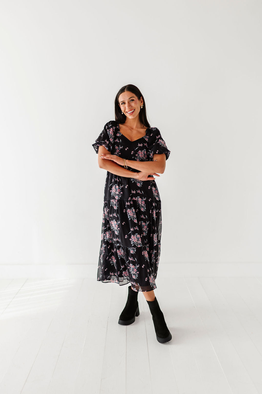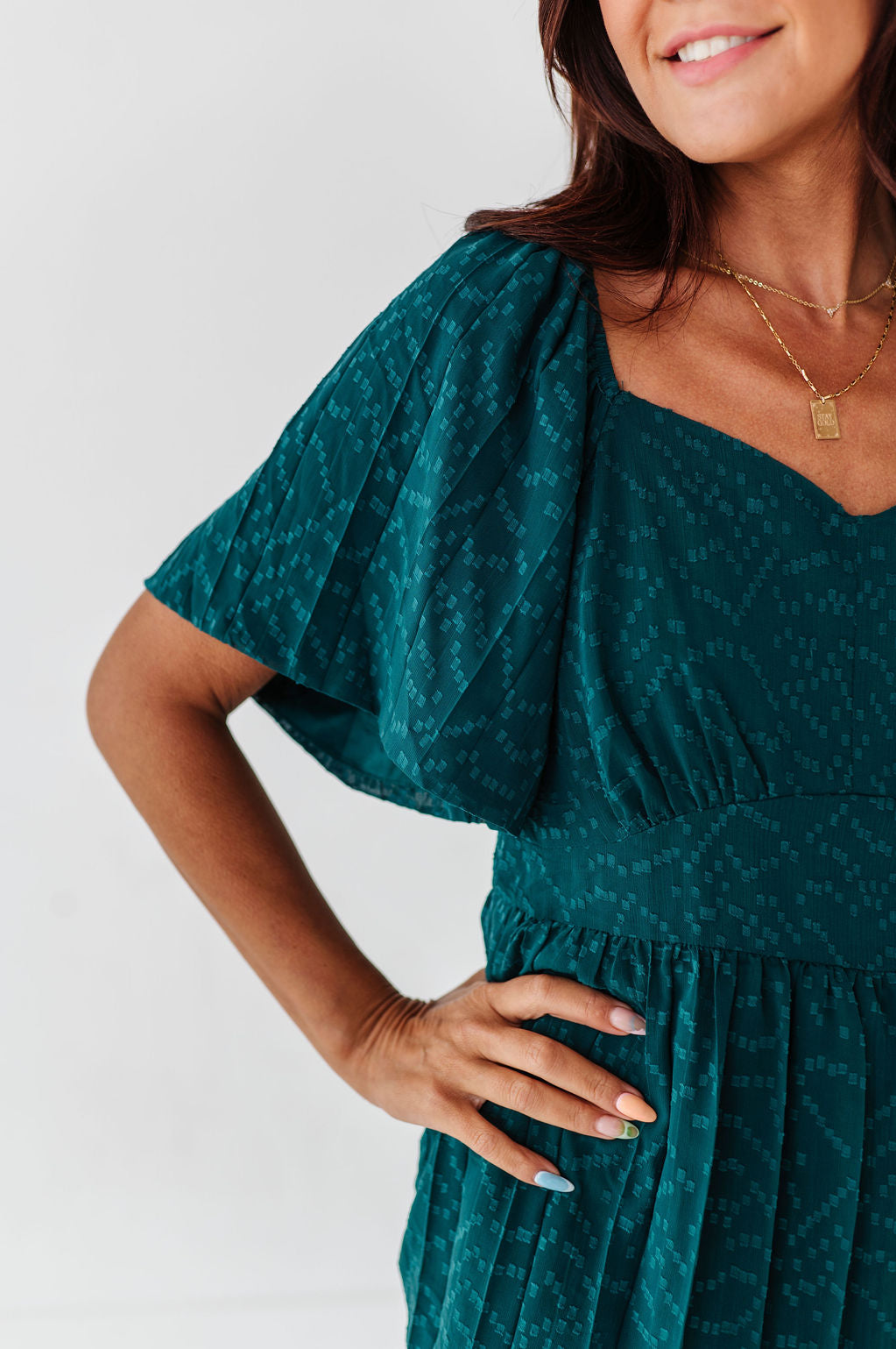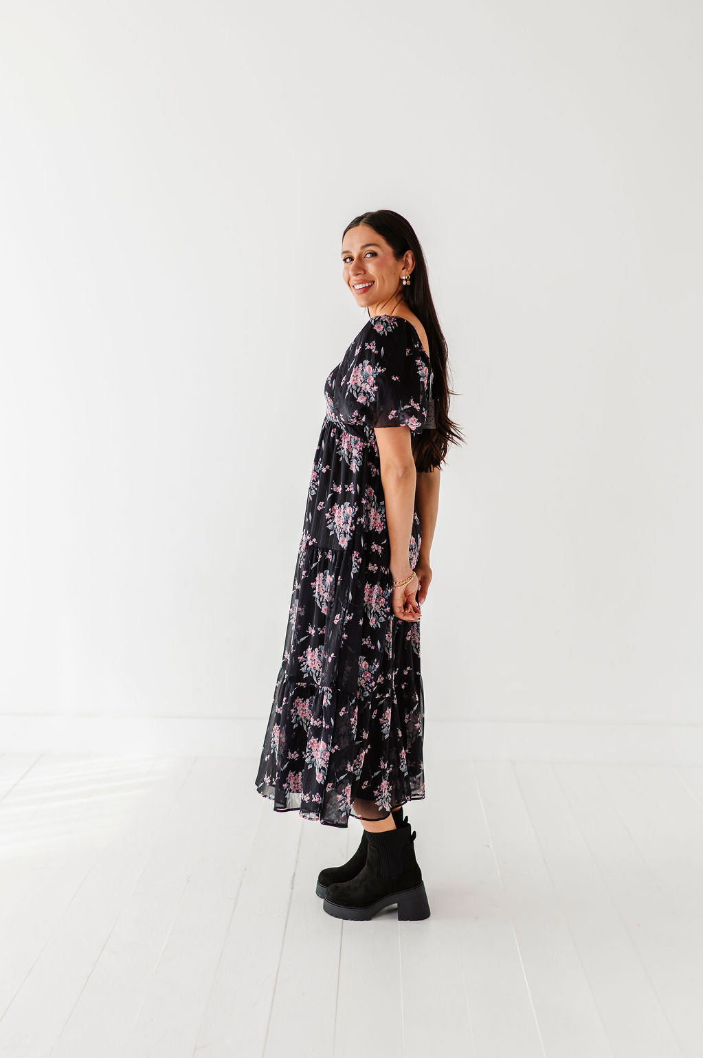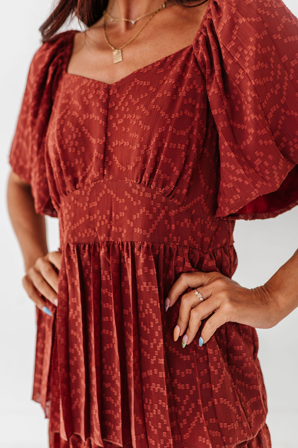 The dress is super cute! I like the zipper on the side because it snatches me right up but makes it easier to get the dress on. The elastic on the sleeves isn’t too tight which I really like. Overall the dress is a great material, super comfortable, and definitely worth it!