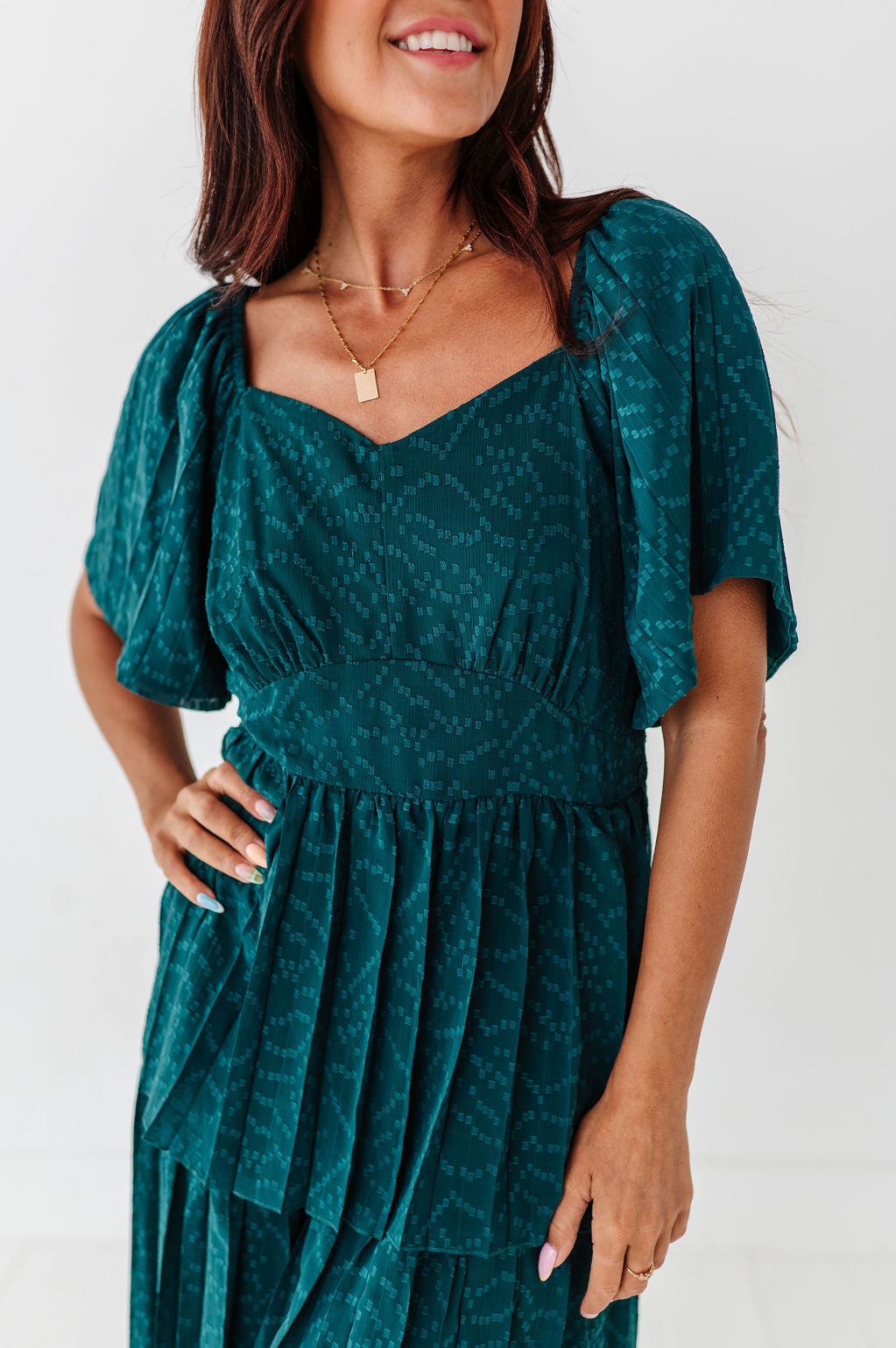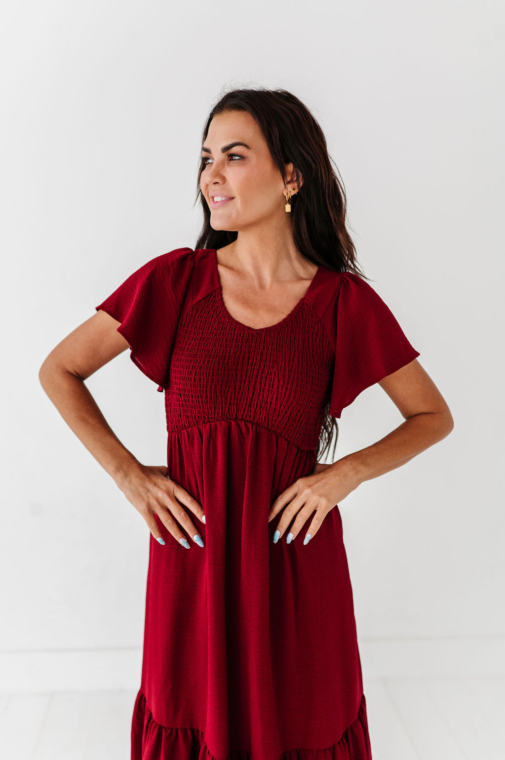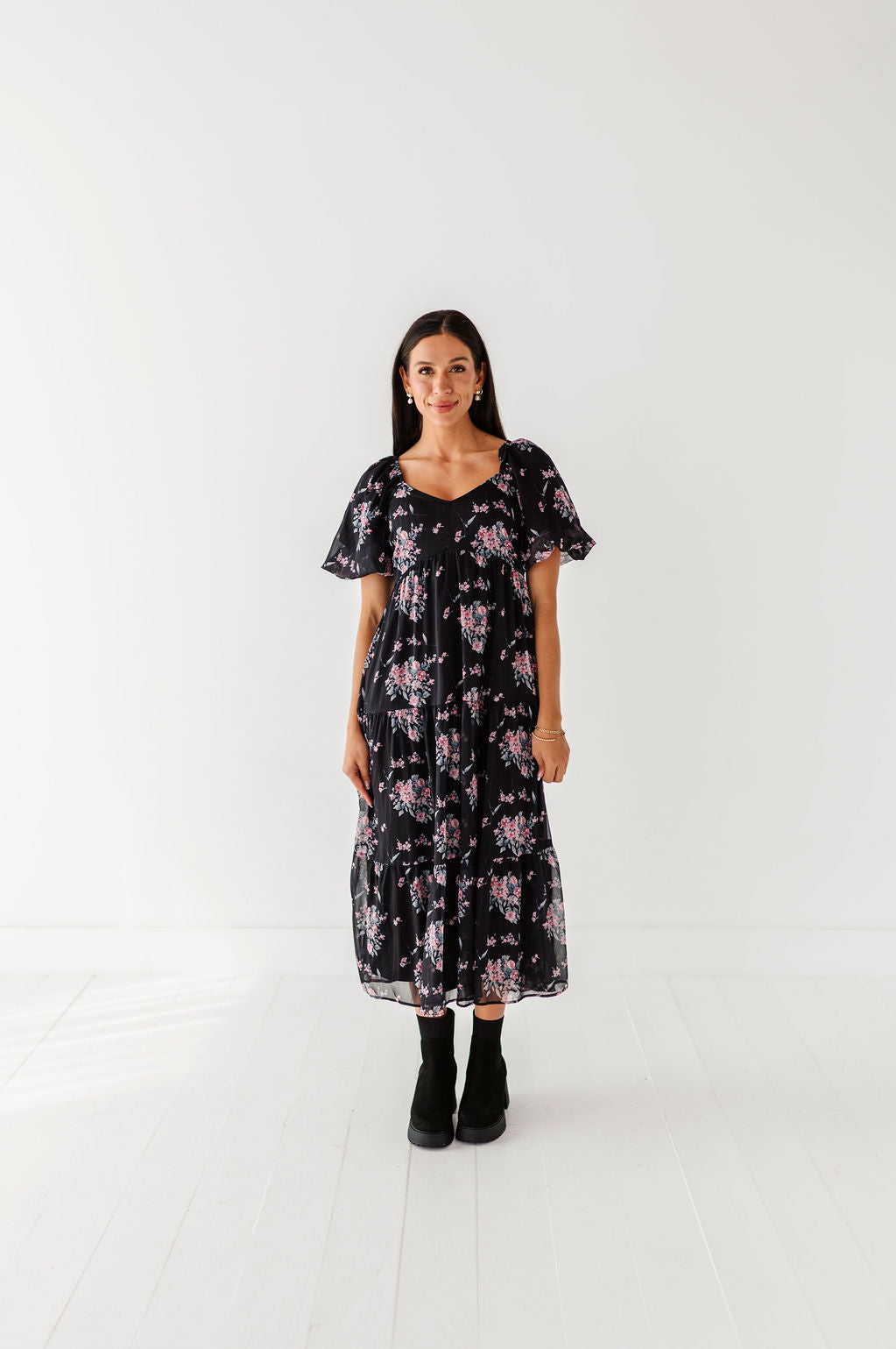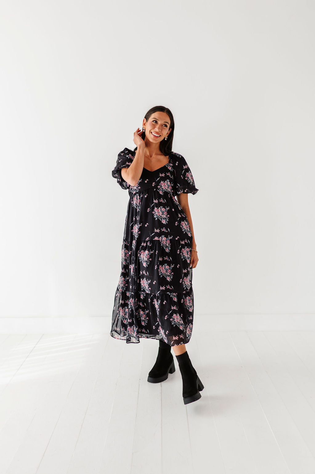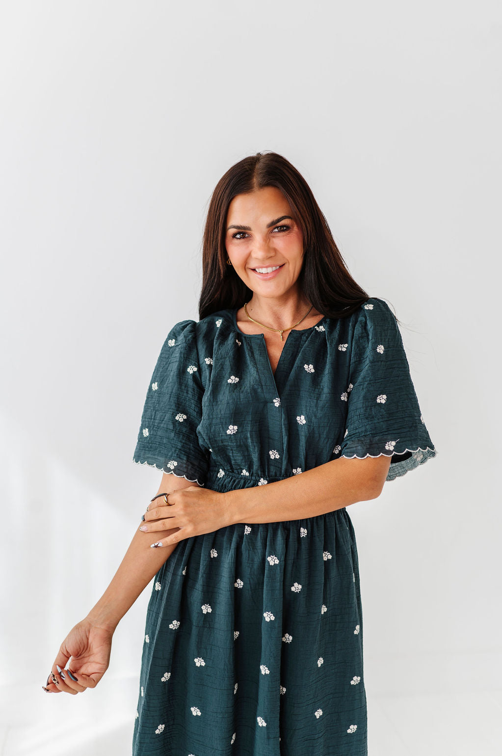 The dress is super cute! I like the zipper on the side because it snatches me right up but makes it easier to get the dress on. The elastic on the sleeves isn’t too tight which I really like. Overall the dress is a great material, super comfortable, and definitely worth it!