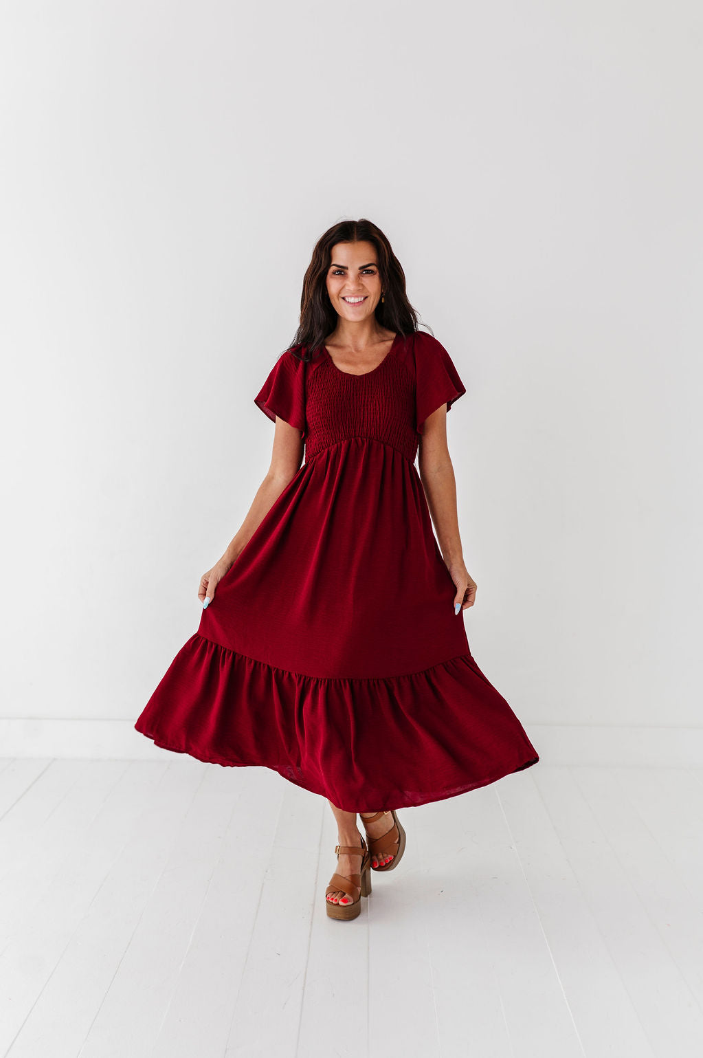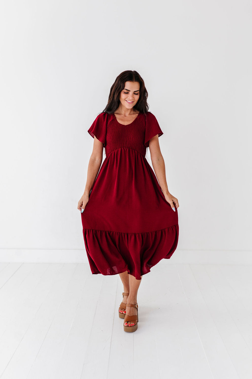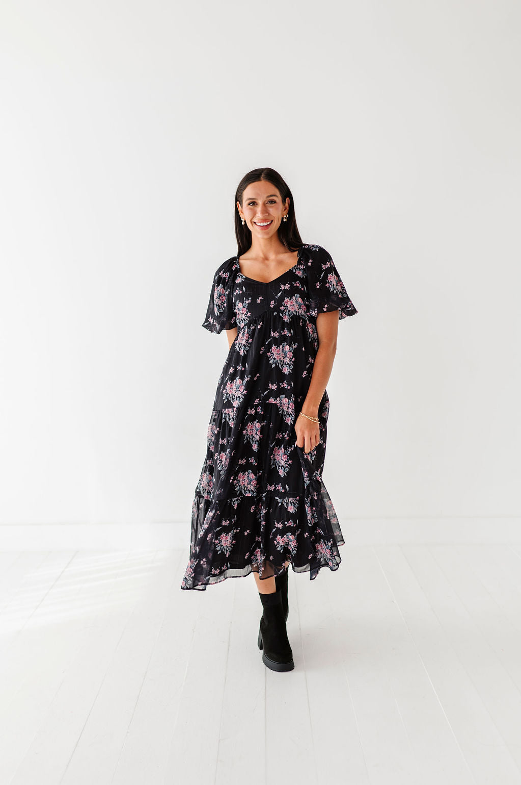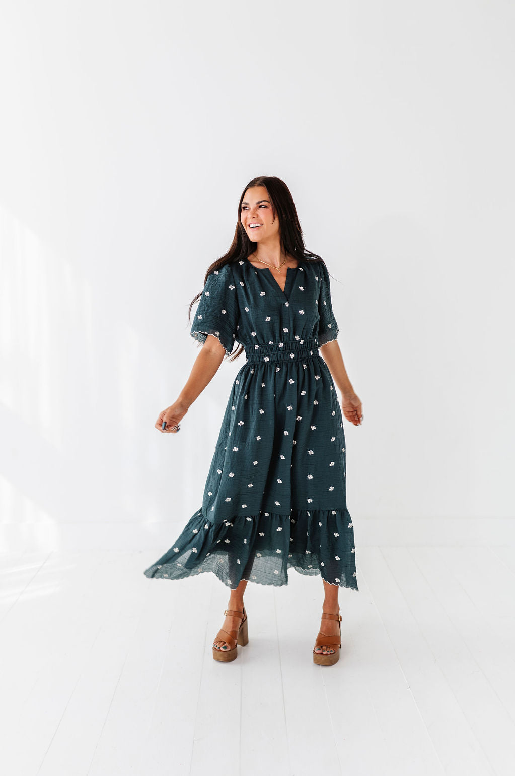 The dress is super cute! I like the zipper on the side because it snatches me right up but makes it easier to get the dress on. The elastic on the sleeves isn’t too tight which I really like. Overall the dress is a great material, super comfortable, and definitely worth it!