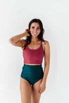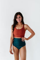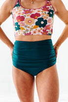 High Waisted Ruched Bottoms in Laguna - Size XXS Left