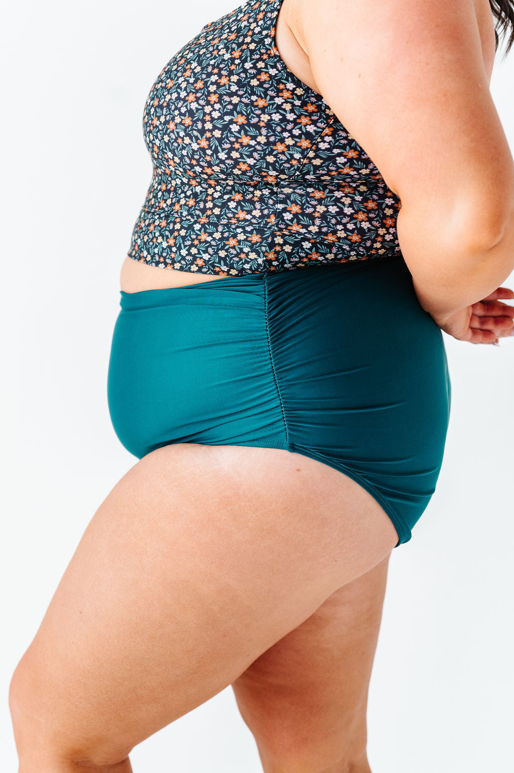 - Ruched bottoms