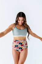 Love these bottoms! I usually buy medium in swimsuit bottoms but got a small based on the size guide and they fit great. Very high waisted (they come up to the top of my ribs) but that’s what I was looking for