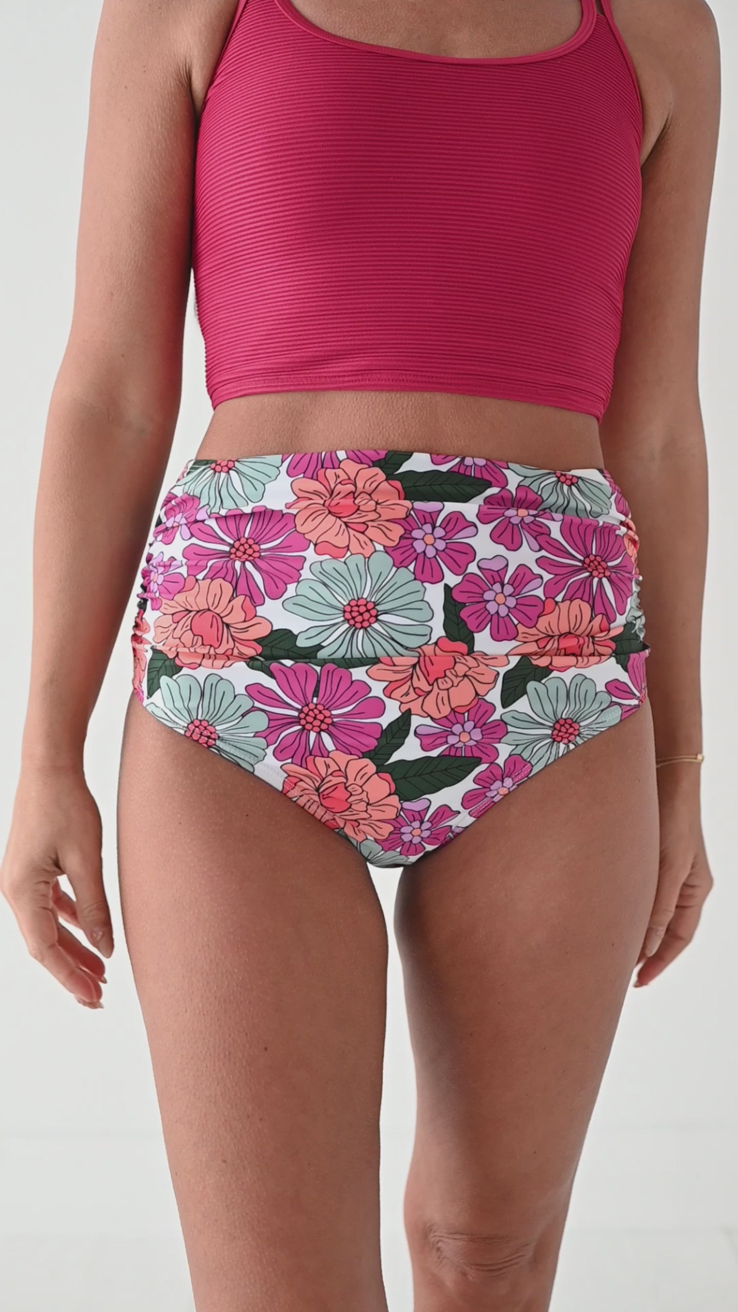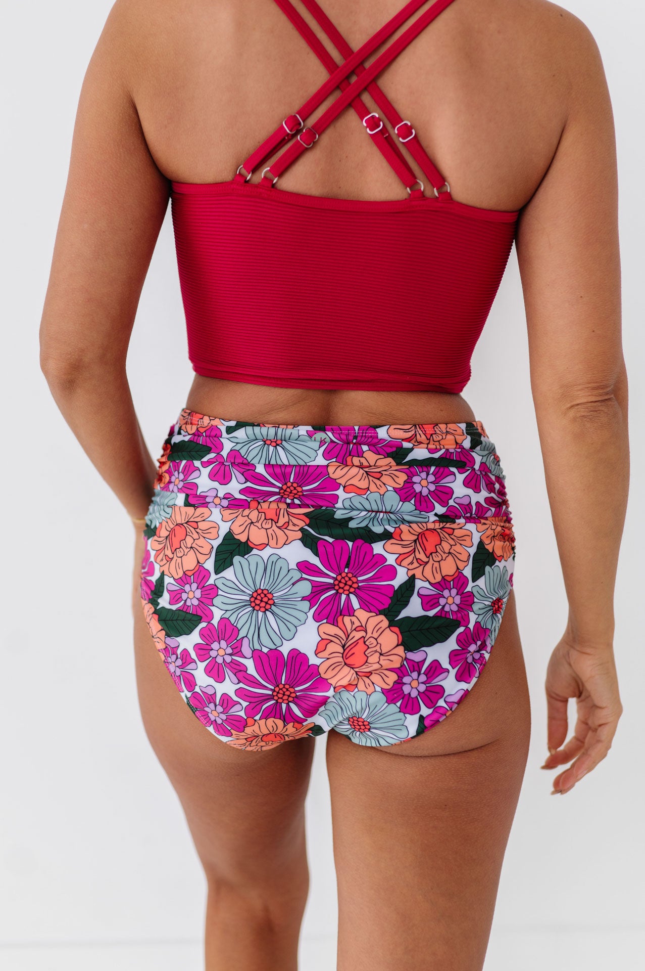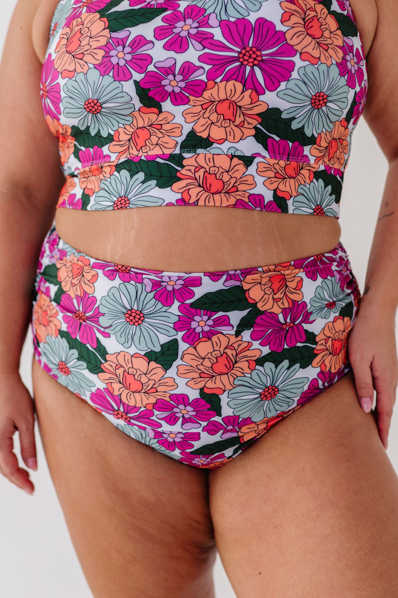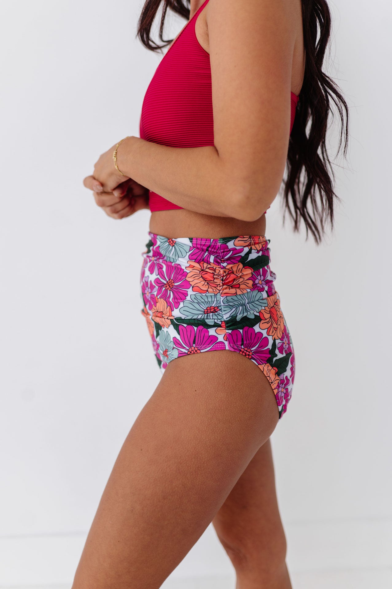 Basic Beach Mid Rise Ruched Bottoms in Aurora Floral