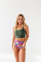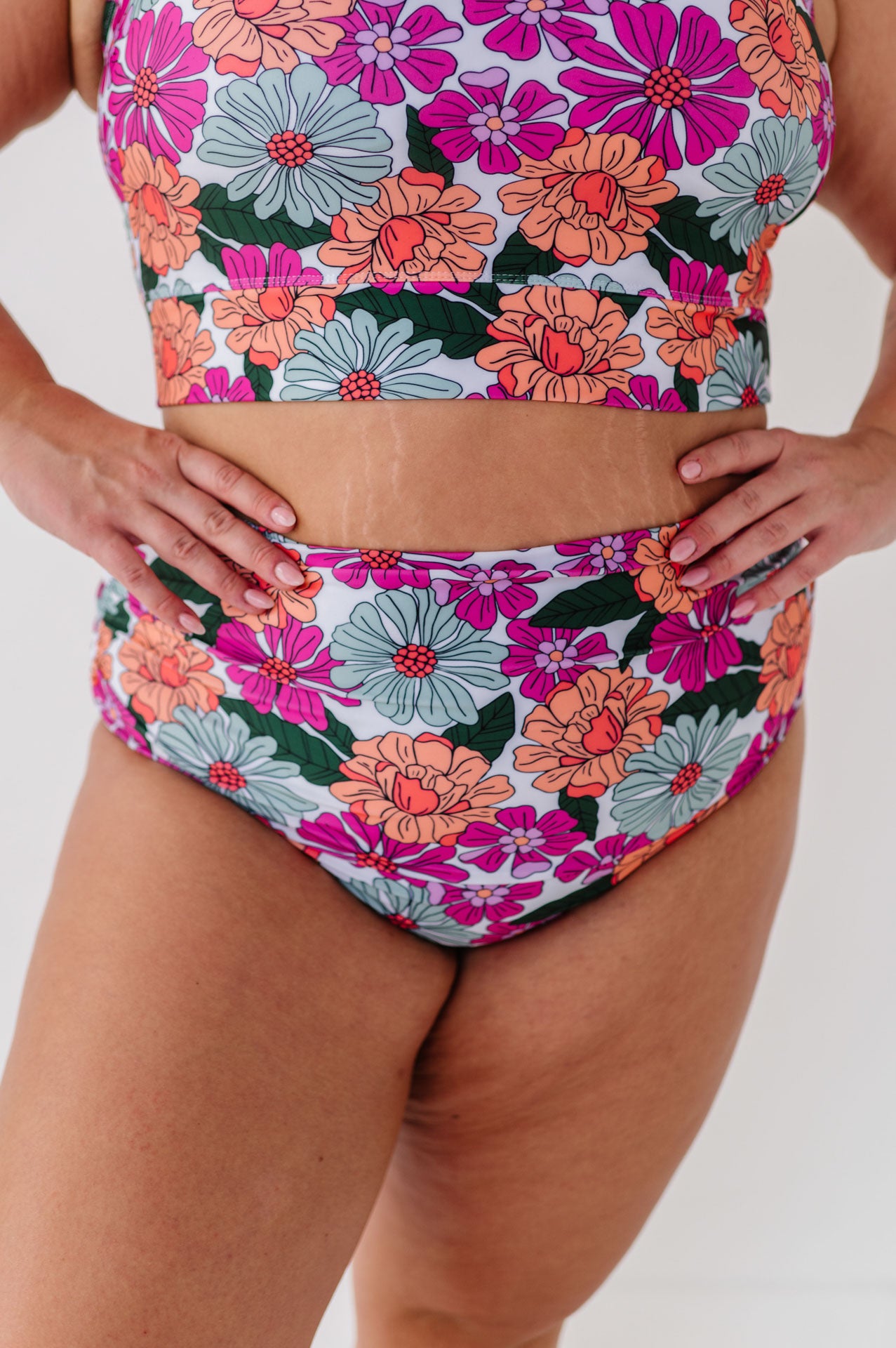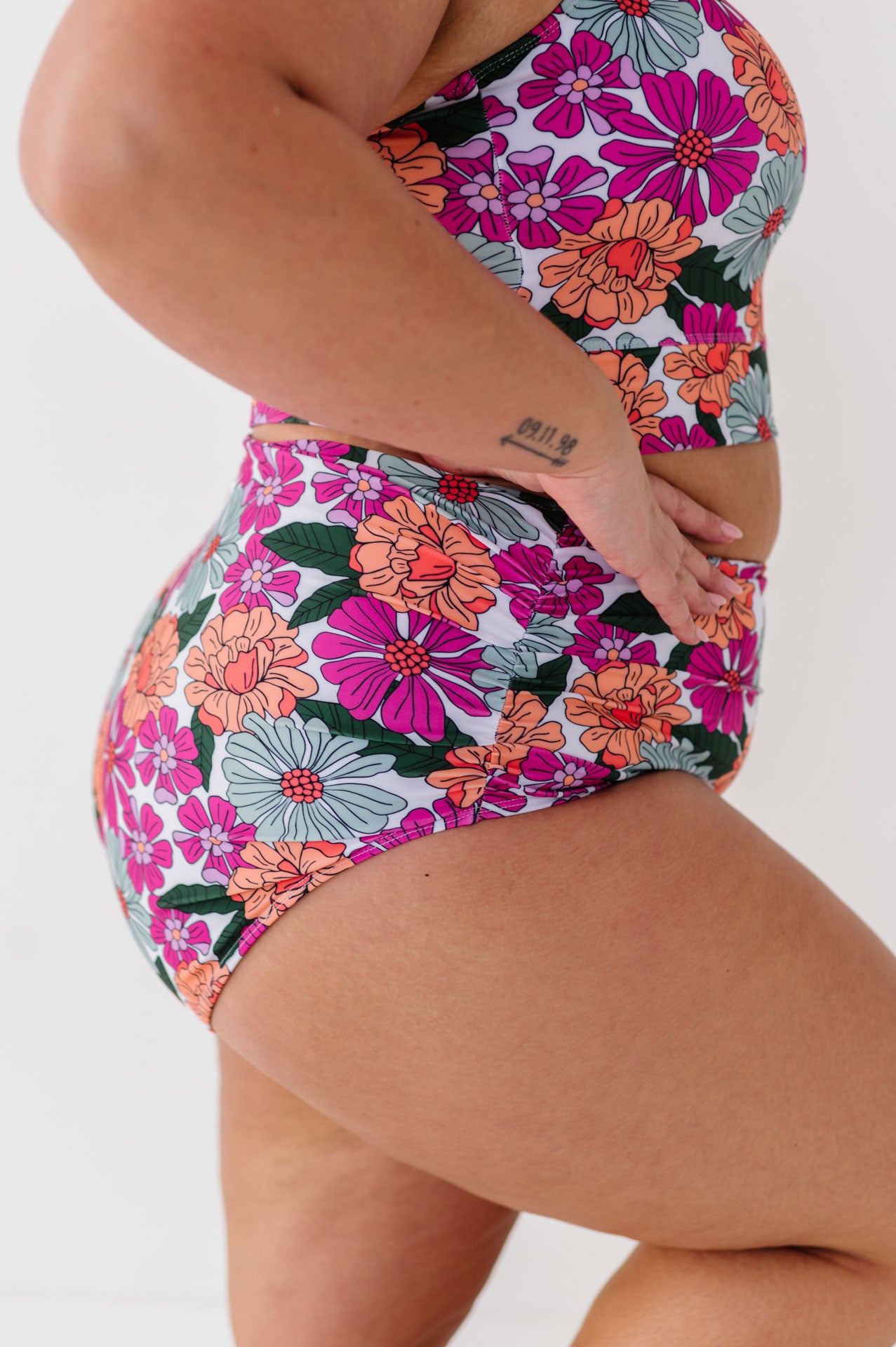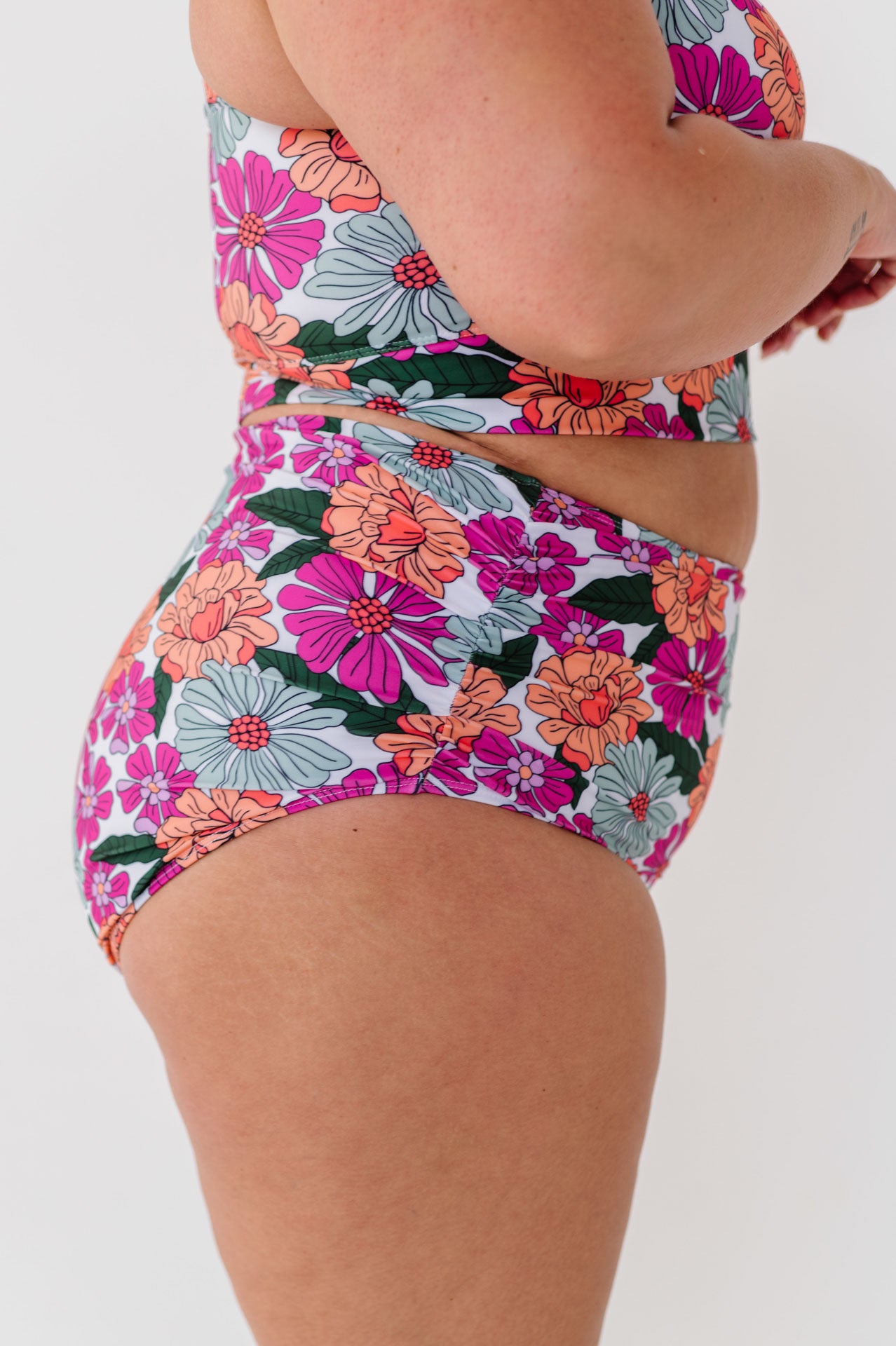 Basic Beach Mid Rise Ruched Bottoms in Aurora Floral