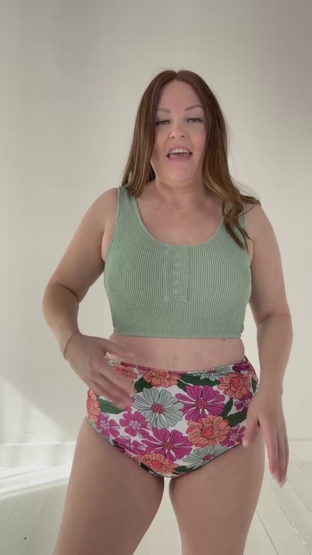 This suit is both cute and flattering, and the print is so pretty! The colors look great, just as pictured. I like that this is a little modest without being too much so, as a mom of 2 I still like to look cute but be able to tuck my belly in and not show too much cleavage.