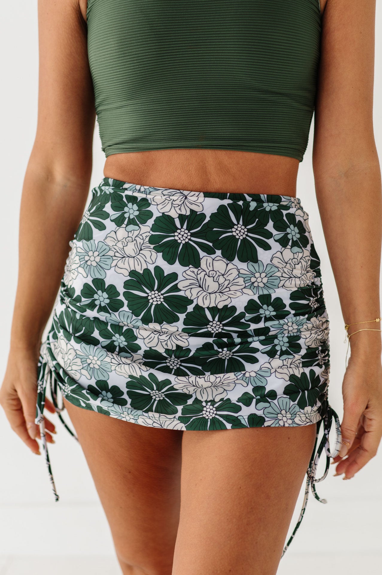 • Ruched skirt