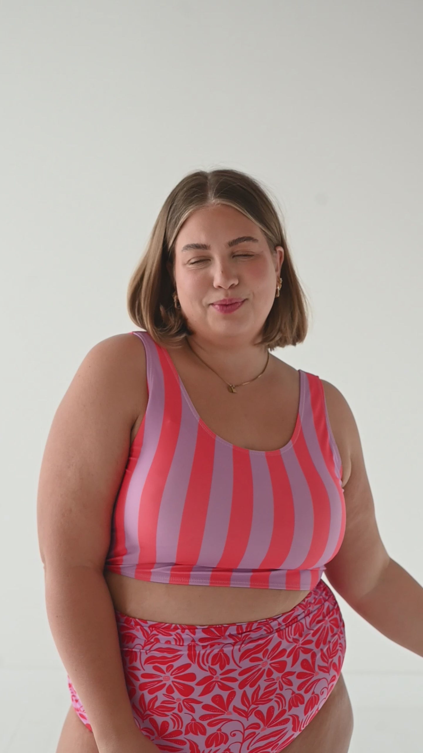 • Maddy is 5'6", with a bra size of 34C, 30" under bust 34" largest part and is wearing a Small