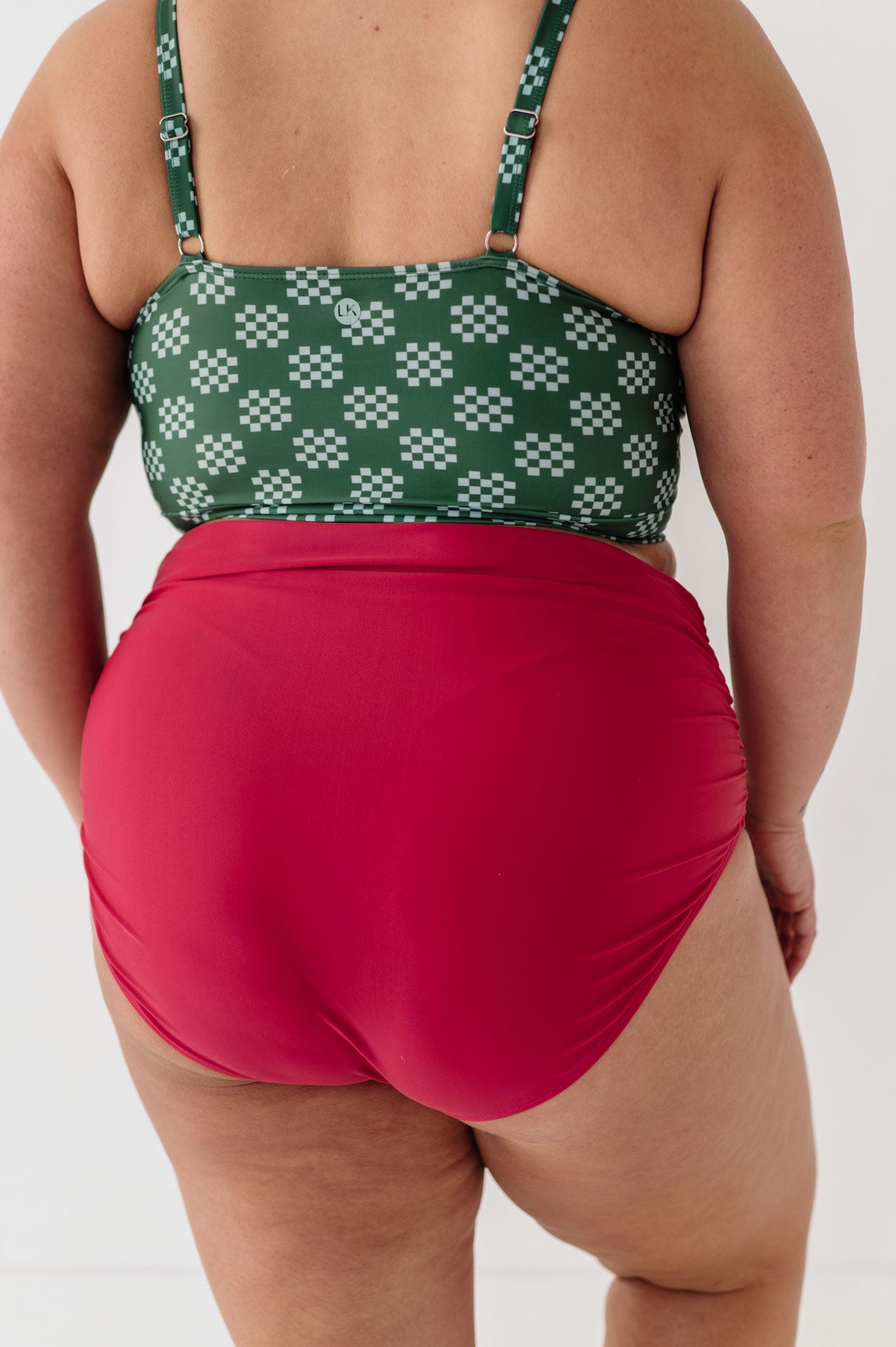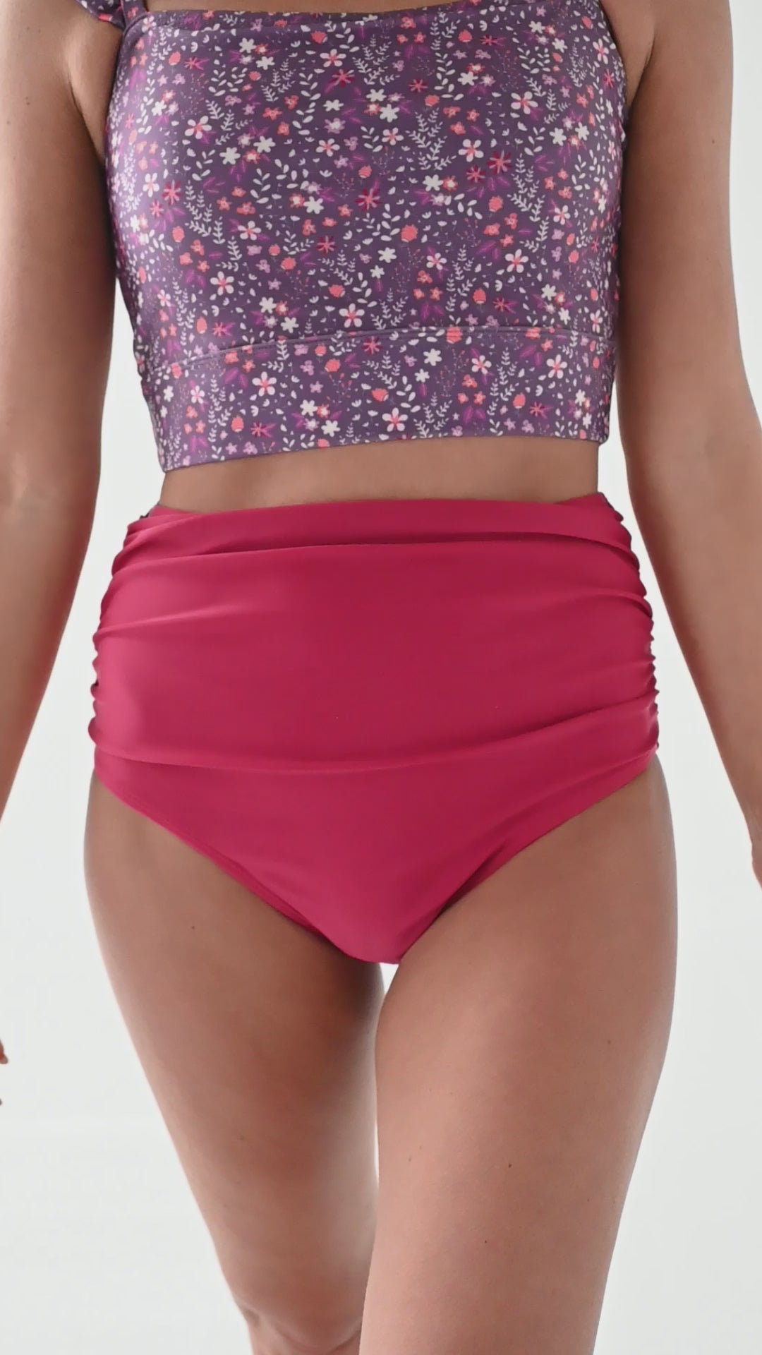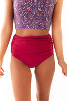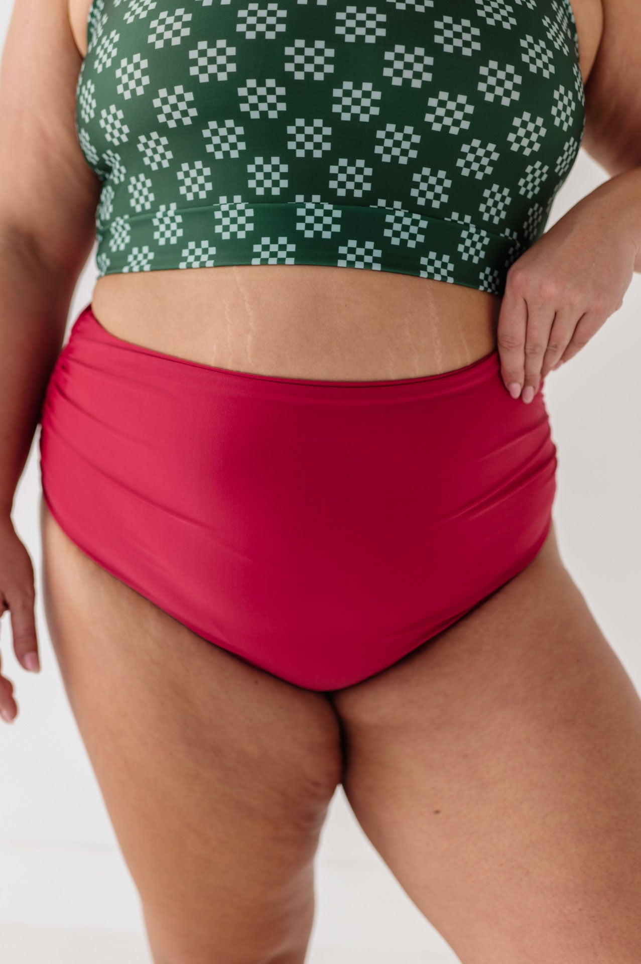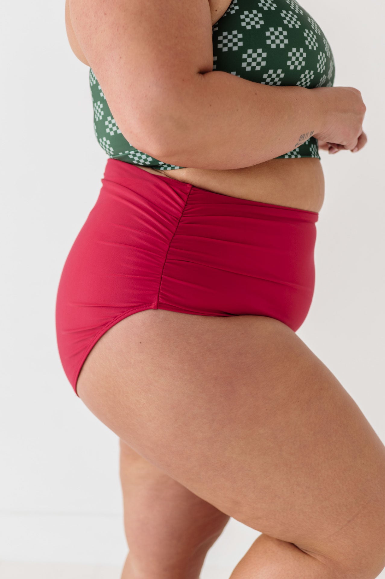 Basic Beach Mid Rise Ruched Bottoms in Raspberry