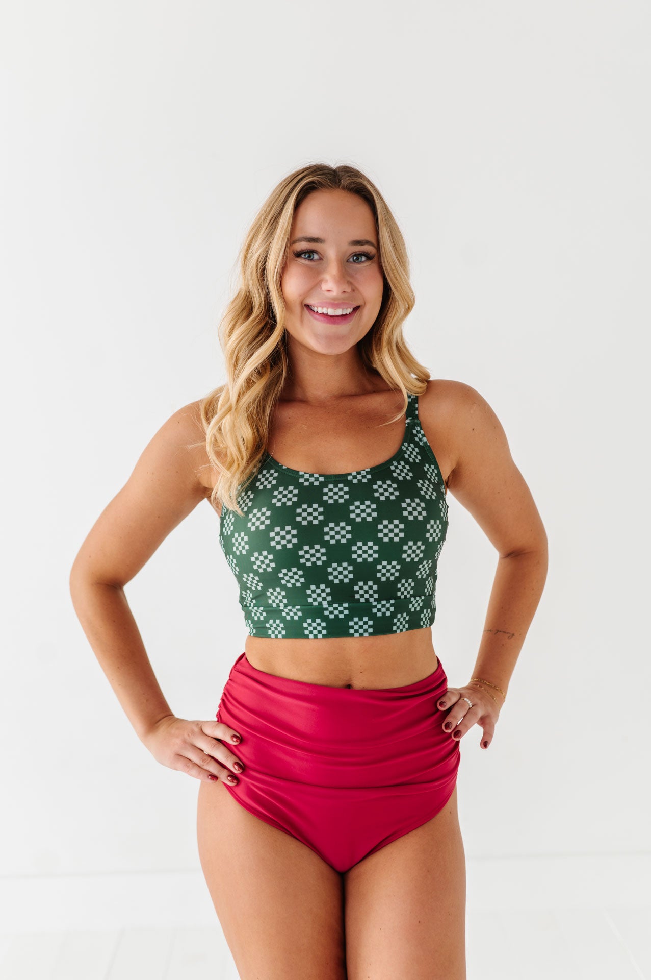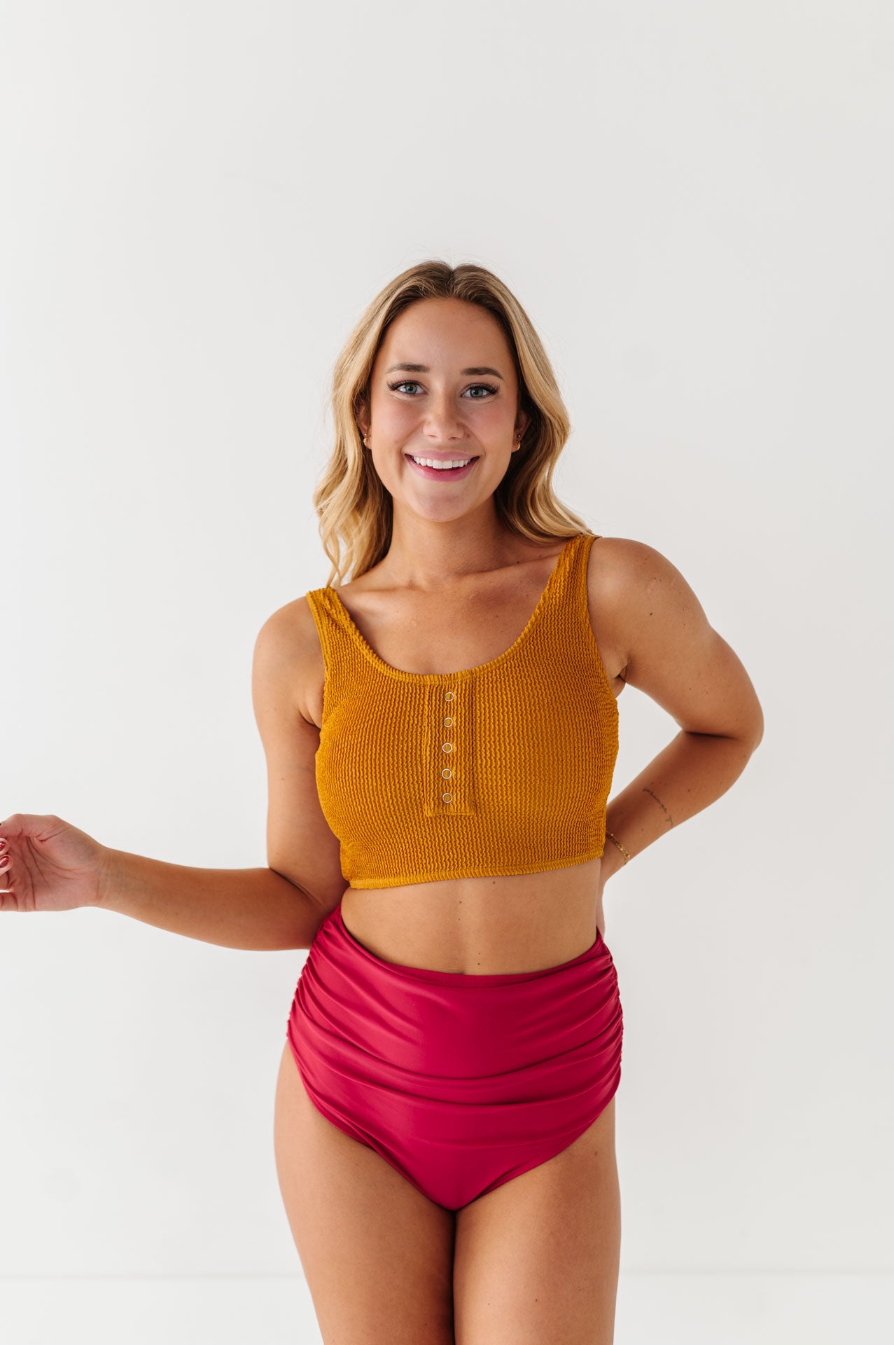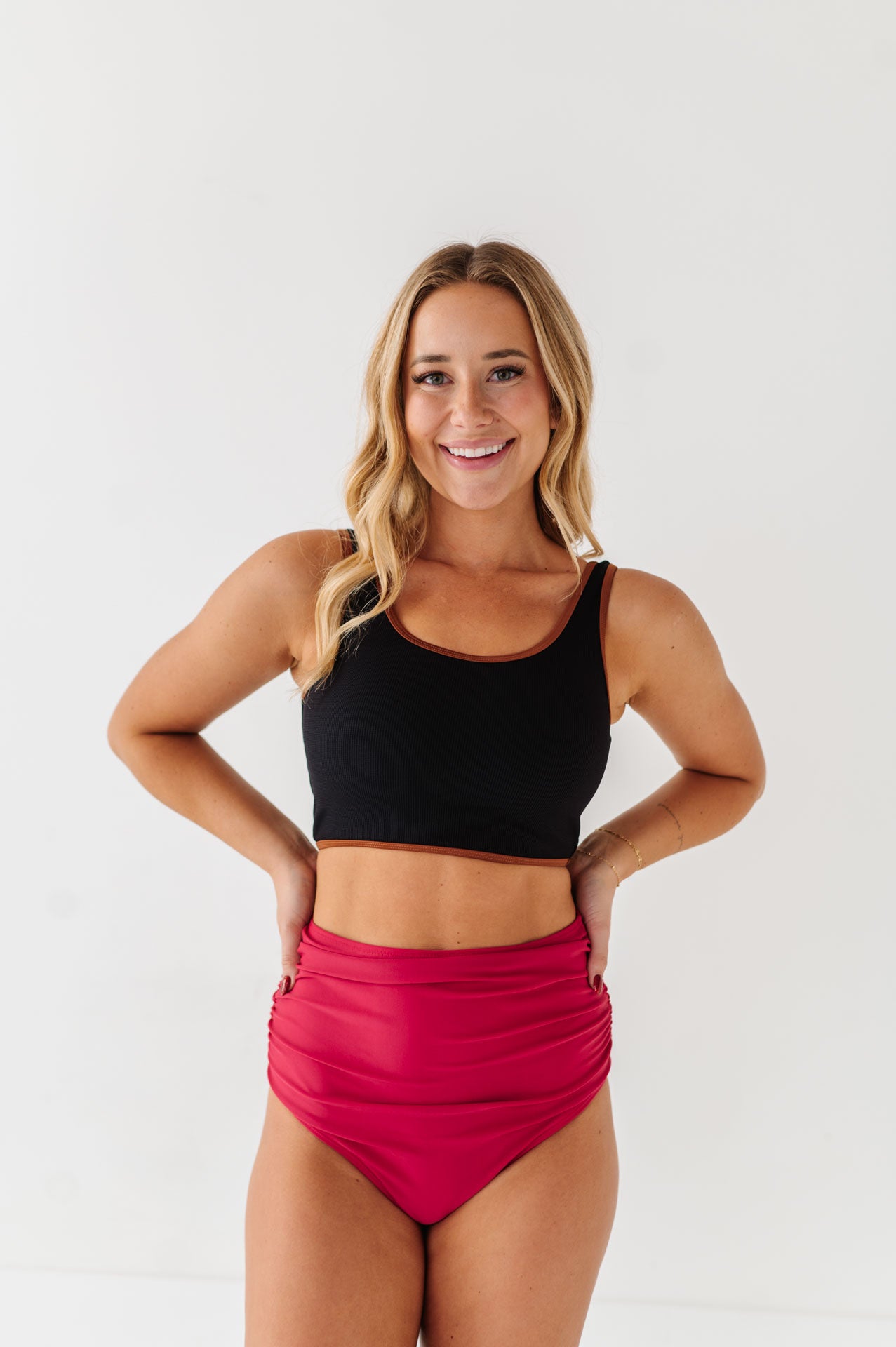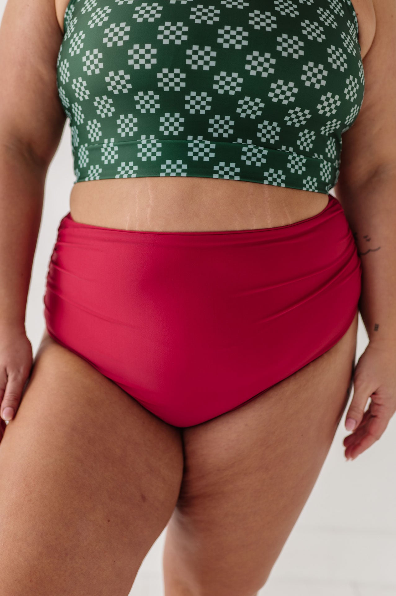 Basic Beach Mid Rise Ruched Bottoms in Raspberry