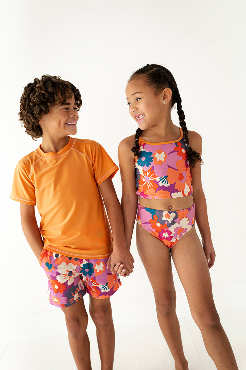 - Chest measurements are taken across the chest area of the swimsuit with the suit laid flat, then doubled. Waist measurements are taken across the waistband with the item laid flat, then doubled. Rise measurements are taken at the center front of the suit, from the top of the waistband to the lower front seam. Please note that measurements are approximate and do not account for stretch.