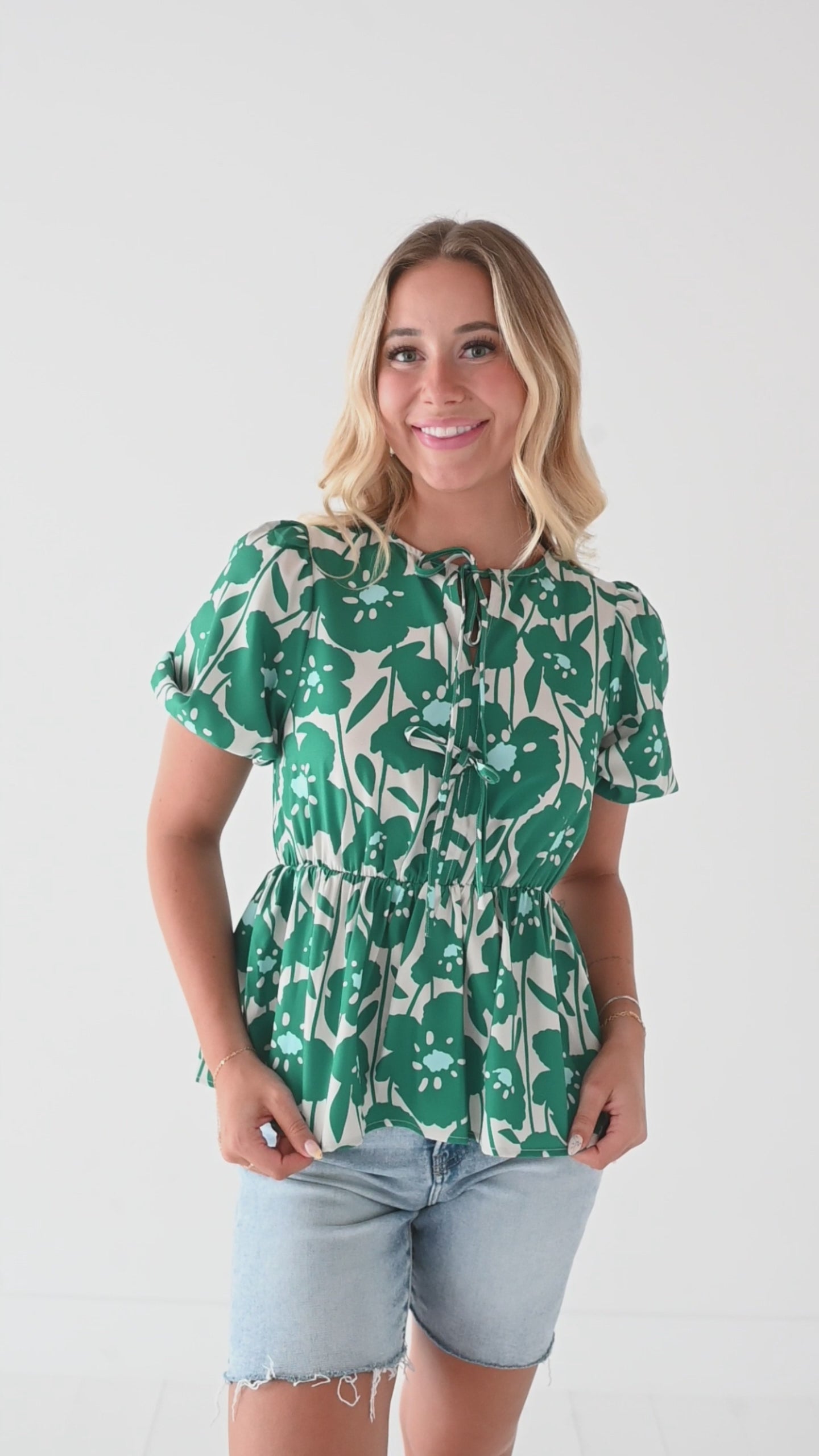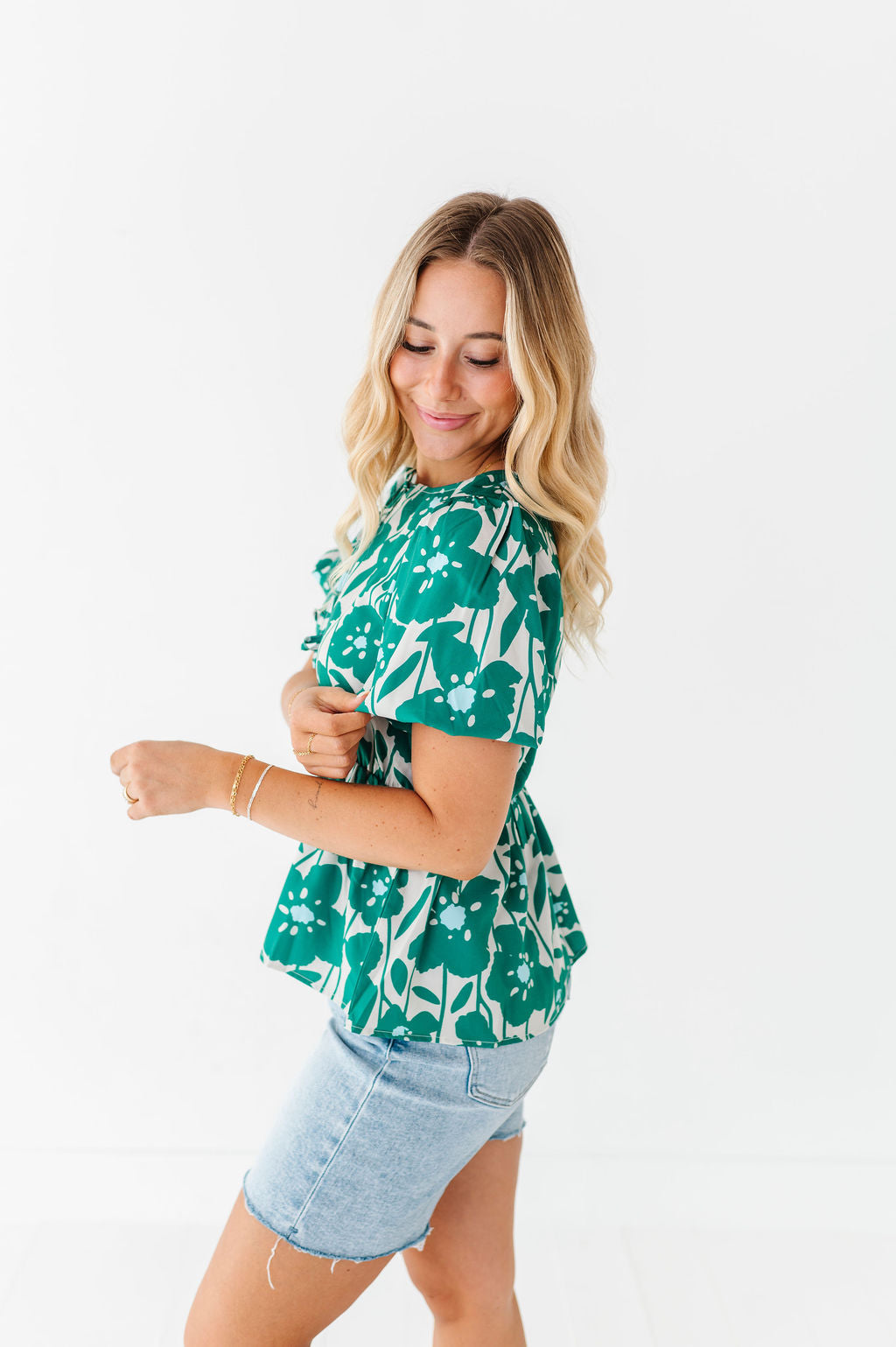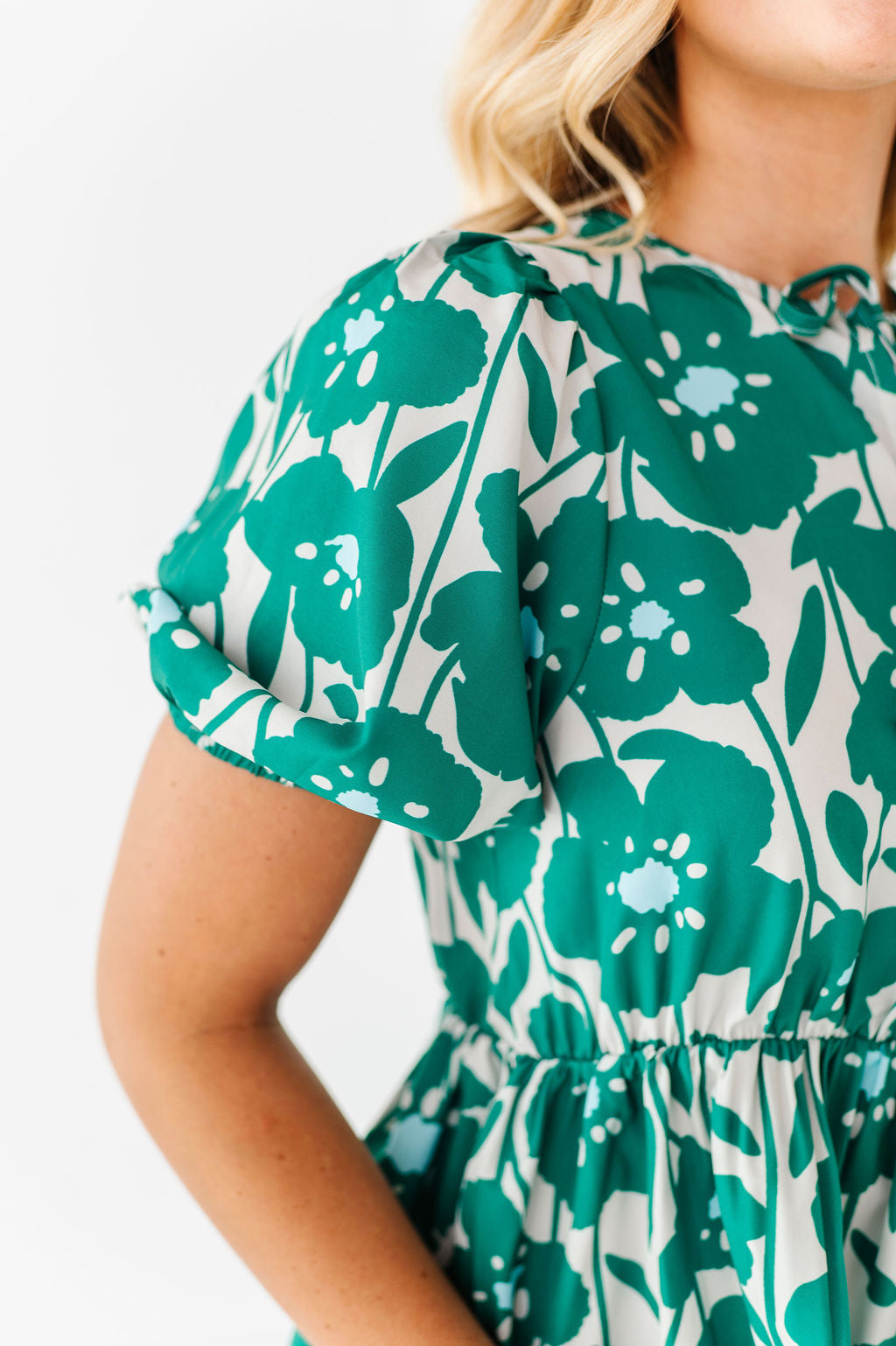 - Short bubble sleeves with elastic