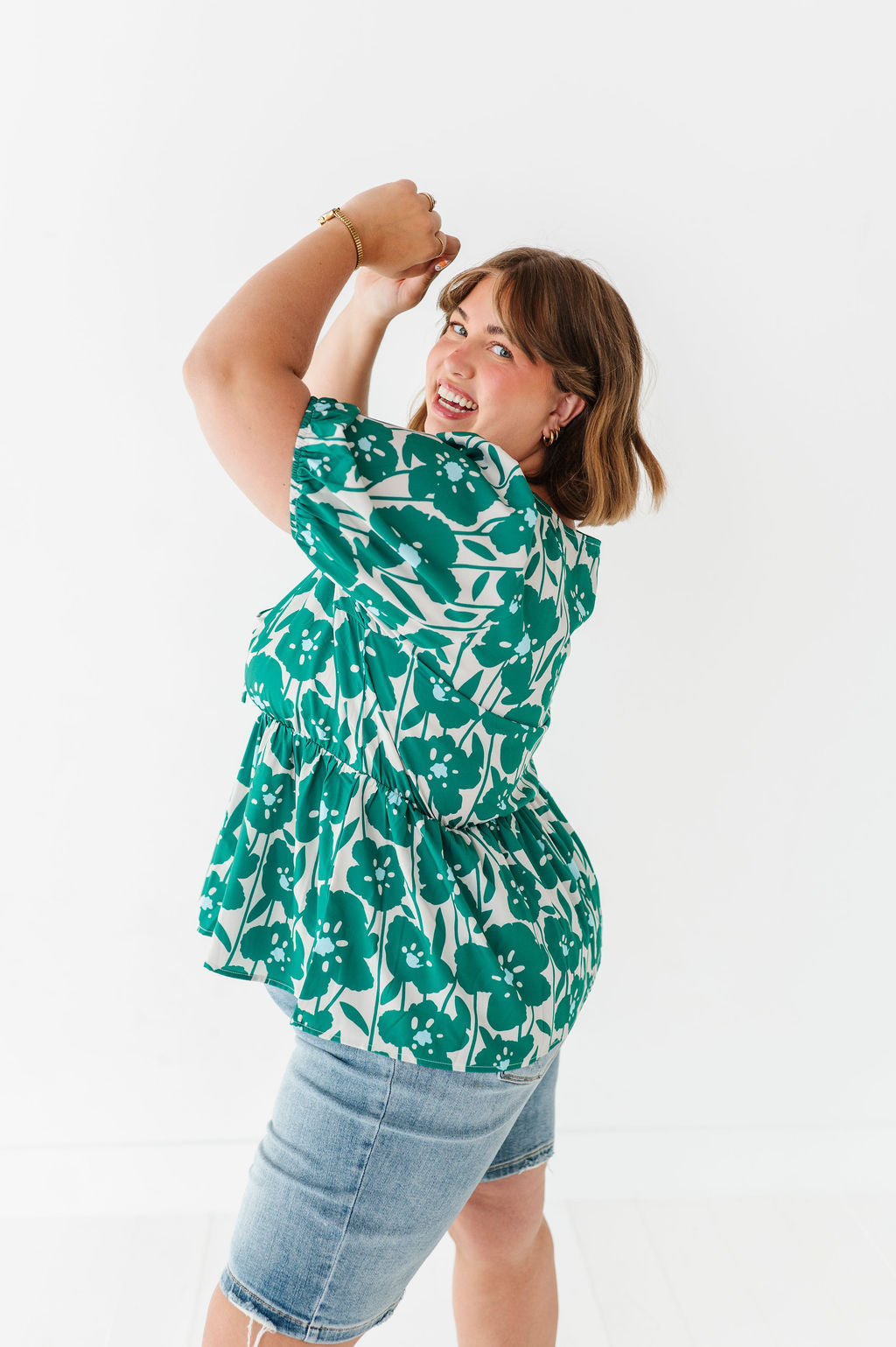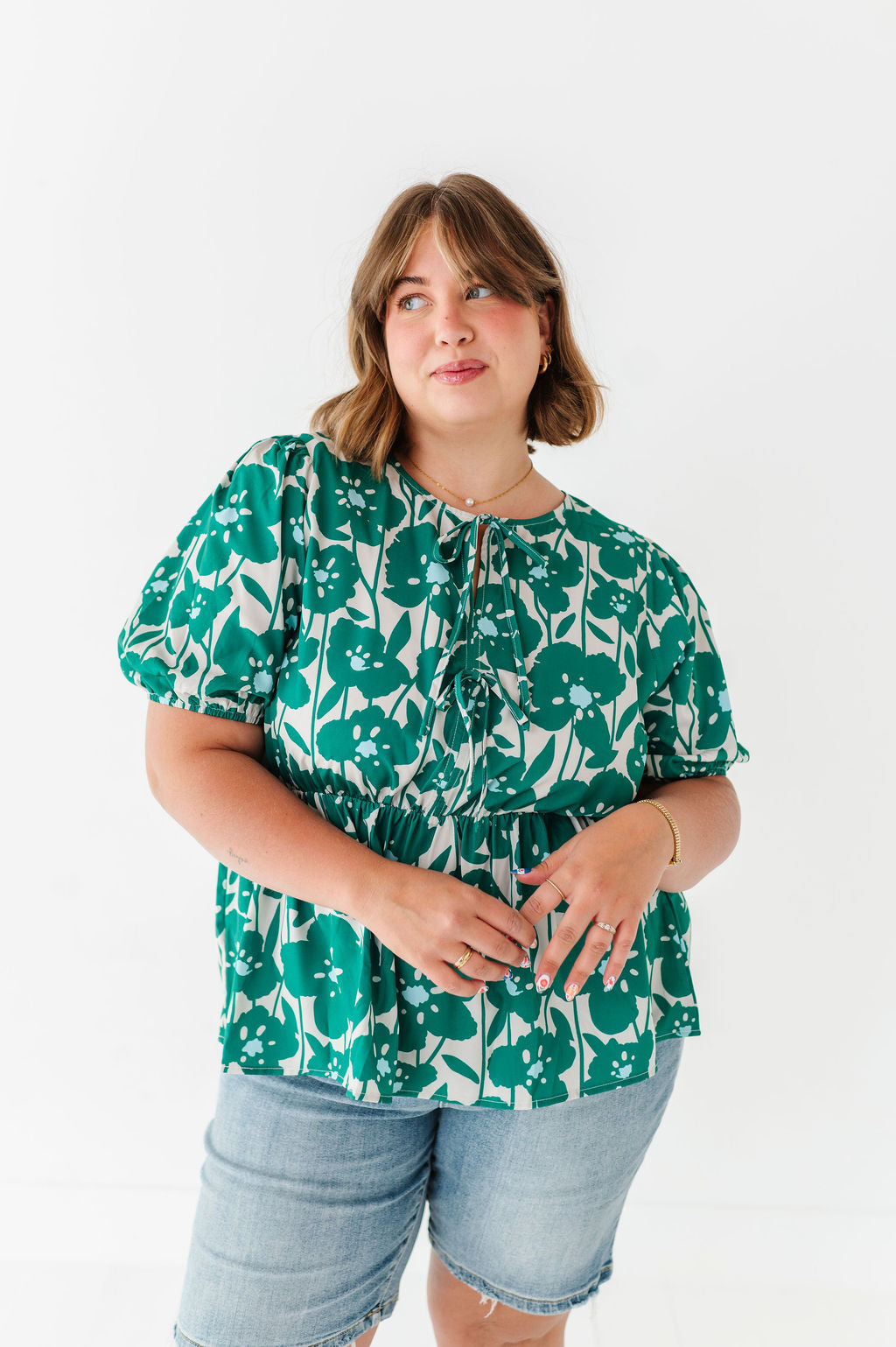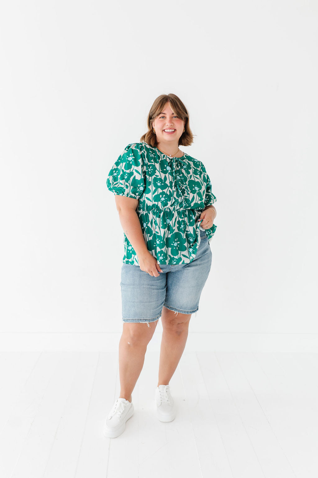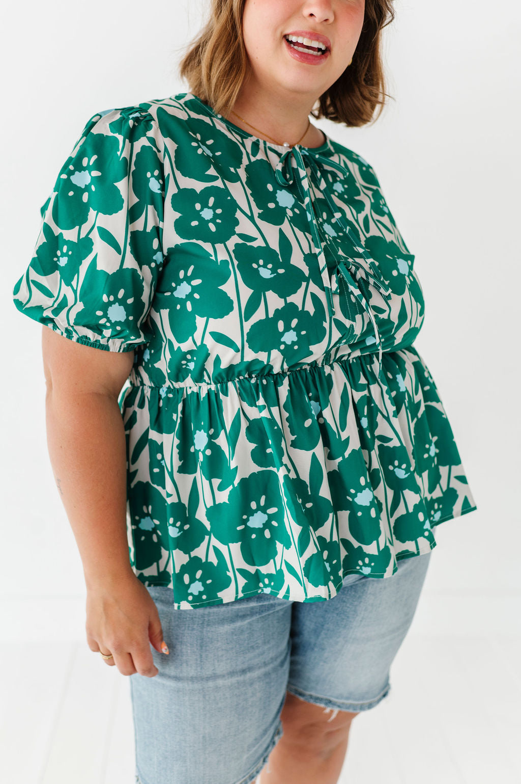 - Short bubble sleeves with elastic