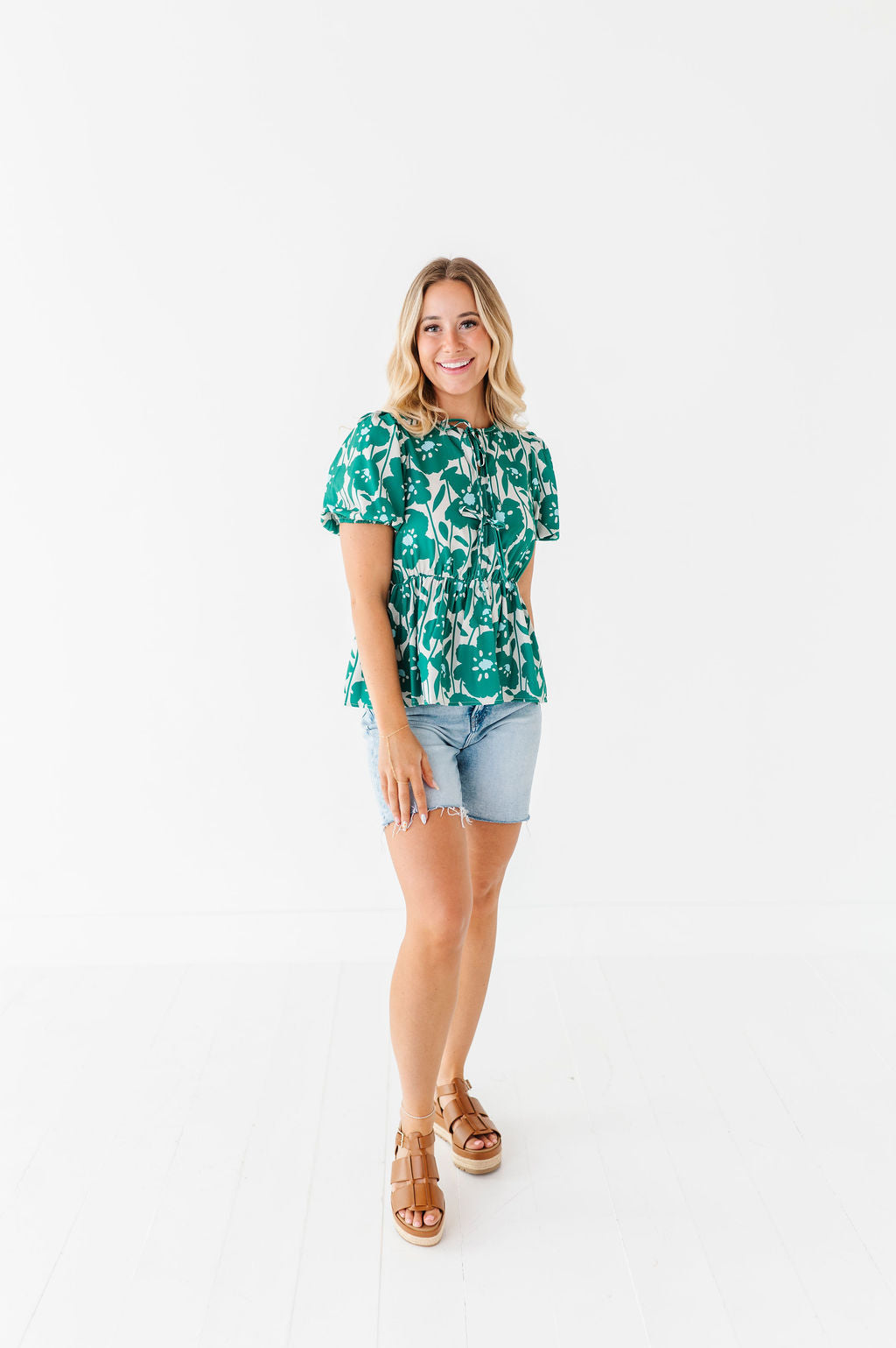 - Cream with green and light blue big floral print