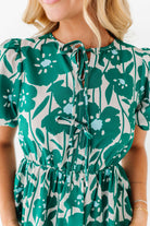 - Round neckline with functional upper tie