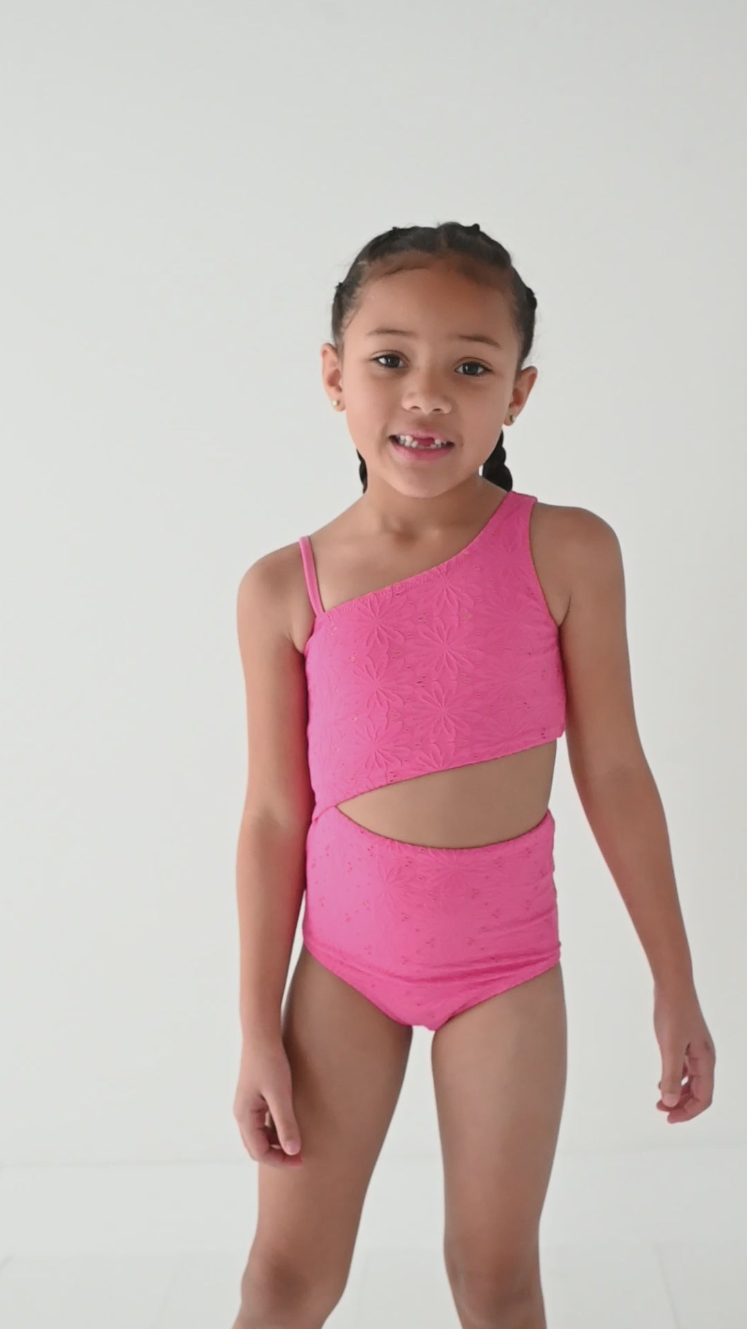 Girls One Piece in Eyelet Flamingo