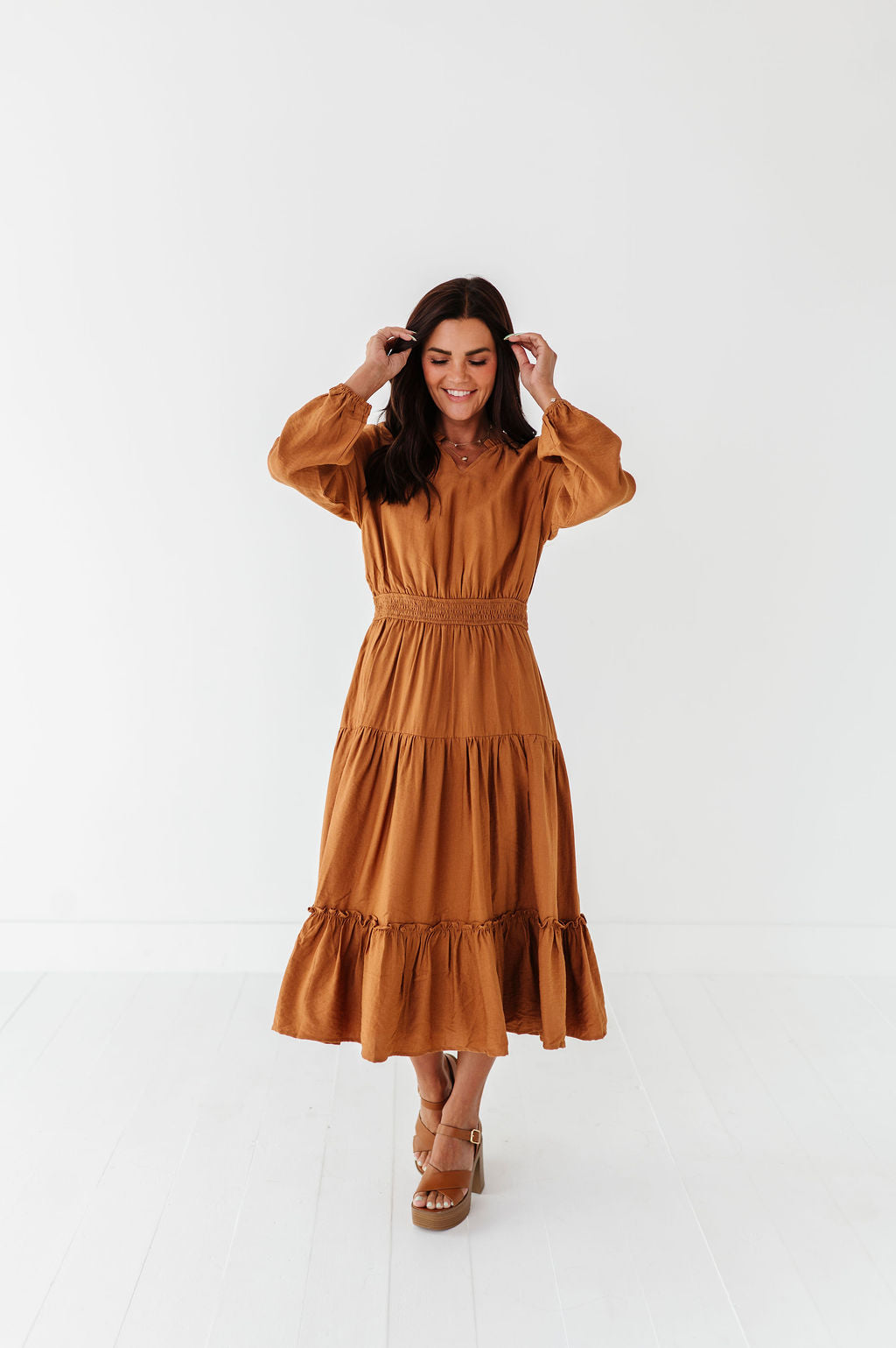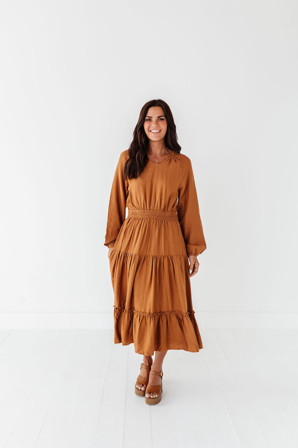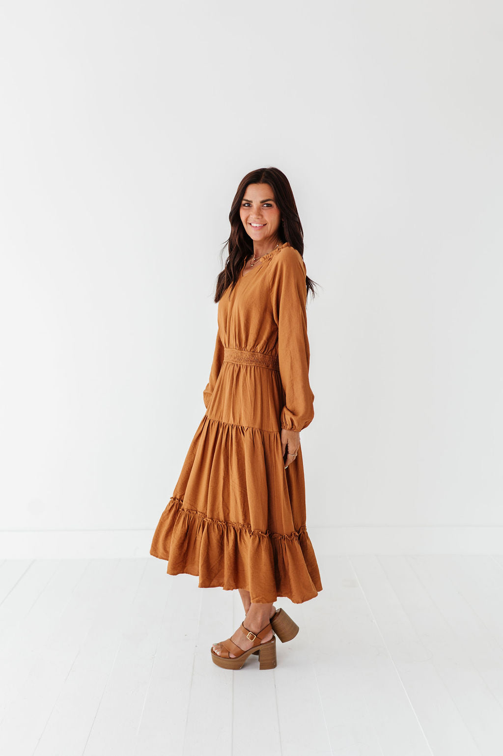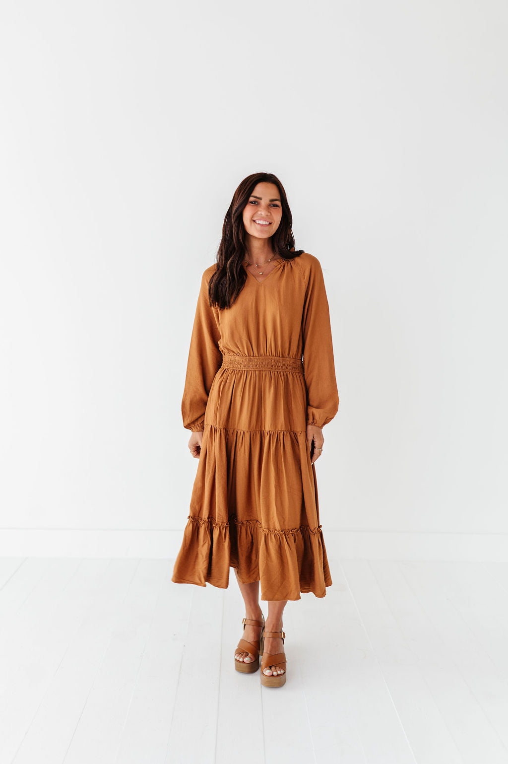 Kenzie Tiered Dress in Caramel