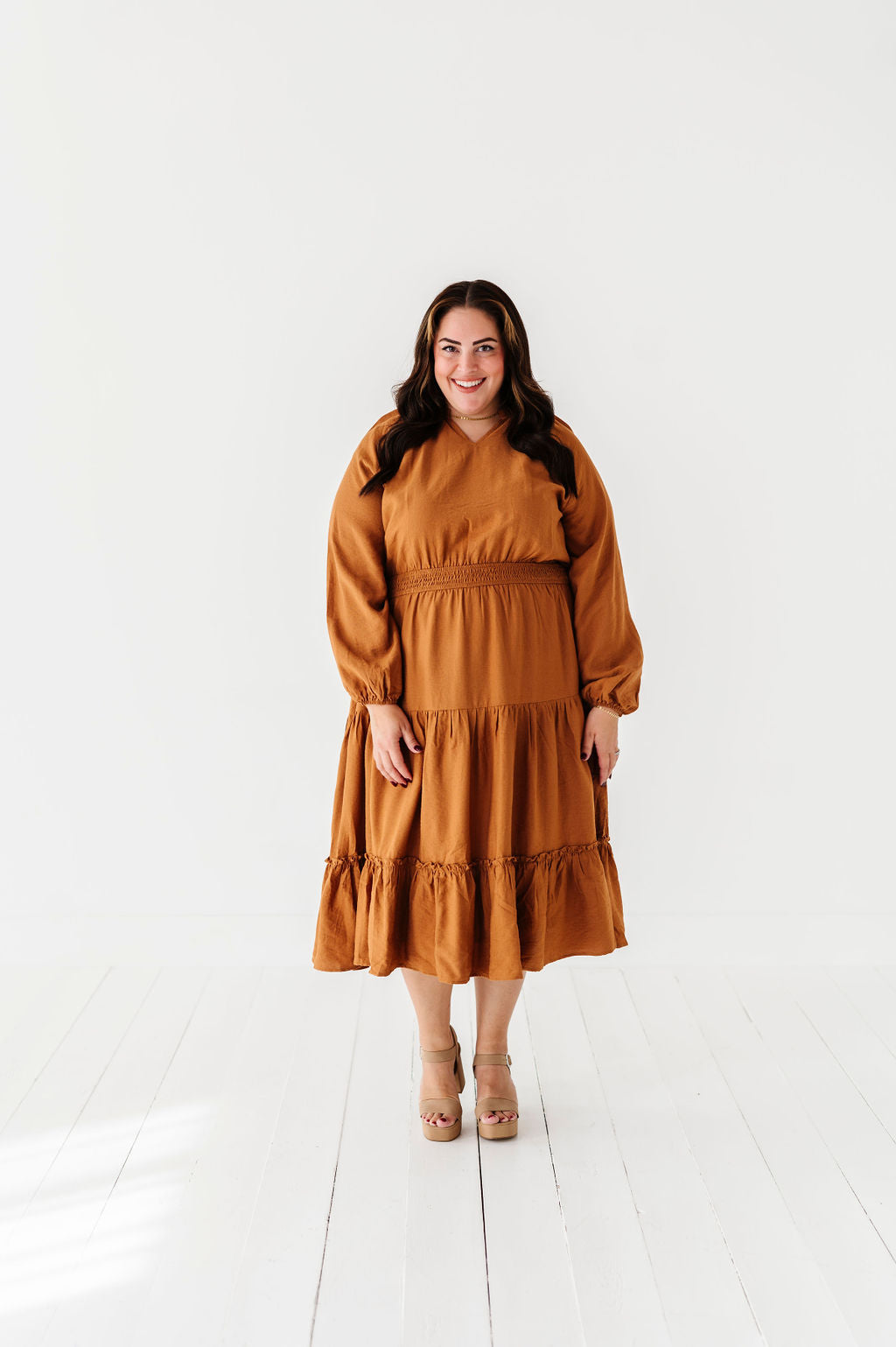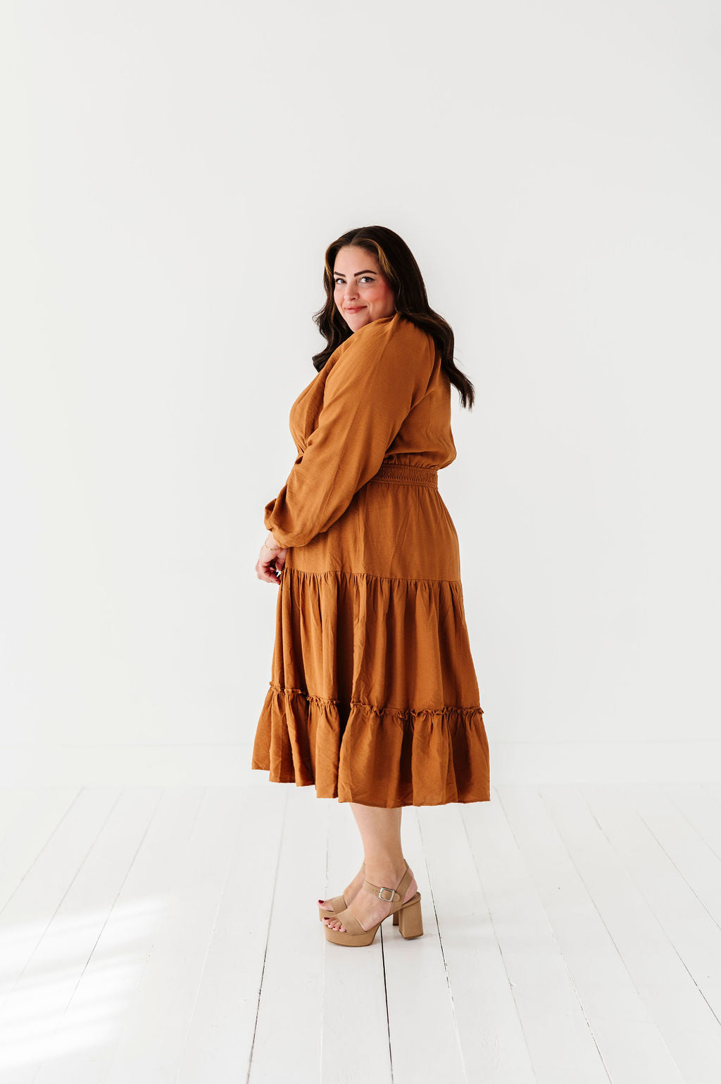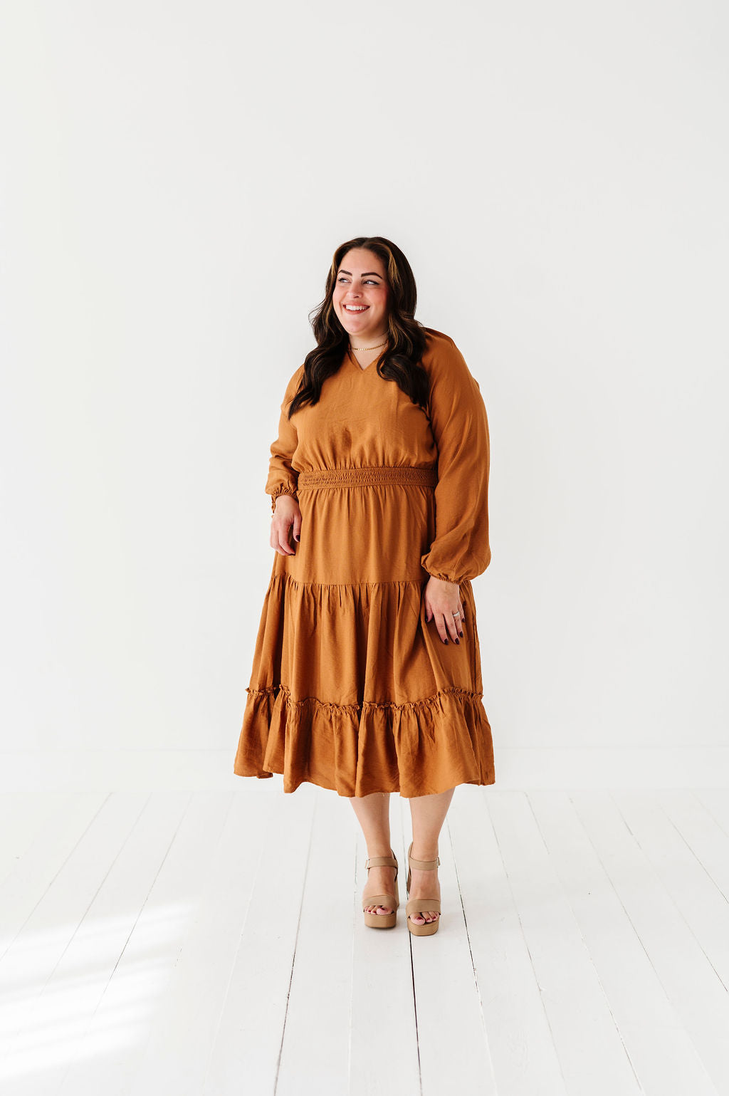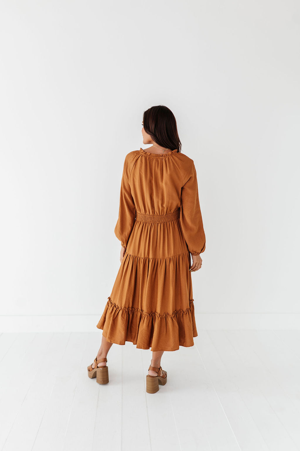 Kenzie Tiered Dress in Caramel