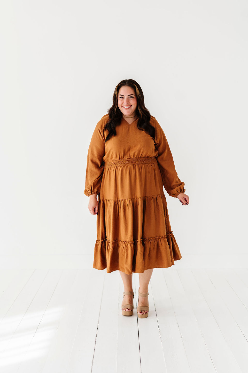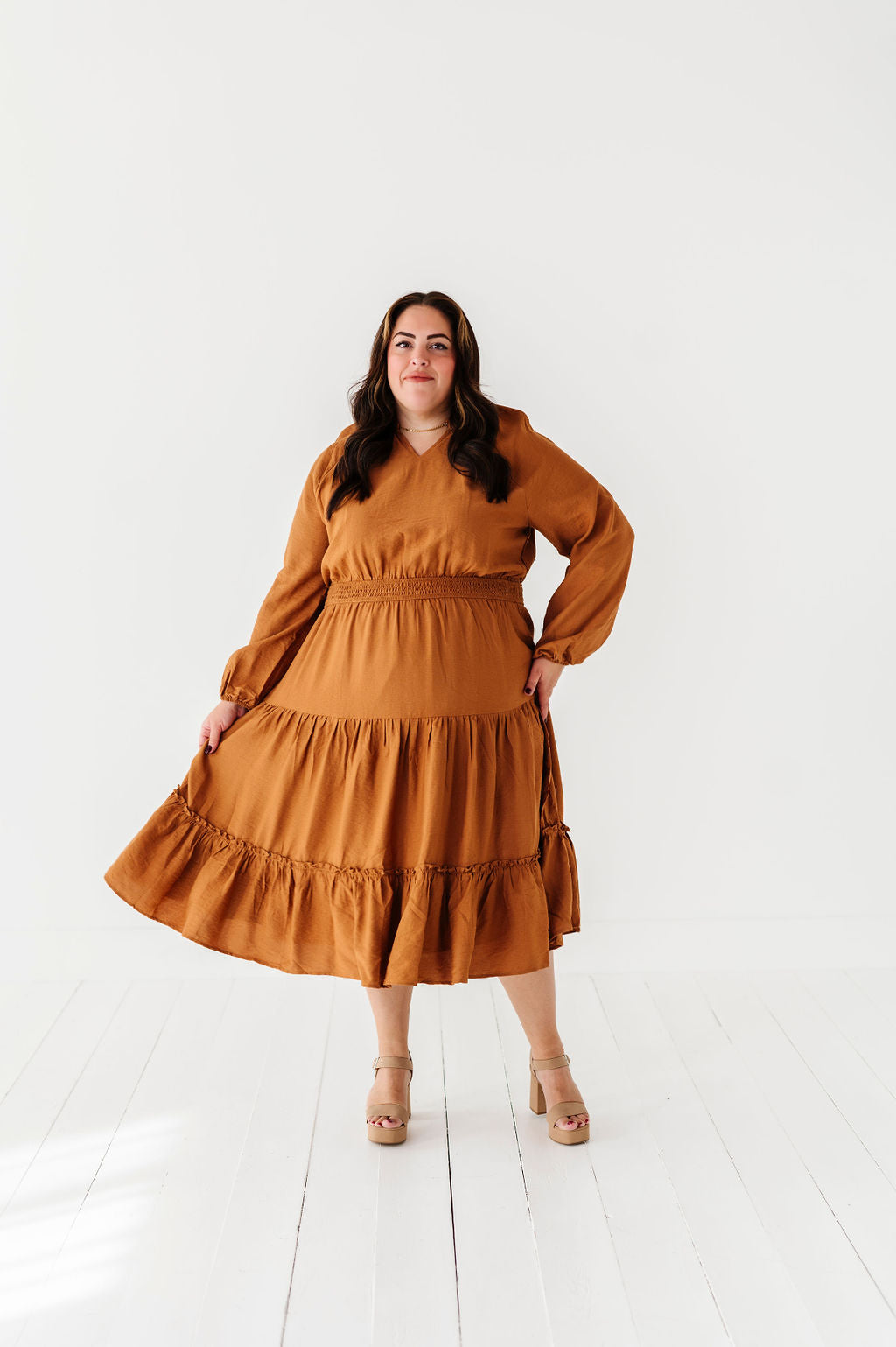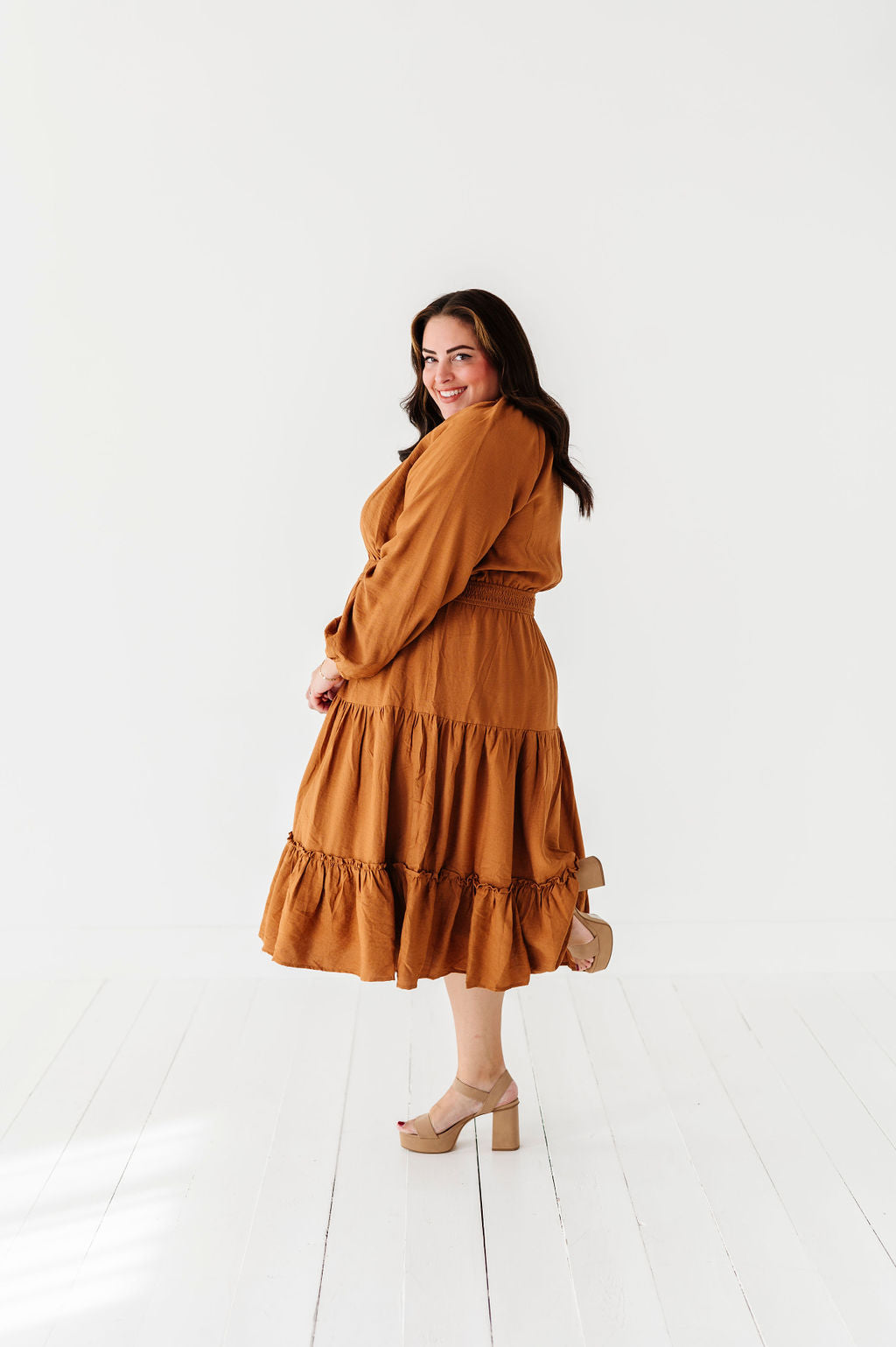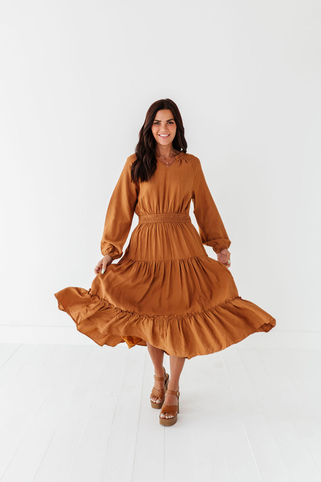 Kenzie Tiered Dress in Caramel