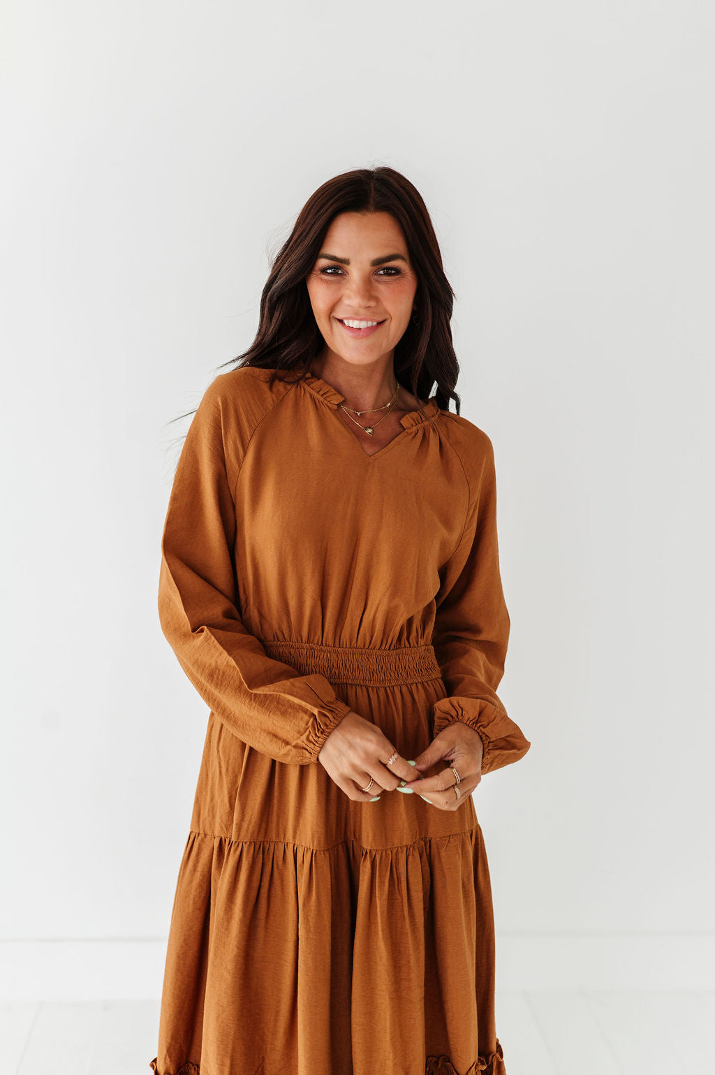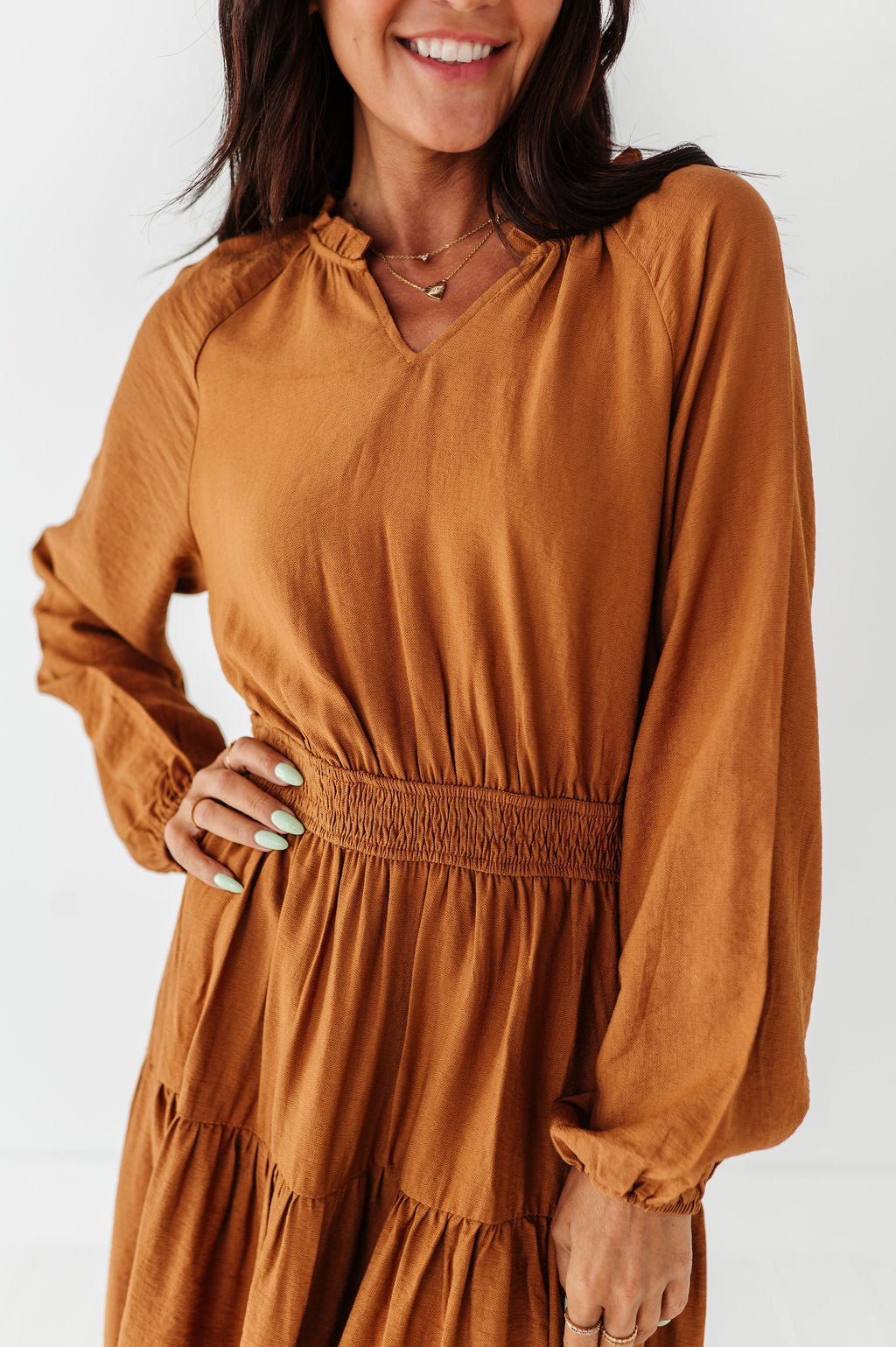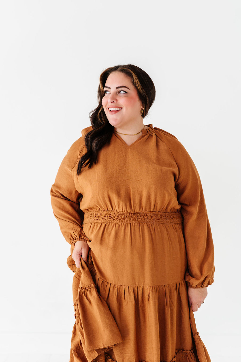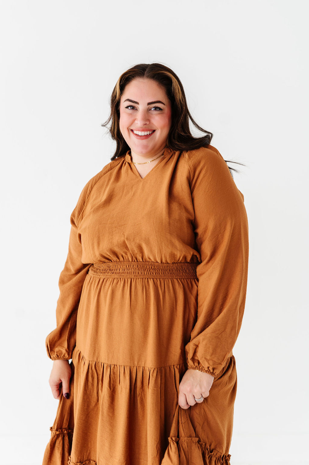 Kenzie Tiered Dress in Caramel