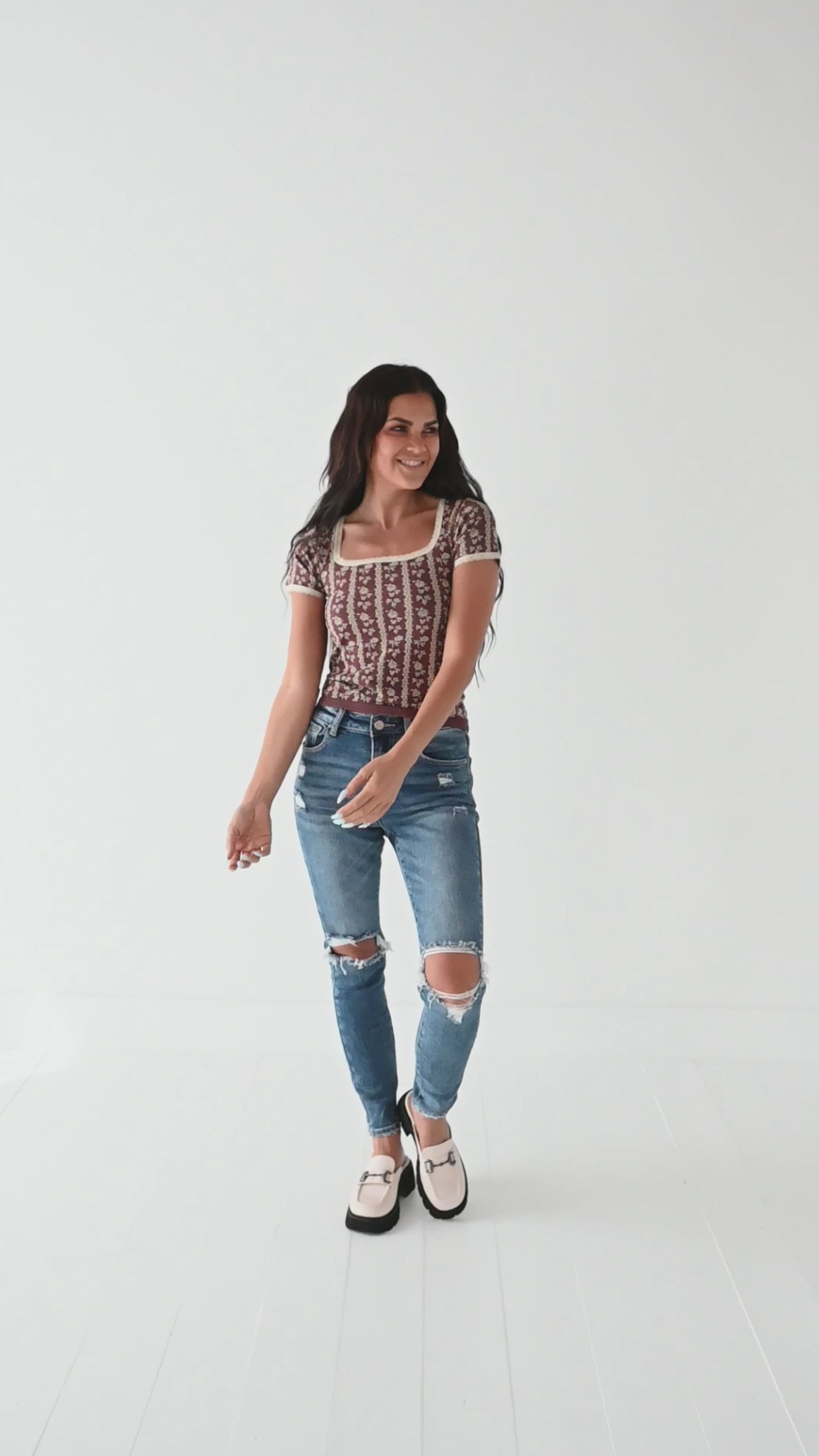 Celine Floral Top in Burgundy
