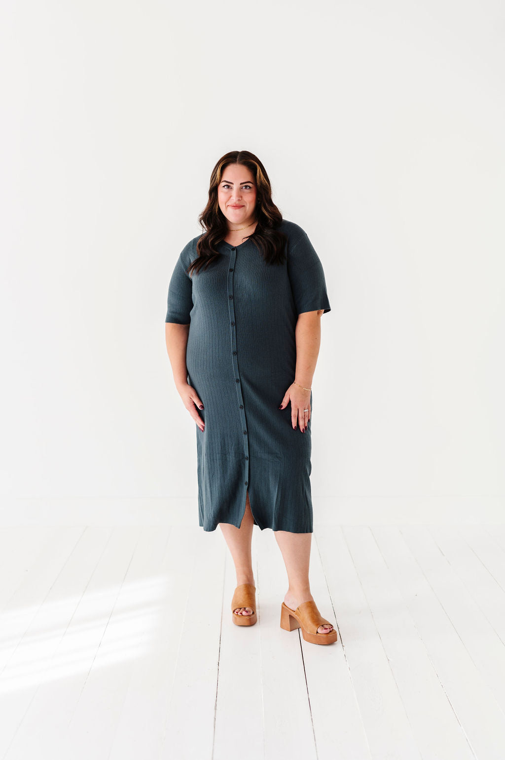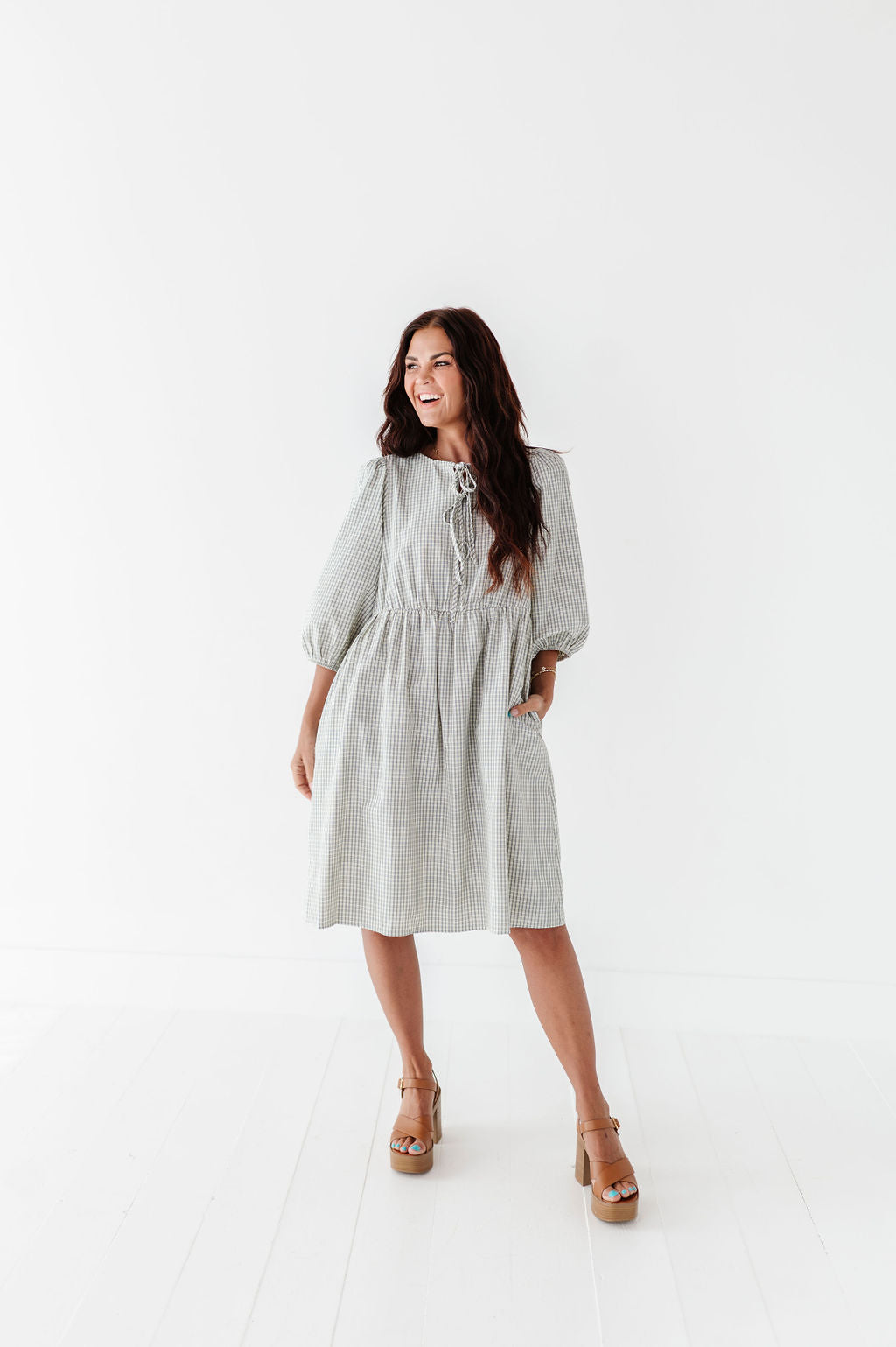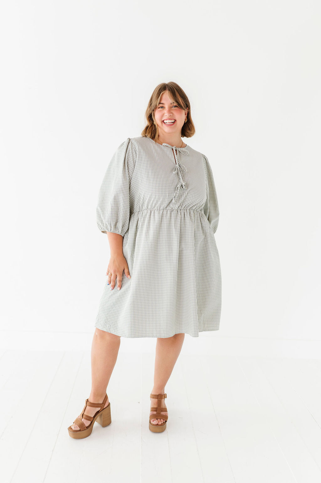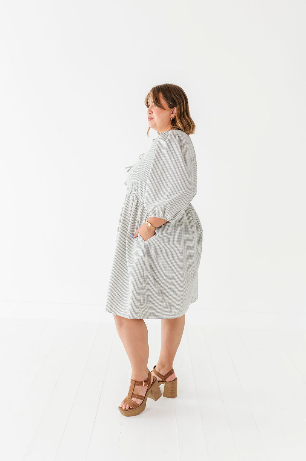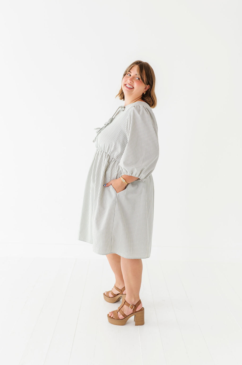 The dress is super cute! I like the zipper on the side because it snatches me right up but makes it easier to get the dress on. The elastic on the sleeves isn’t too tight which I really like. Overall the dress is a great material, super comfortable, and definitely worth it!