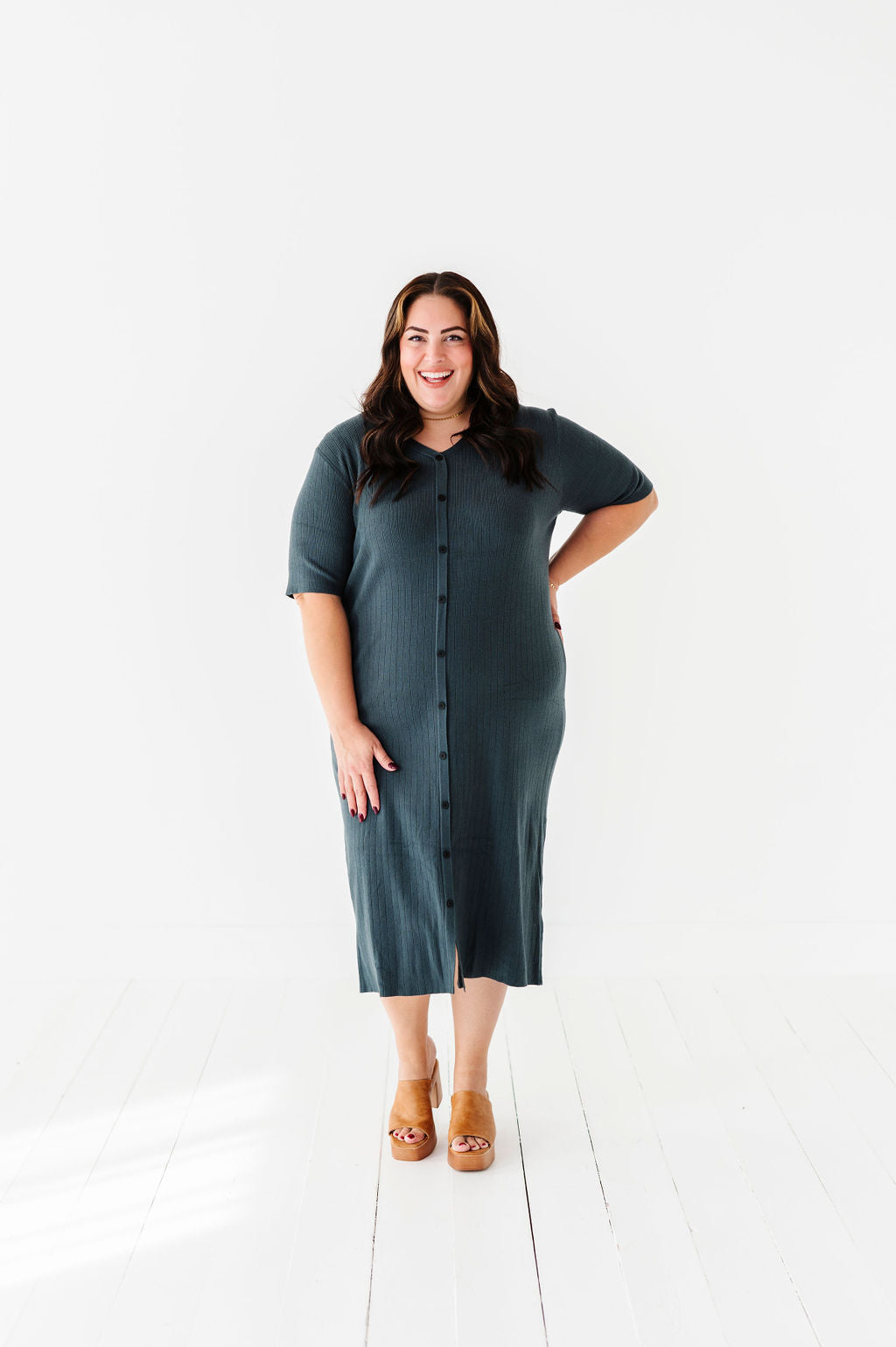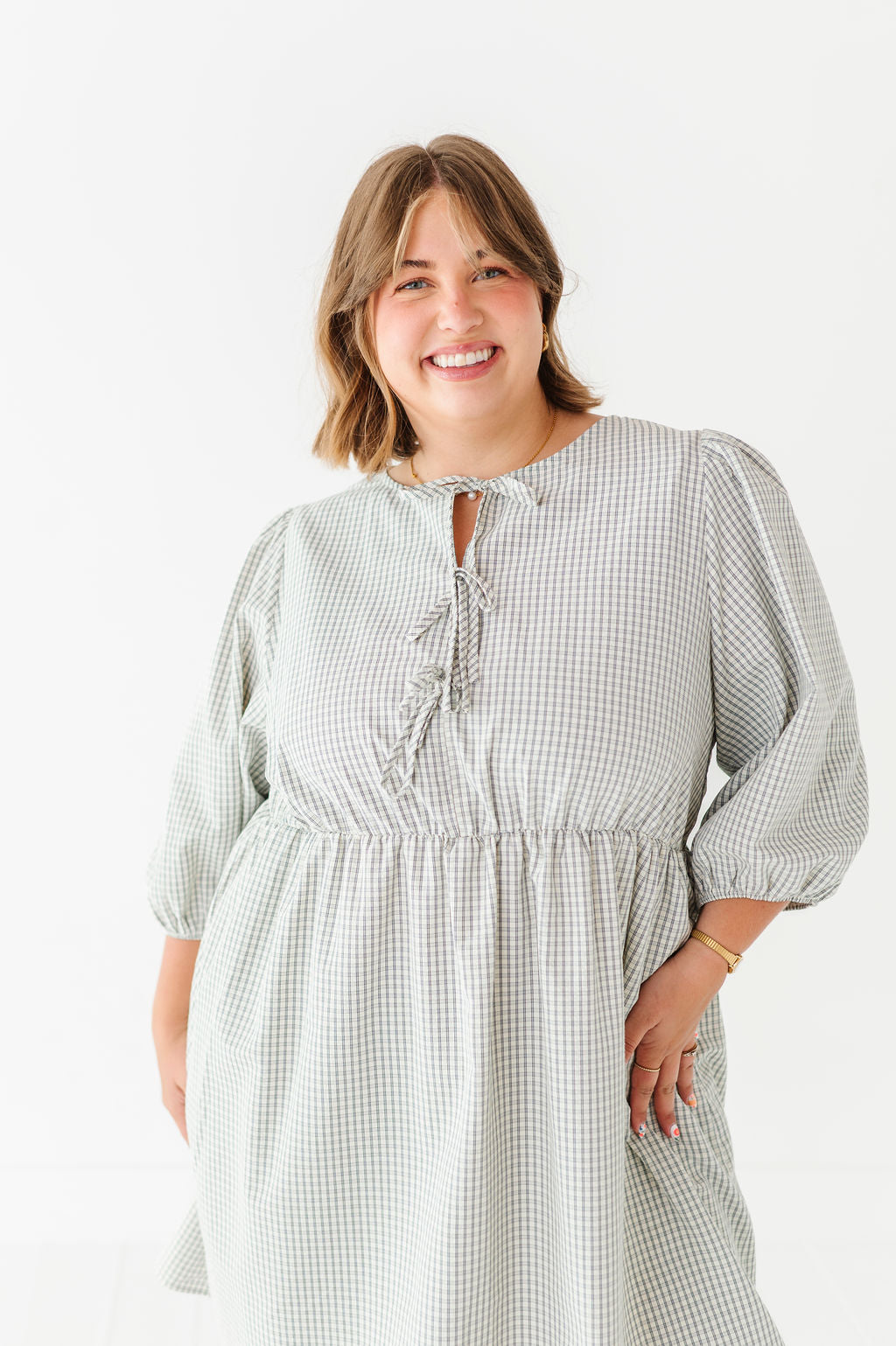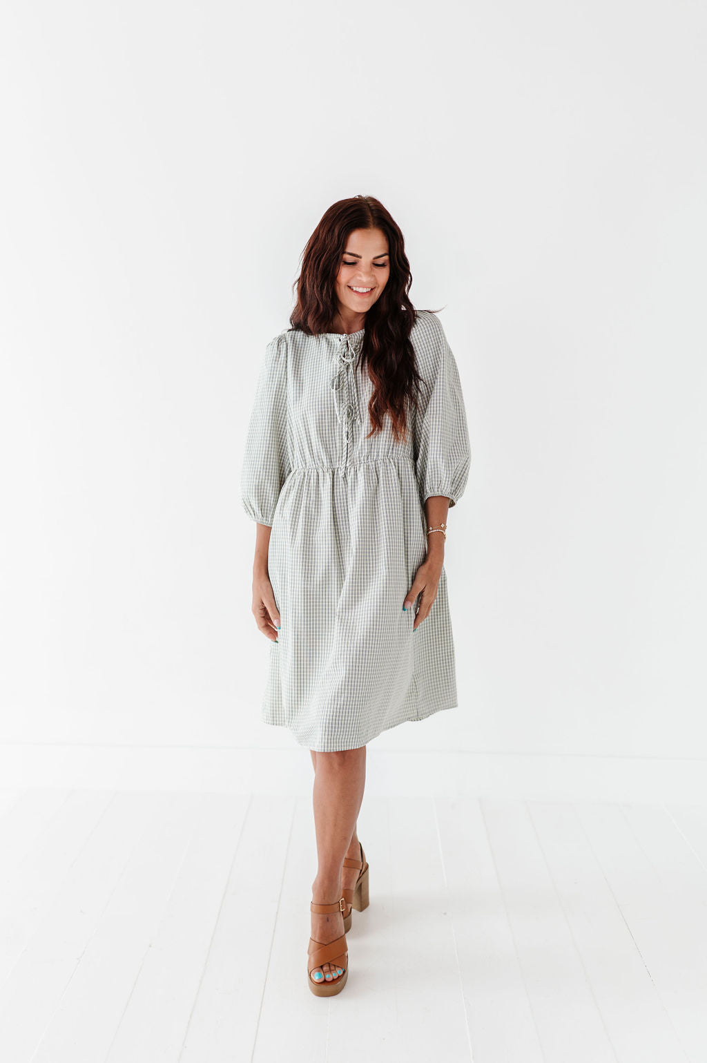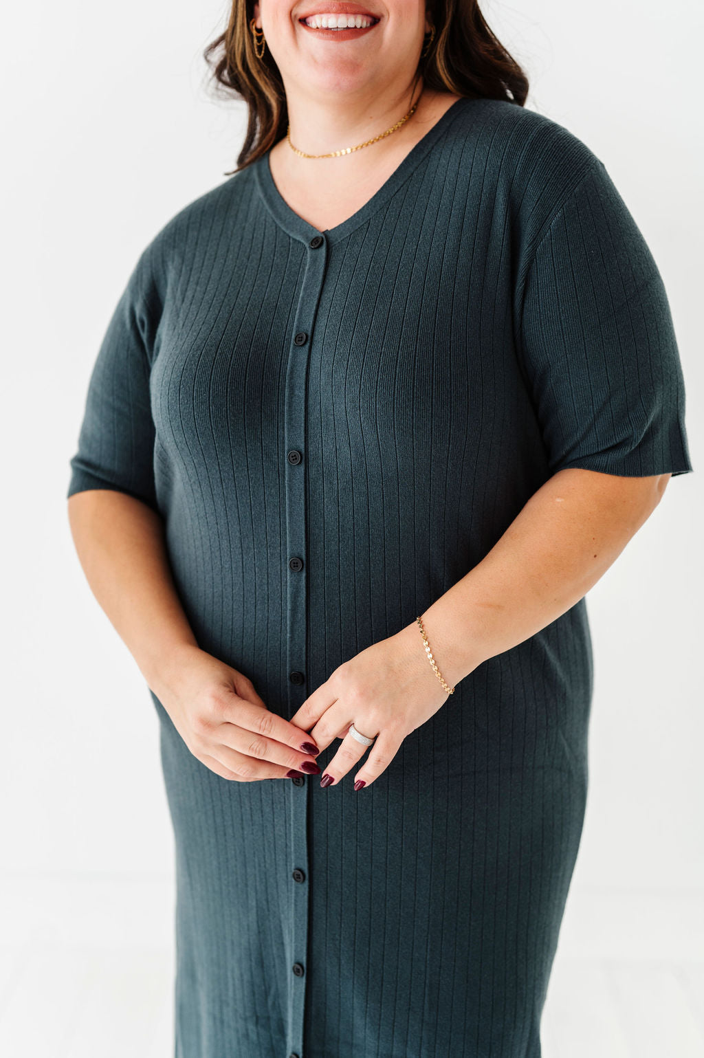 The dress is super cute! I like the zipper on the side because it snatches me right up but makes it easier to get the dress on. The elastic on the sleeves isn’t too tight which I really like. Overall the dress is a great material, super comfortable, and definitely worth it!