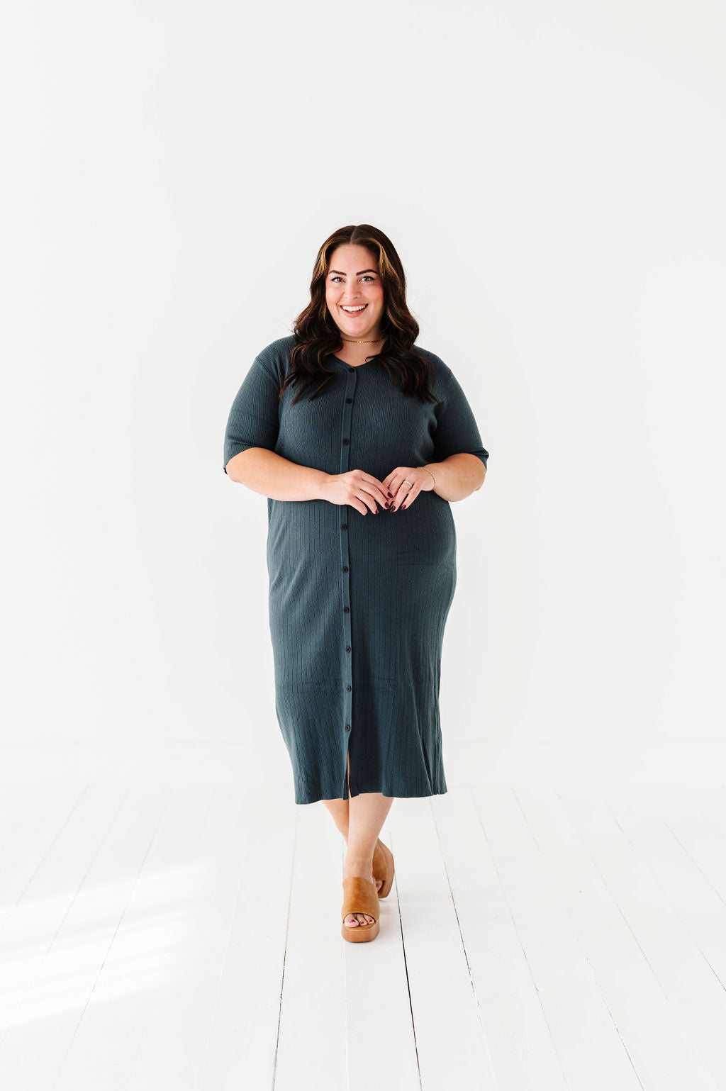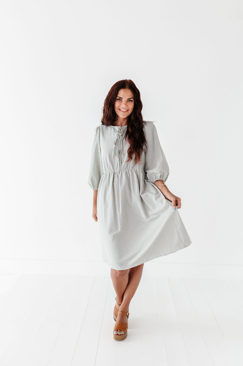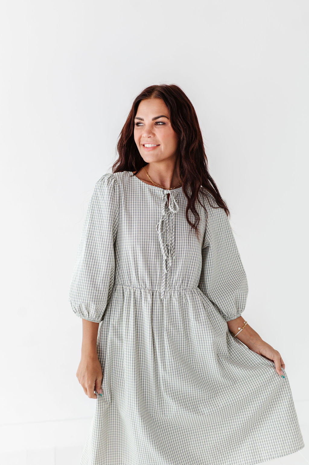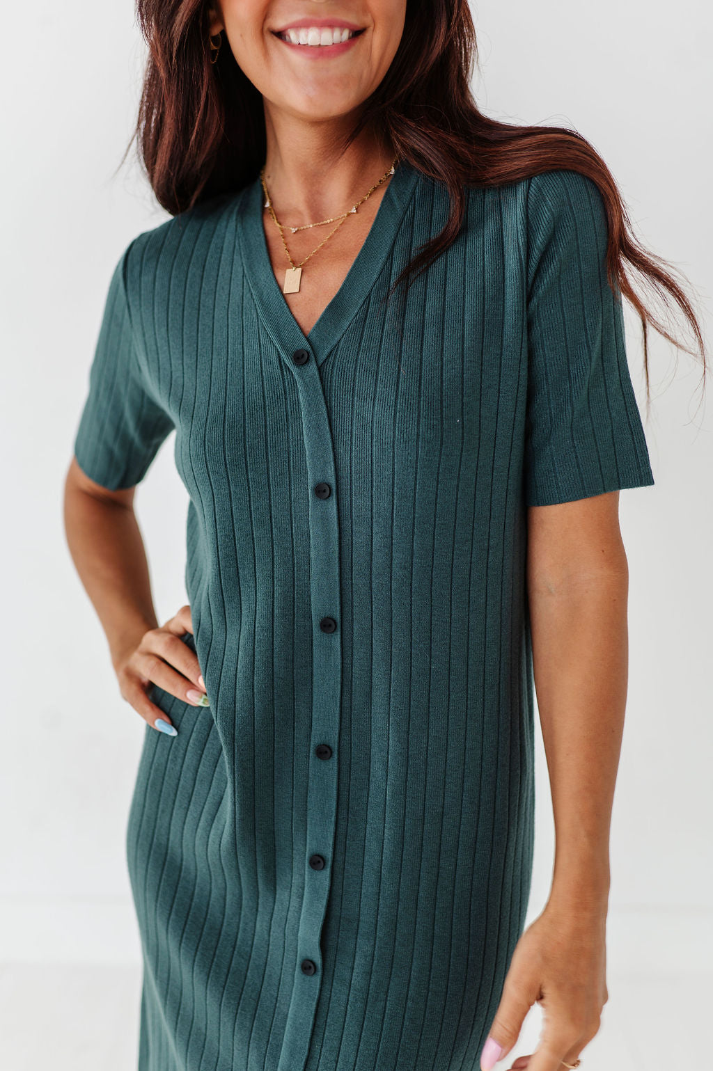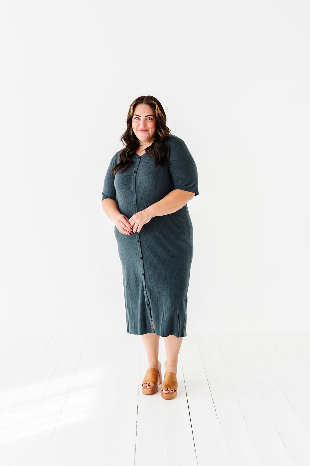 The dress is super cute! I like the zipper on the side because it snatches me right up but makes it easier to get the dress on. The elastic on the sleeves isn’t too tight which I really like. Overall the dress is a great material, super comfortable, and definitely worth it!