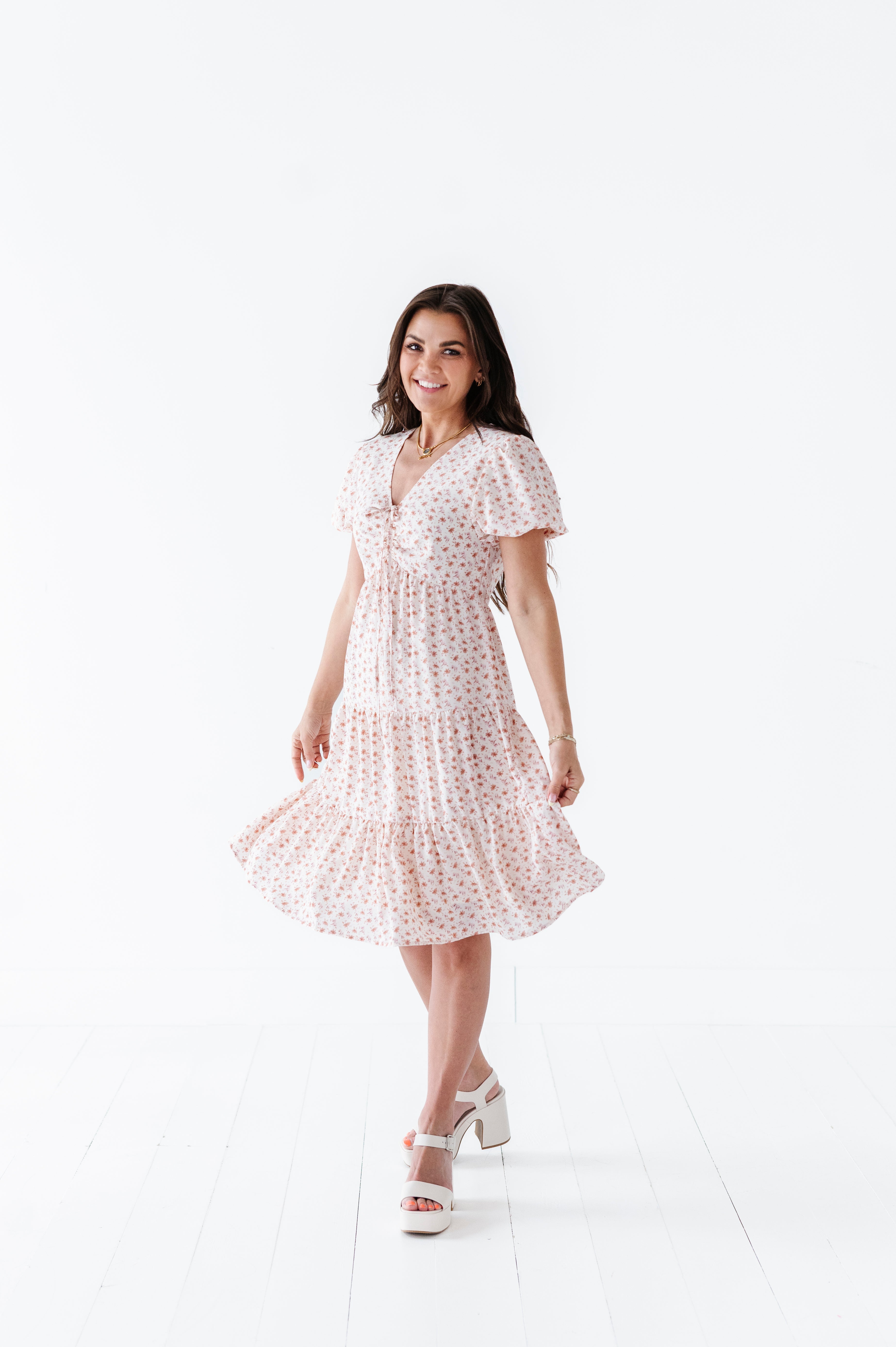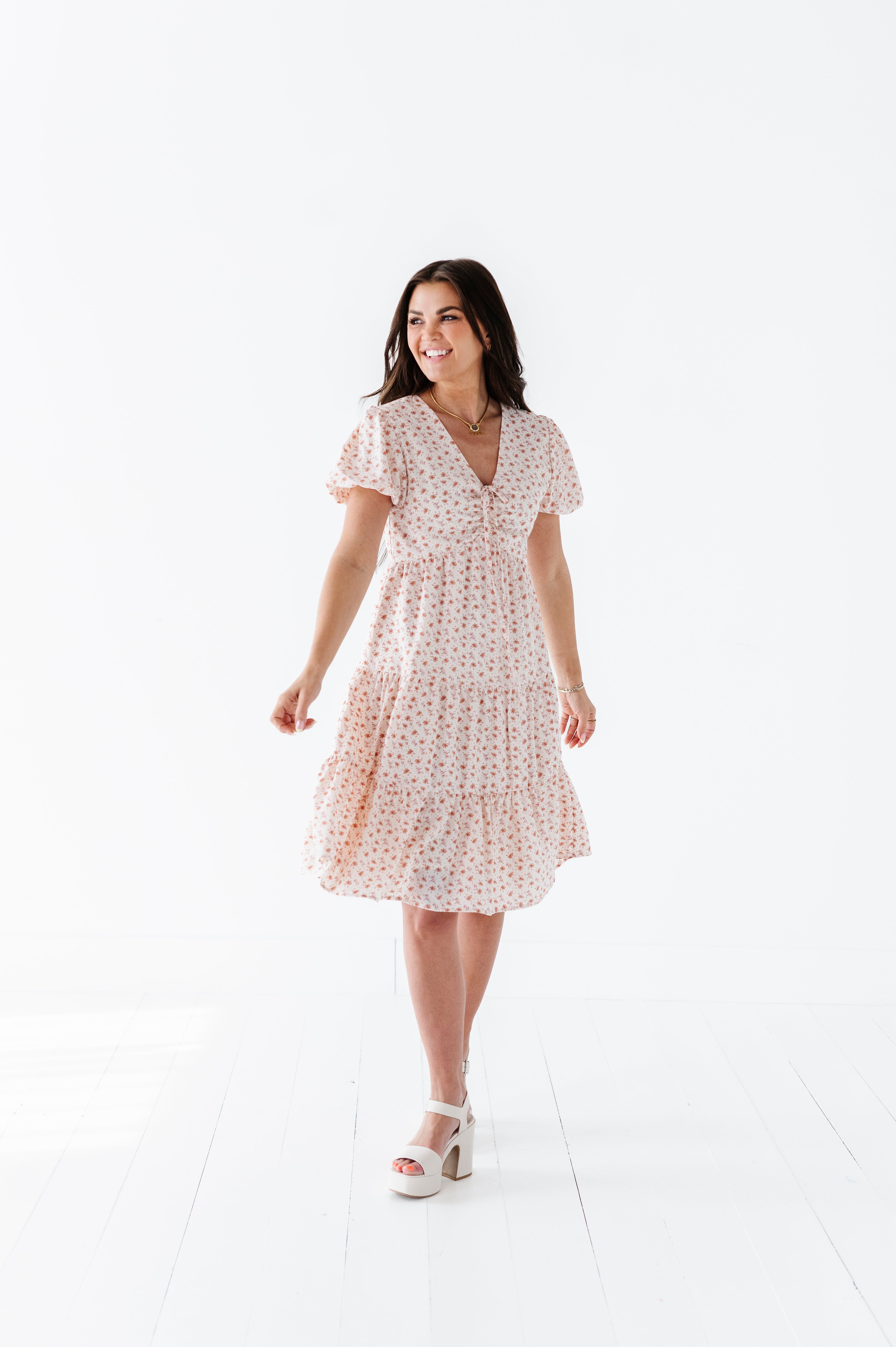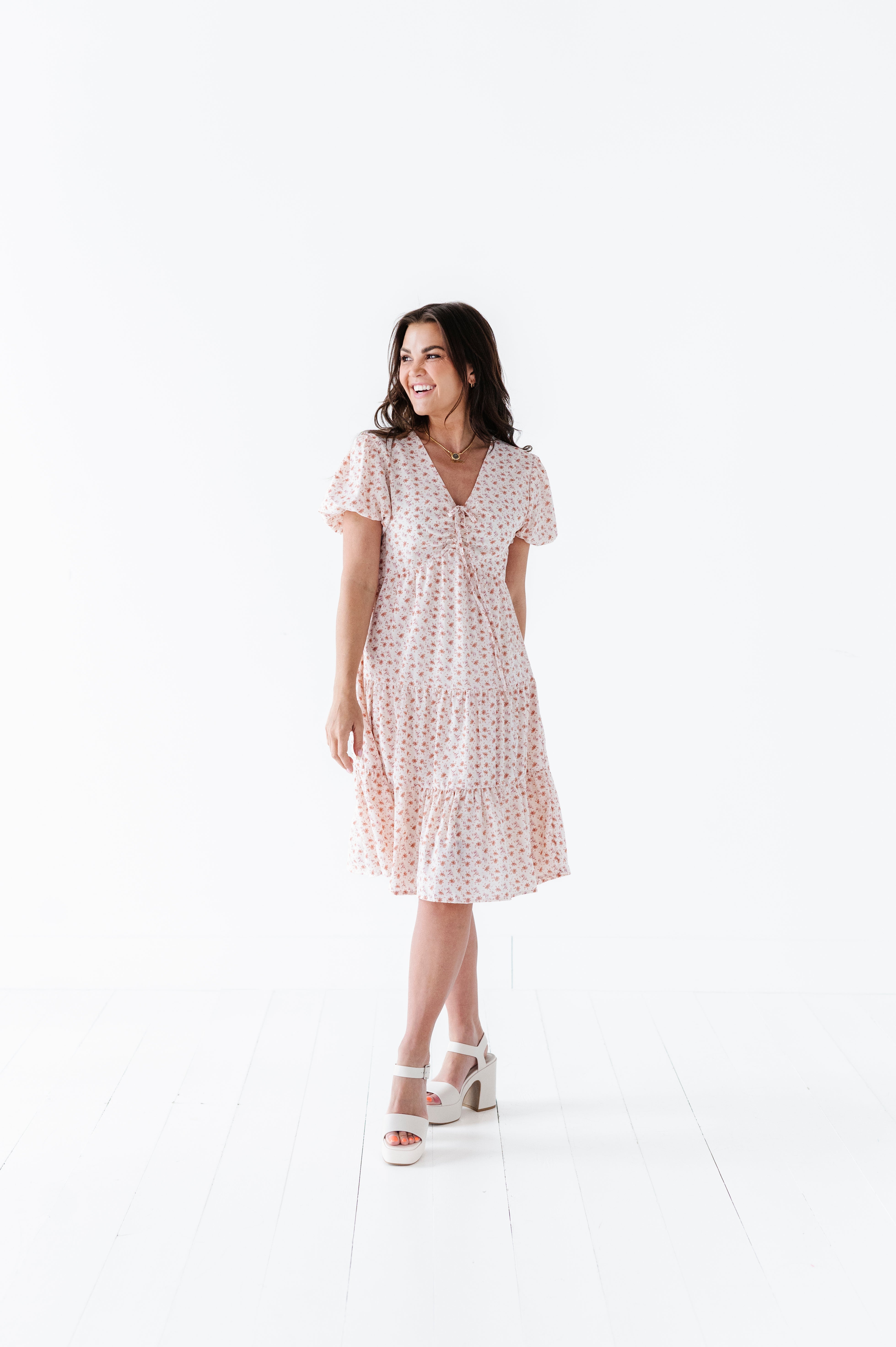 The dress is super cute! I like the zipper on the side because it snatches me right up but makes it easier to get the dress on. The elastic on the sleeves isn’t too tight which I really like. Overall the dress is a great material, super comfortable, and definitely worth it!