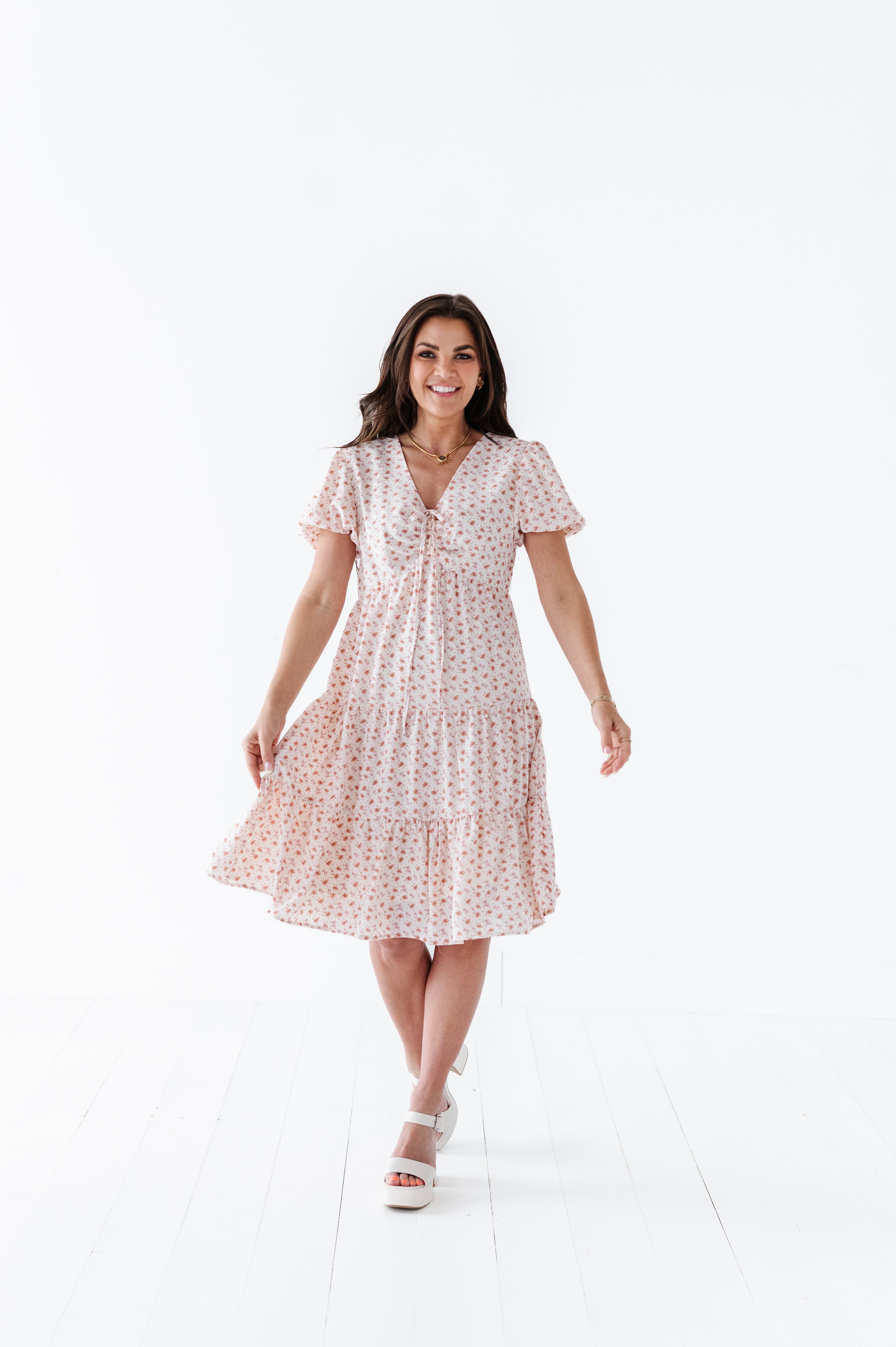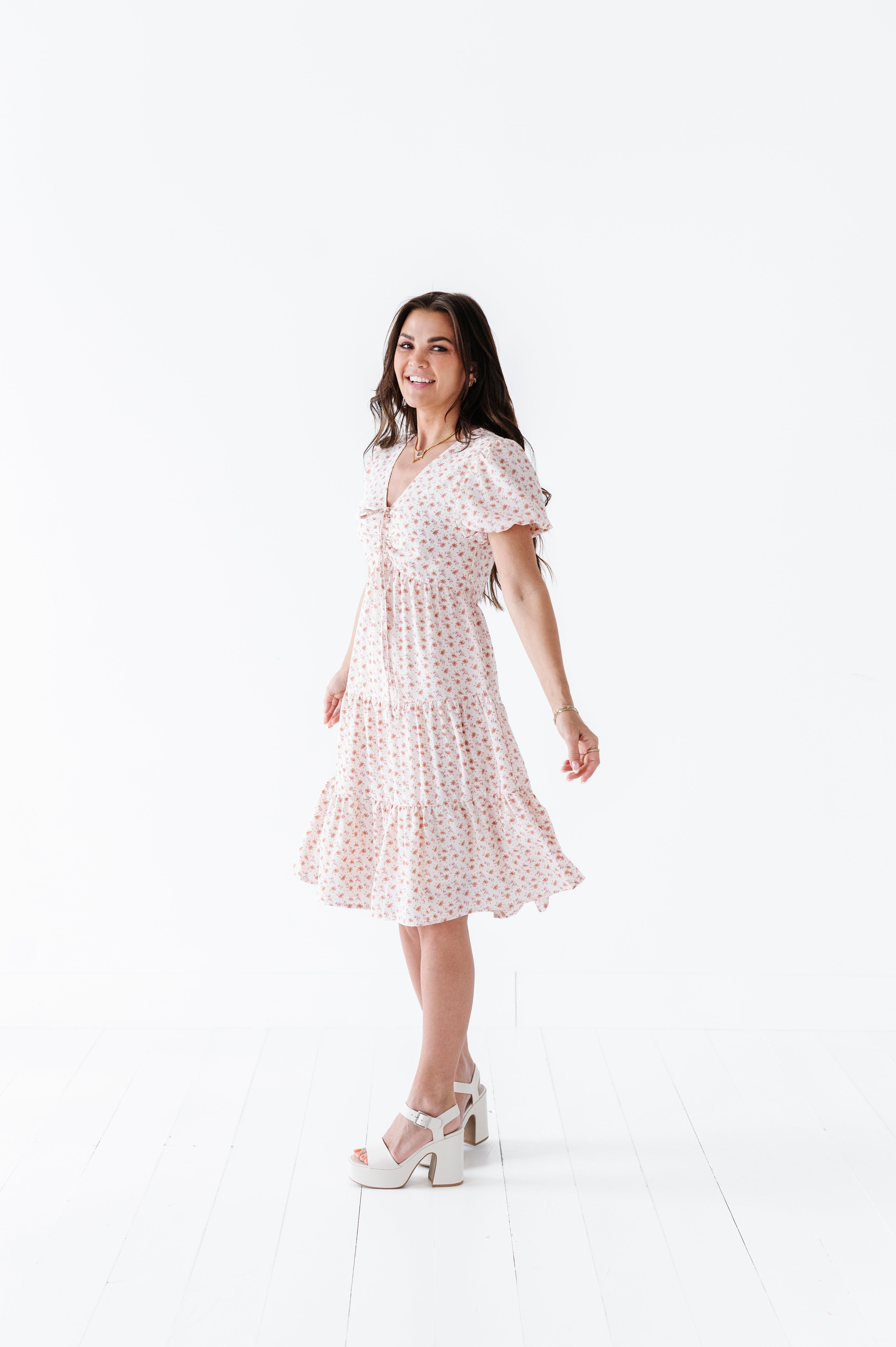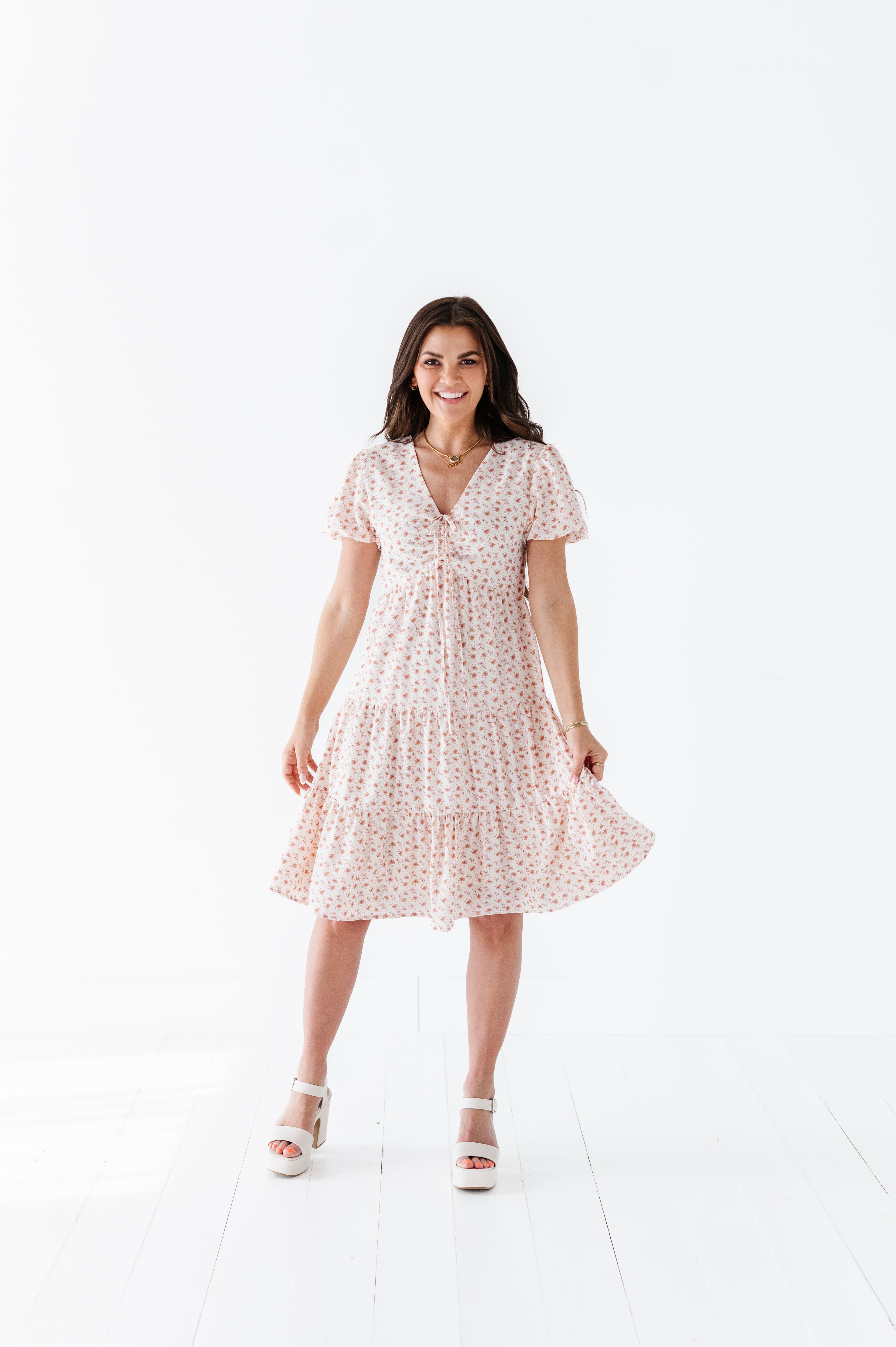 The dress is super cute! I like the zipper on the side because it snatches me right up but makes it easier to get the dress on. The elastic on the sleeves isn’t too tight which I really like. Overall the dress is a great material, super comfortable, and definitely worth it!