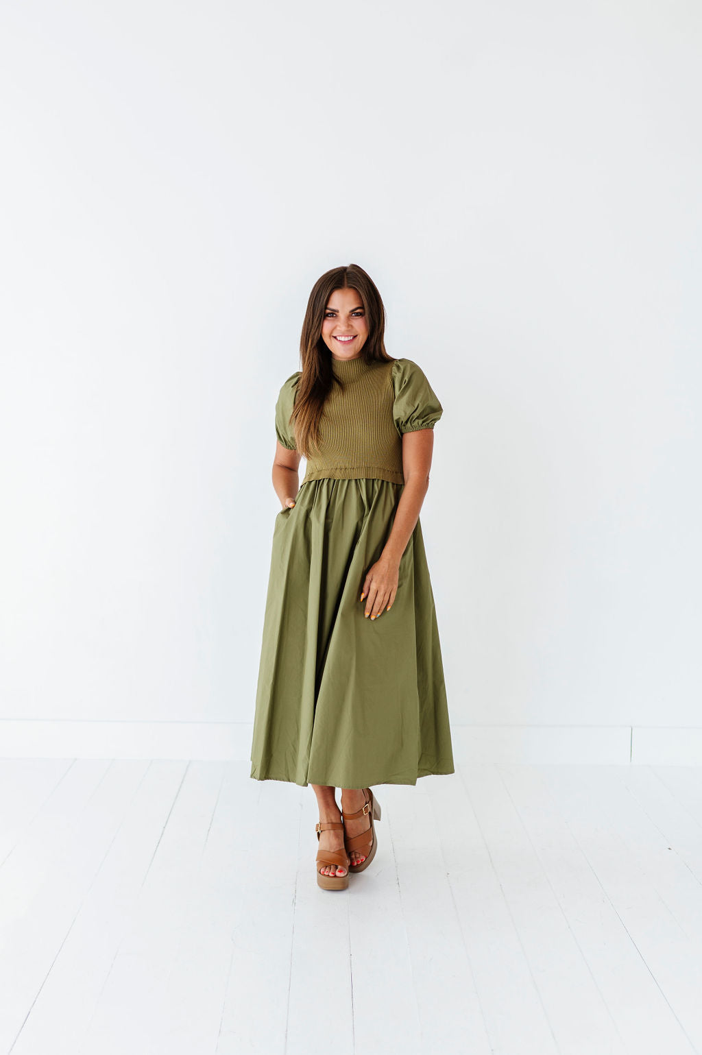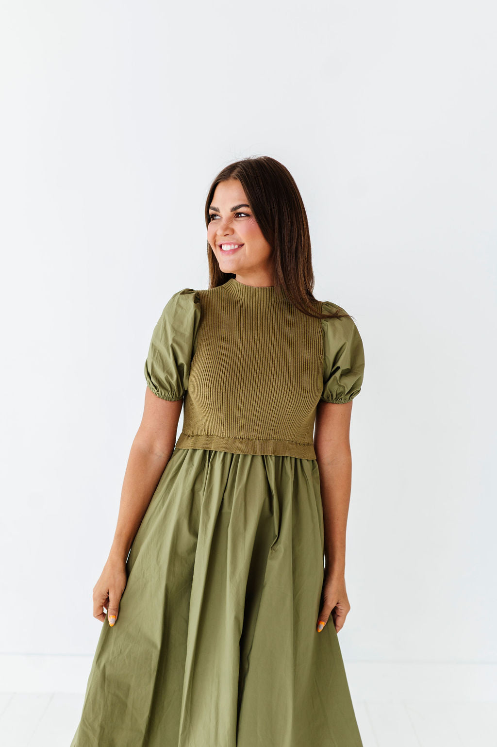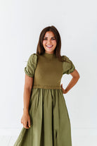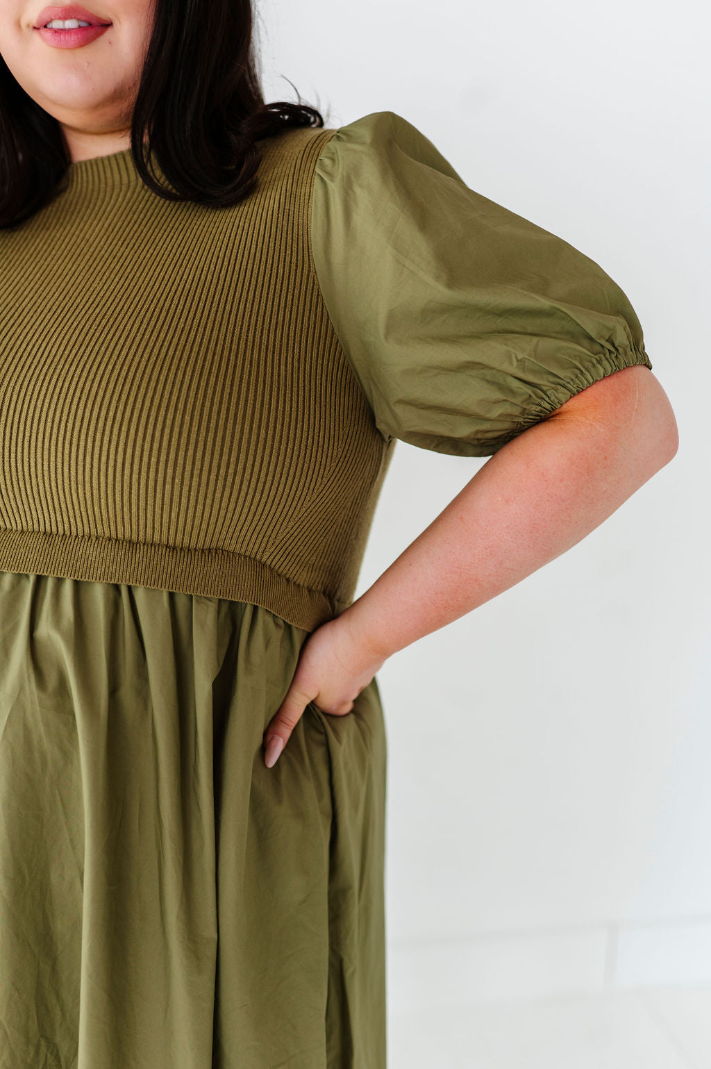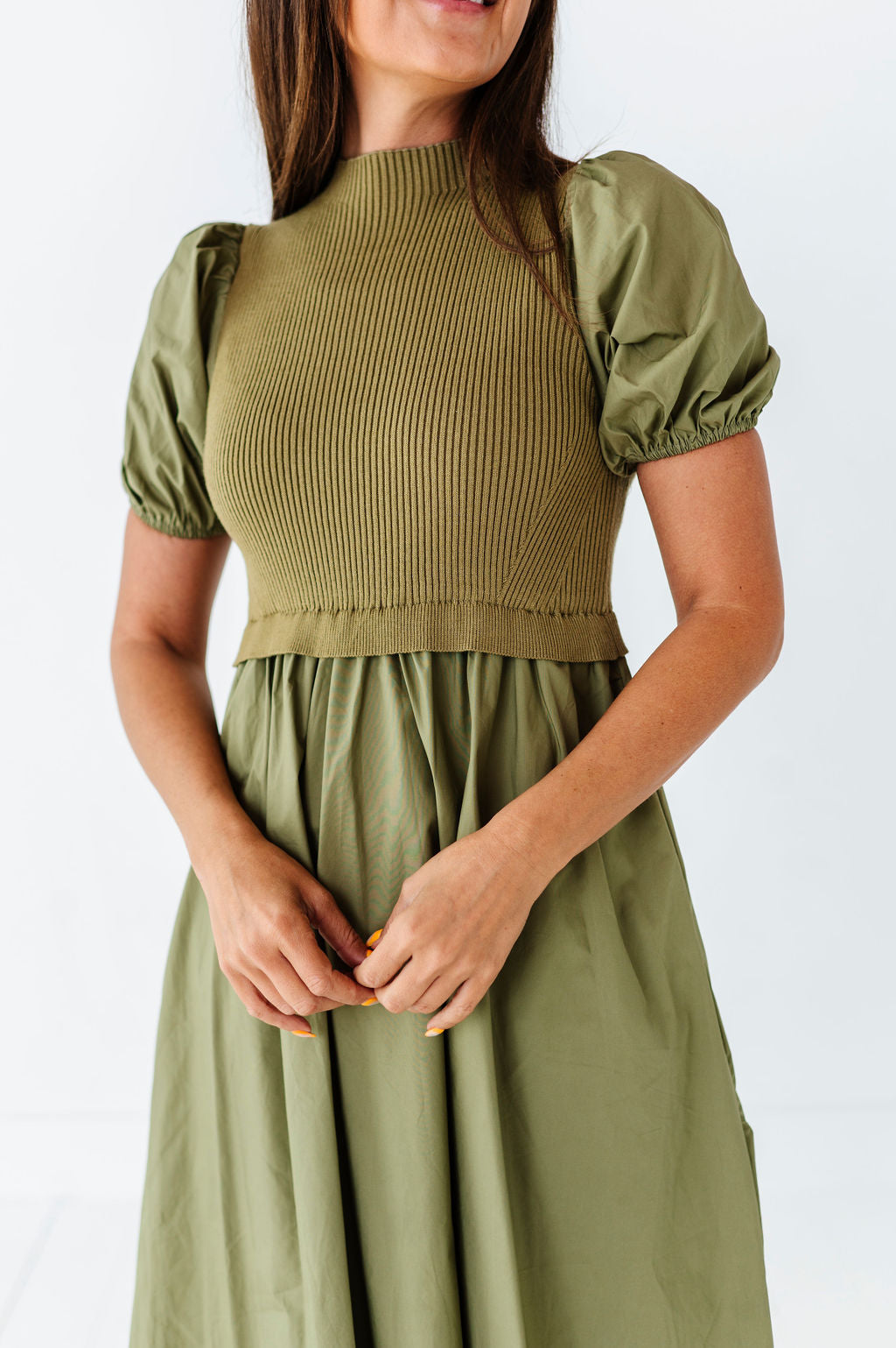 - Short puff sleeves with elastic