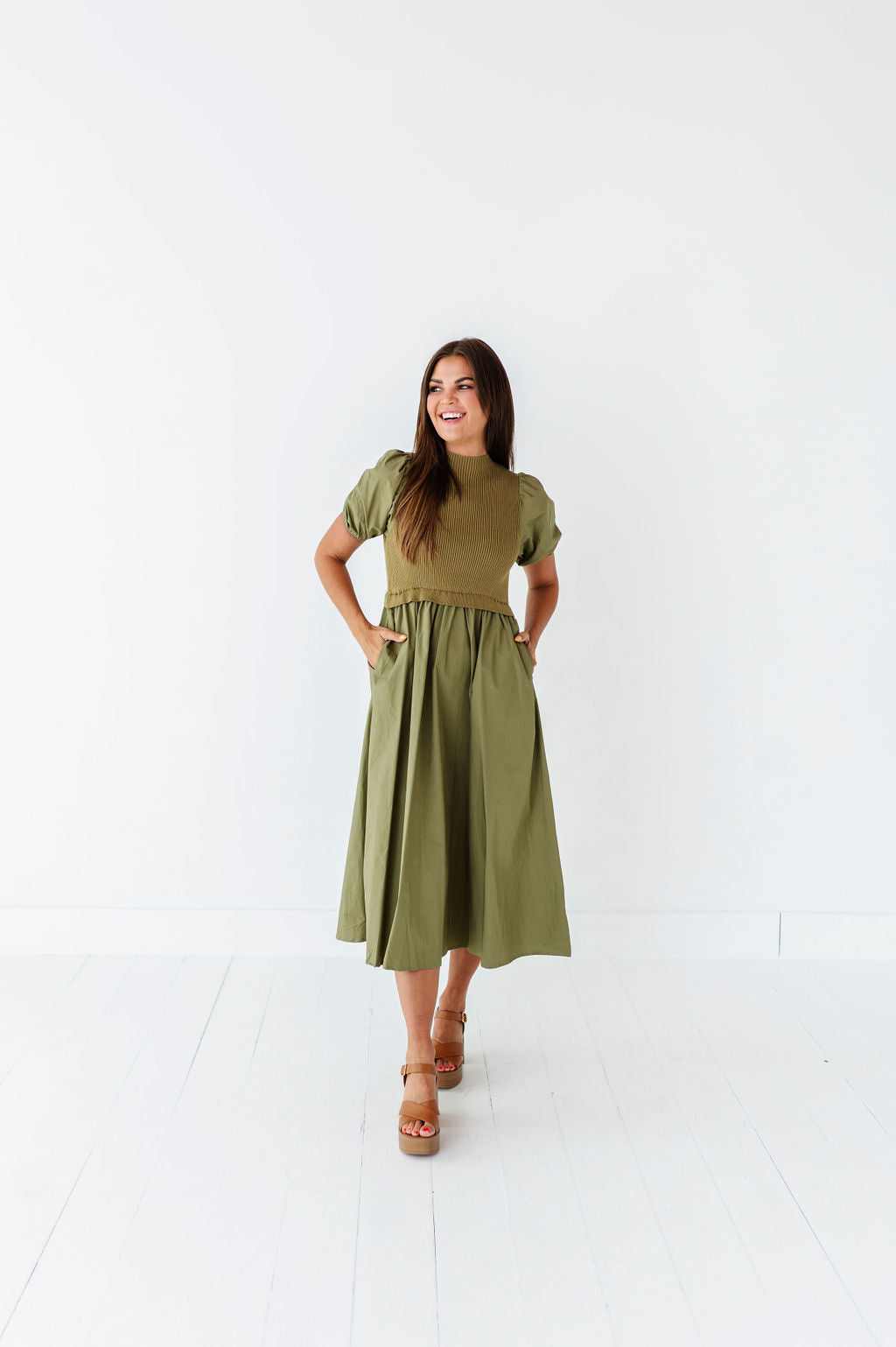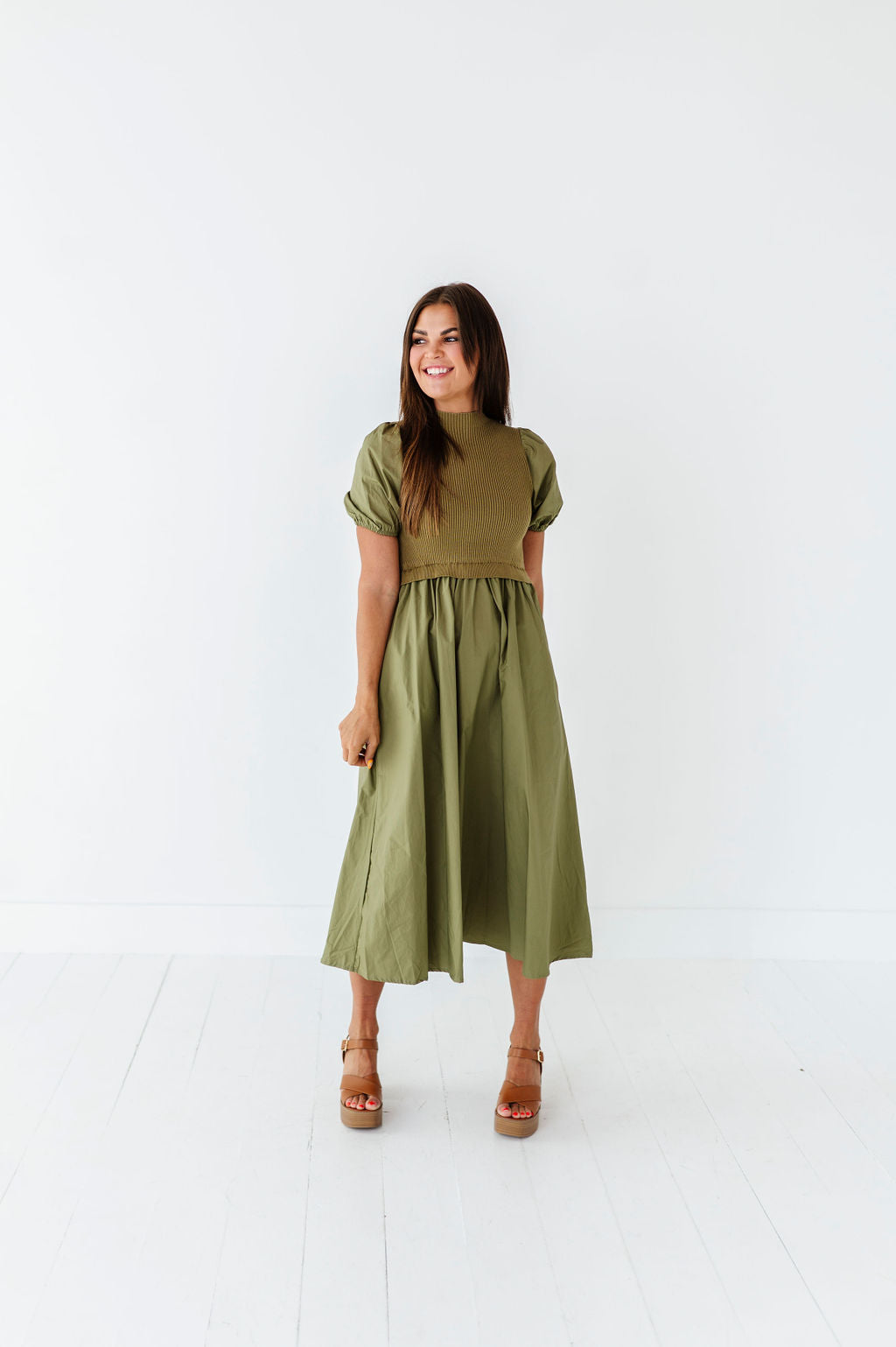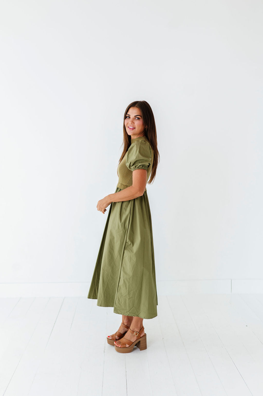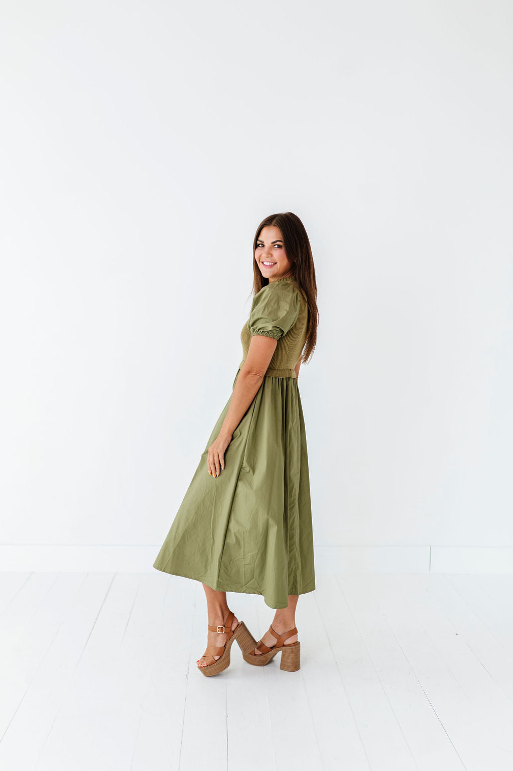 - Short puff sleeves with elastic