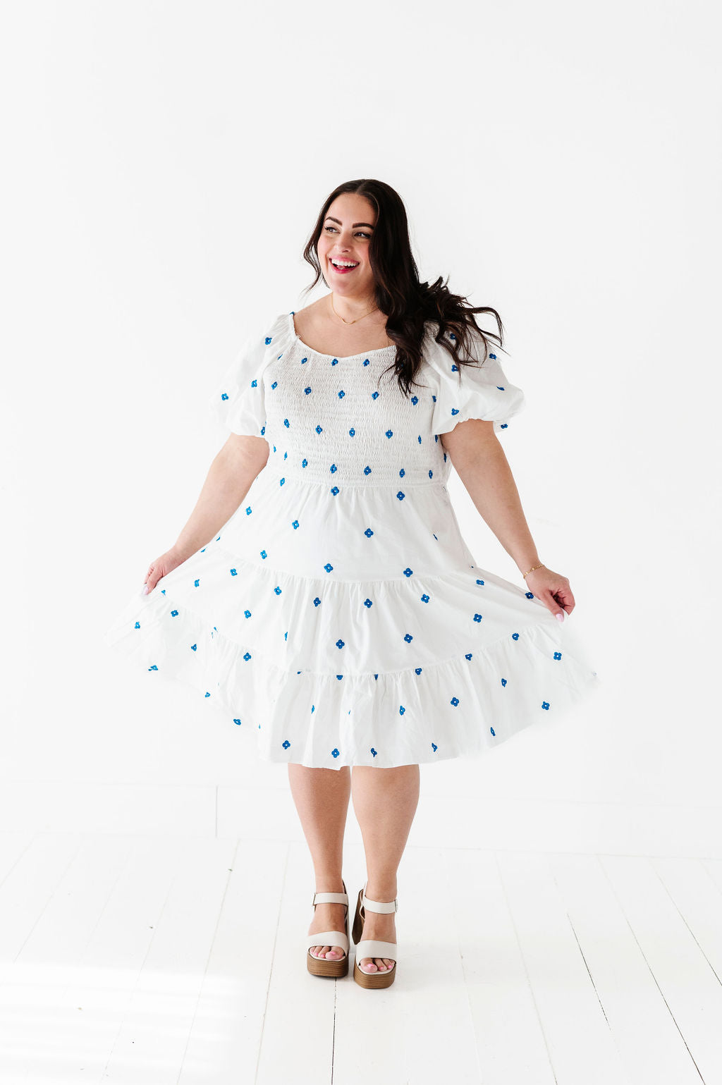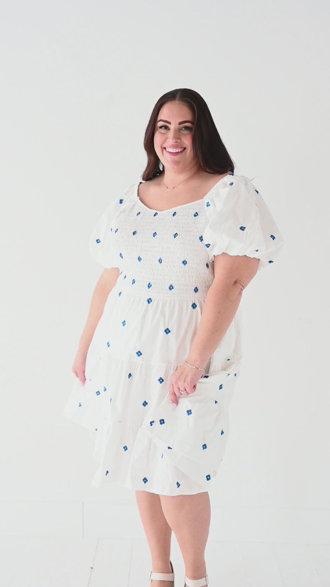 Luisa Embroidered Puff Sleeve Dress - Size 1X & 3X Left