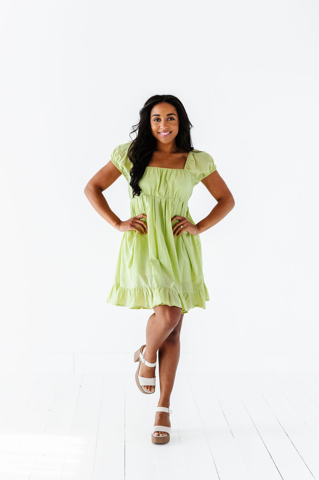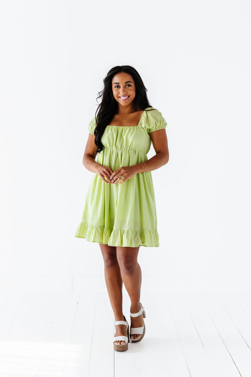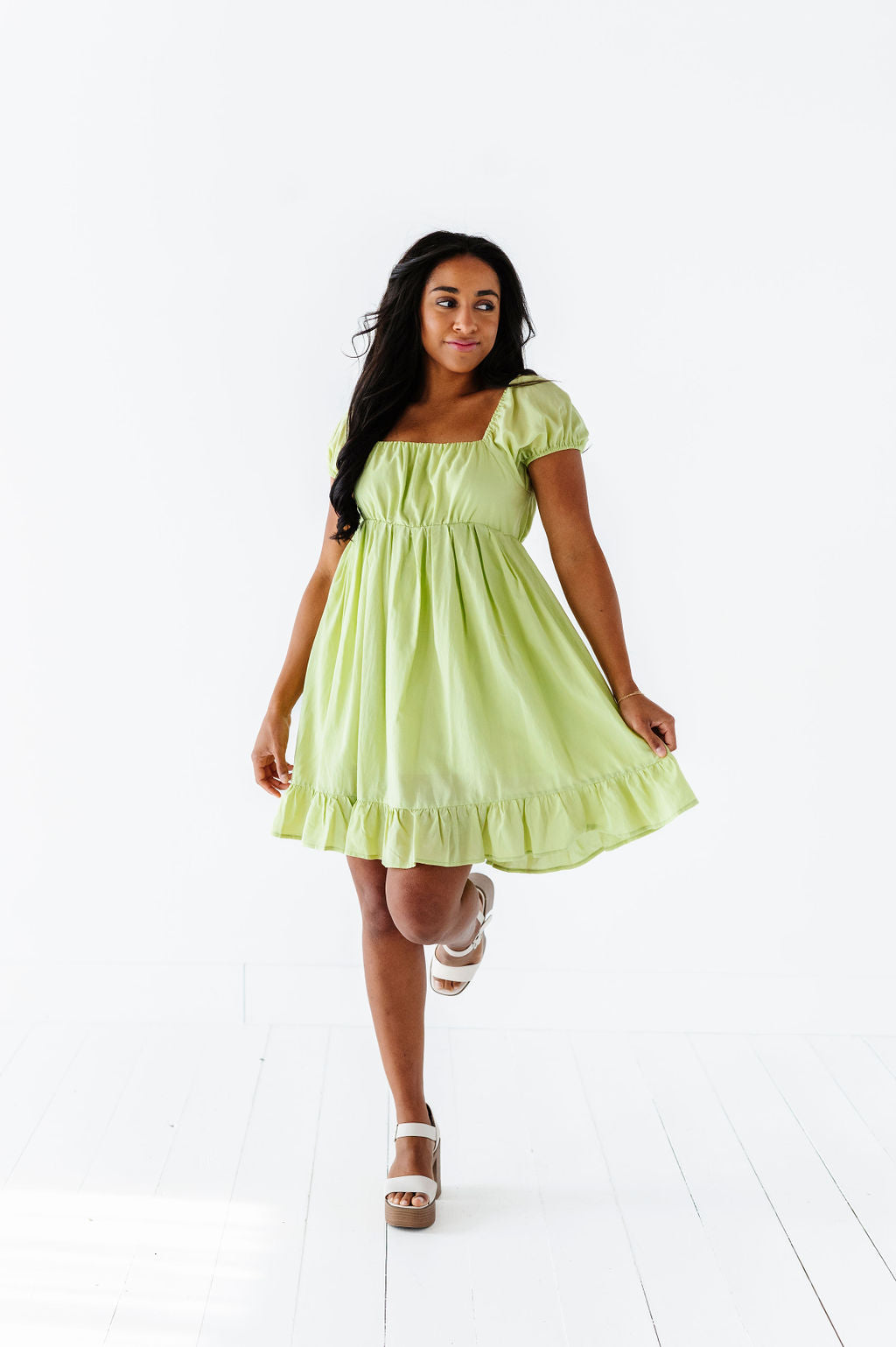 Tessa Babydoll Dress in Lime - Size Medium Left