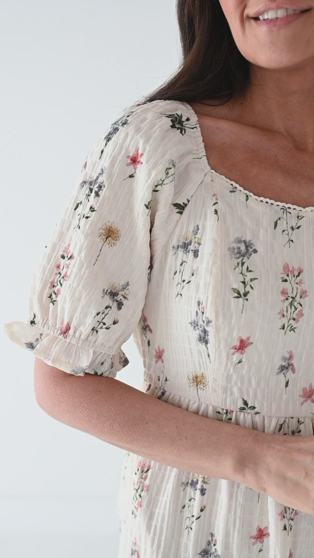 - Short puff sleeve with elastic, ruffled cuff