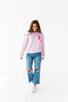 - Hot pink "Nobody Fights Alone" bubble puff paint graphic on back