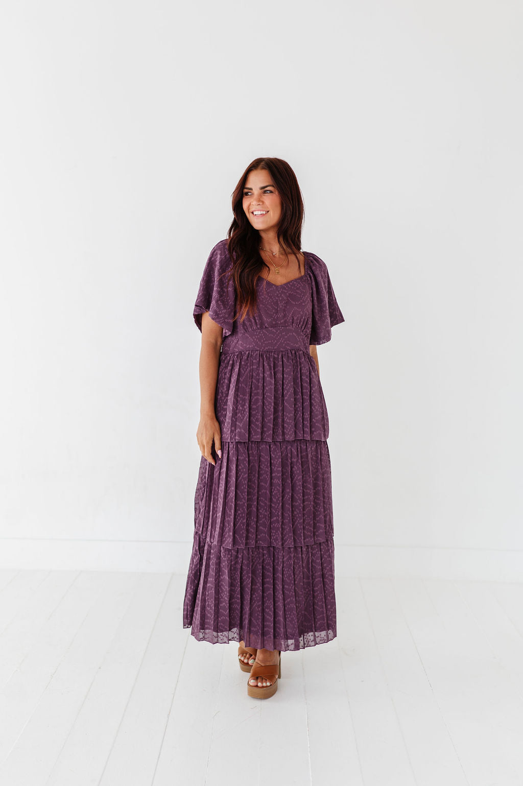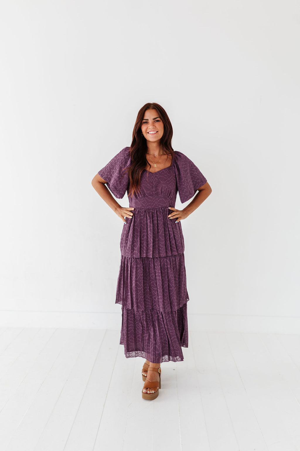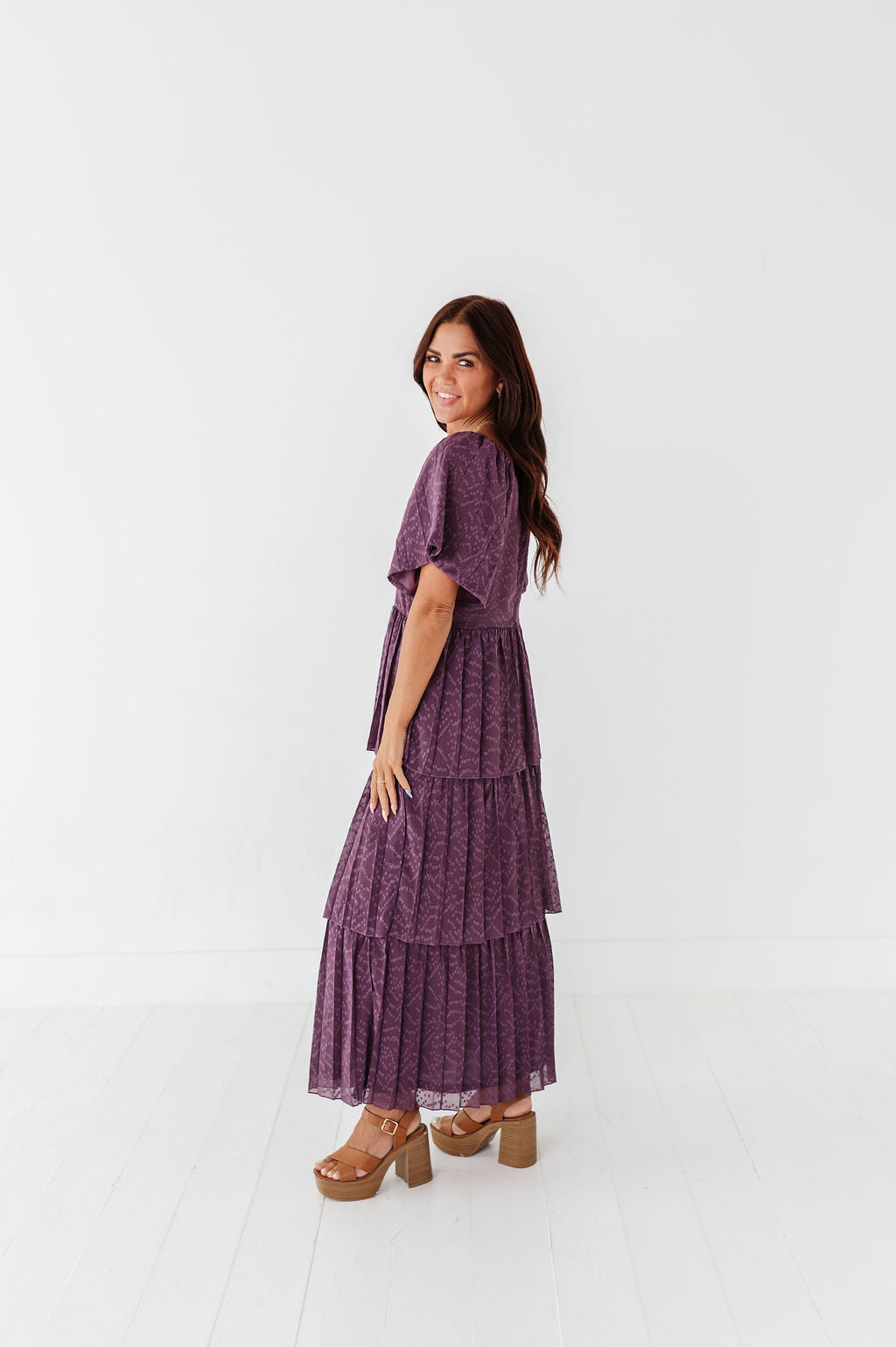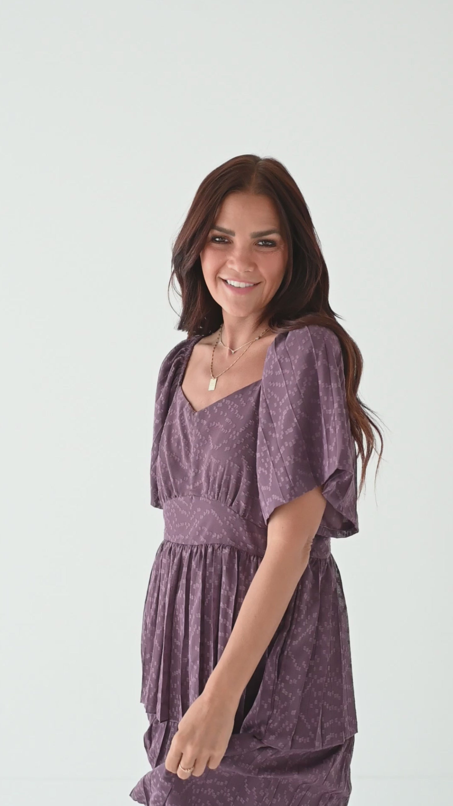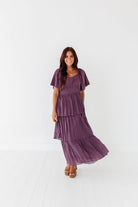 Miranda Pleated Dress in Dusty Purple