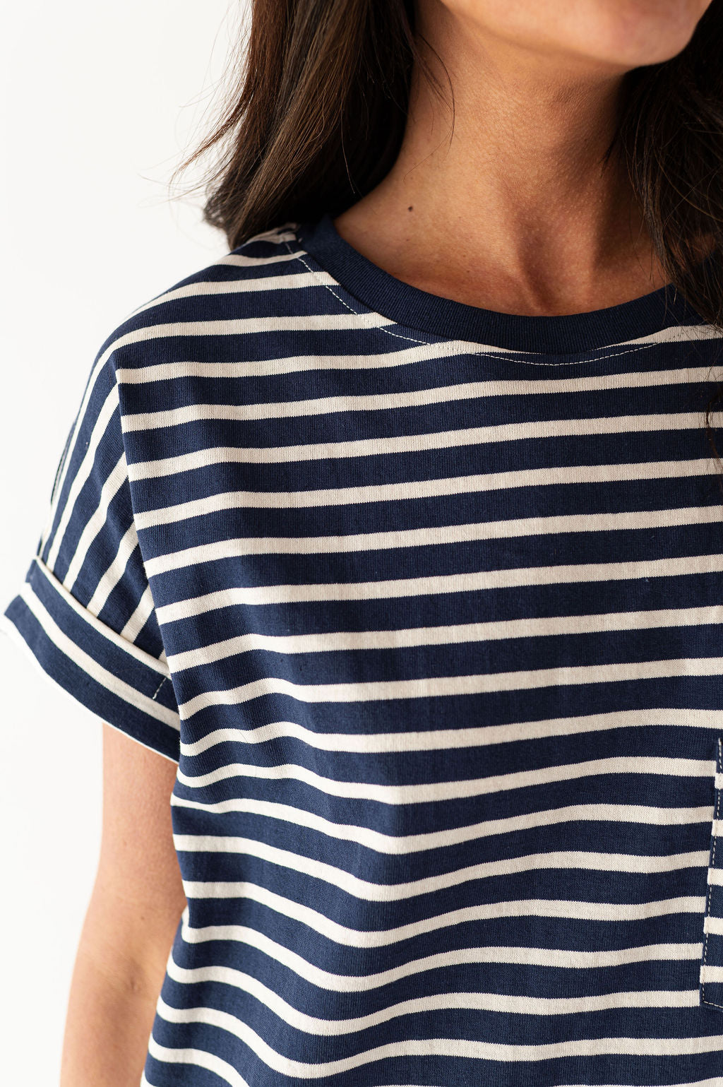 - Short sleeves with rolled cuff