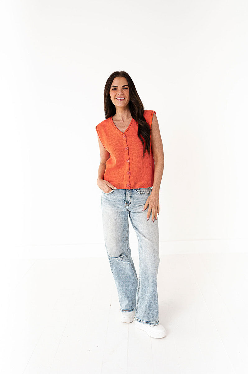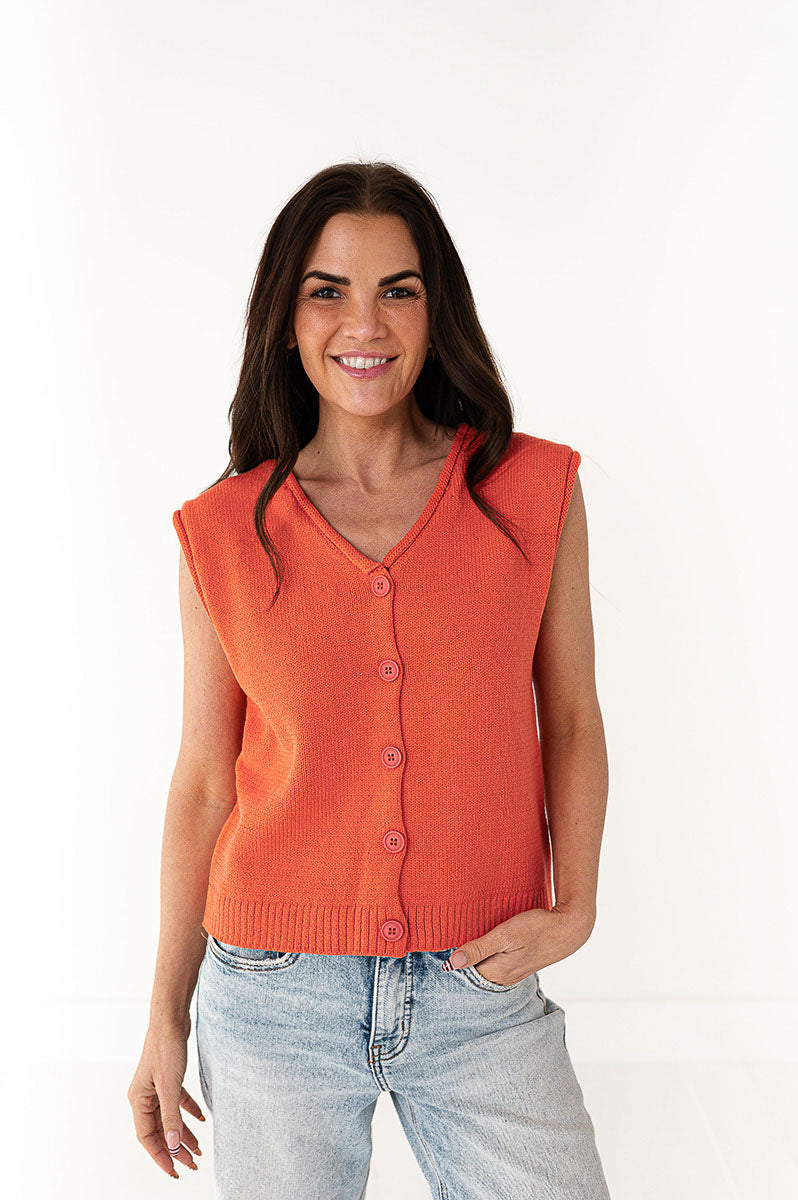 Brighton Button Up Vest in Orange