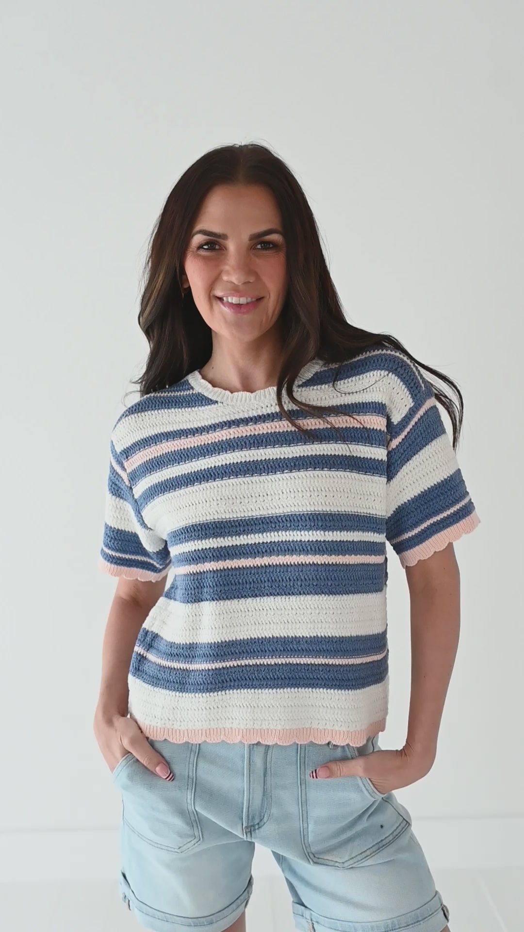 - Scalloped, ribbed trim