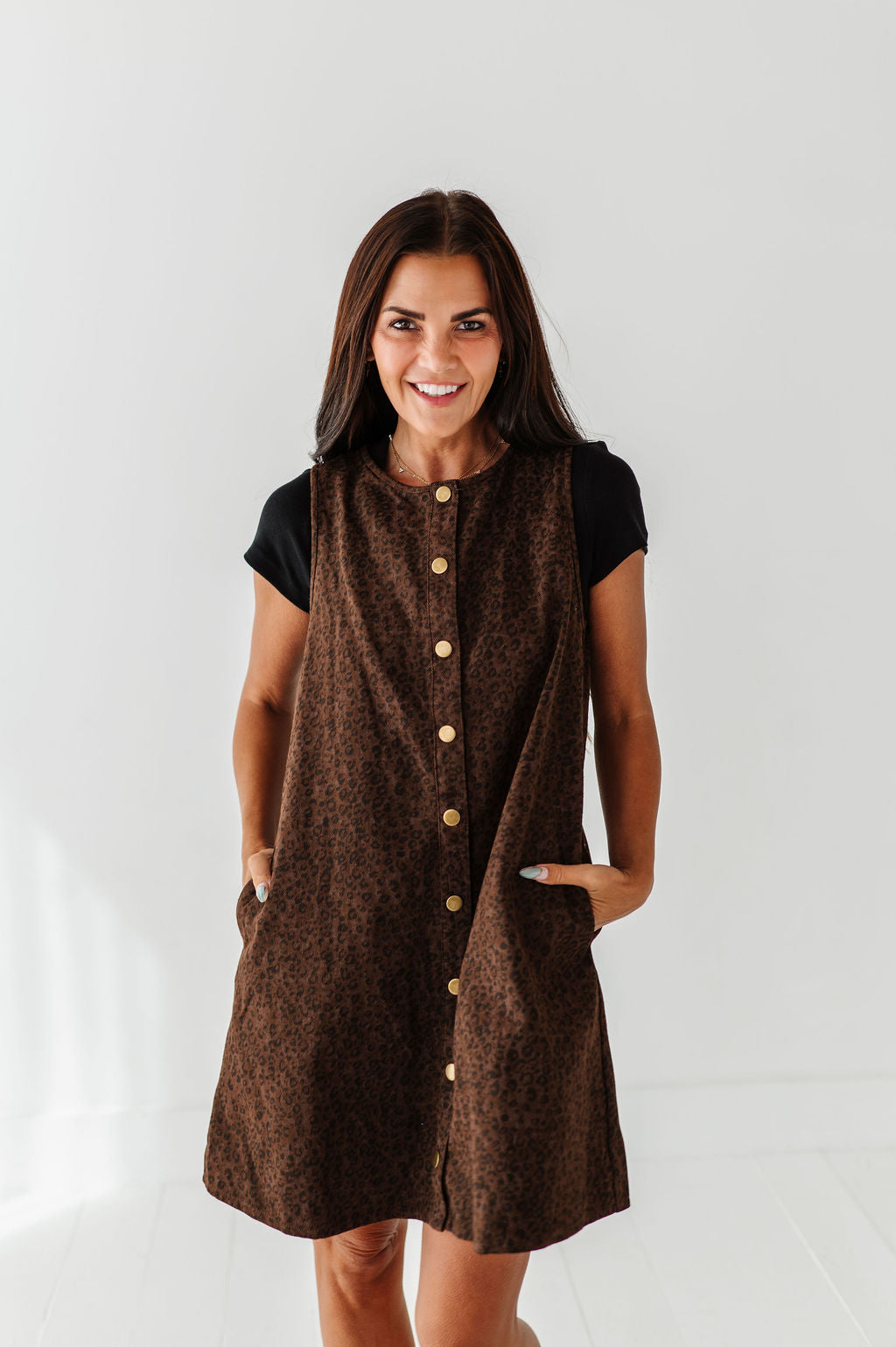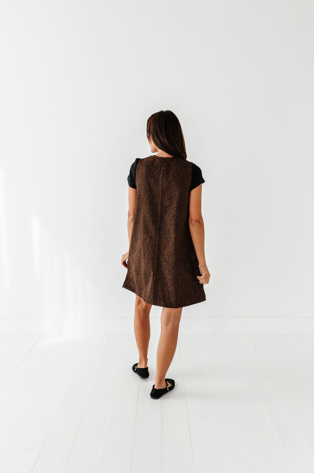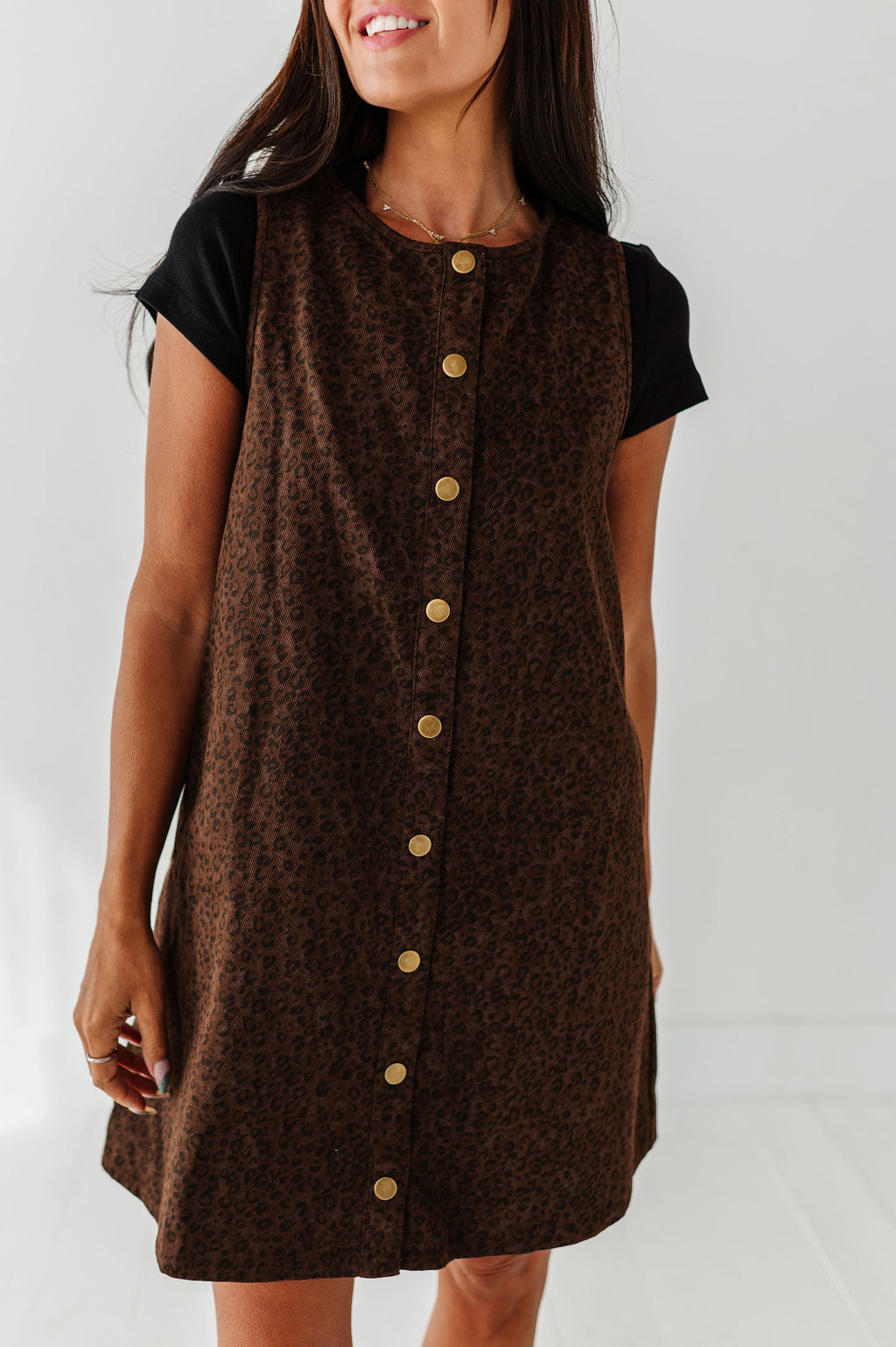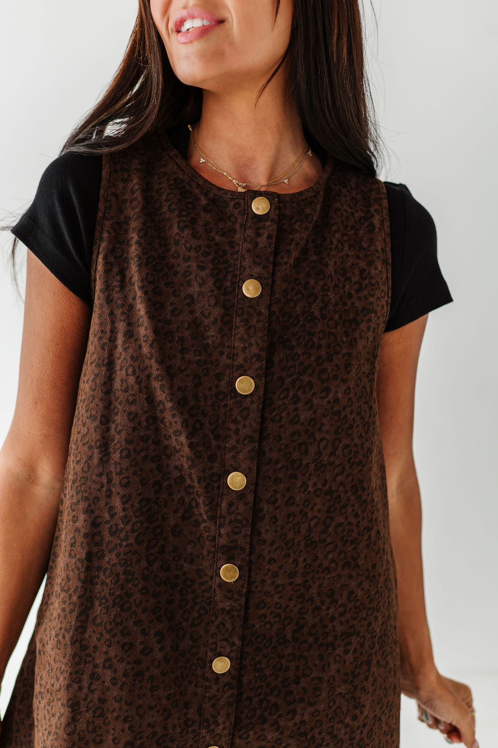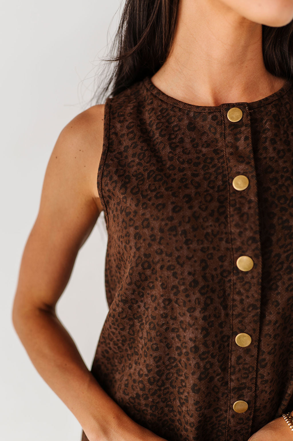 - Dark brown denim wash with black leopard print