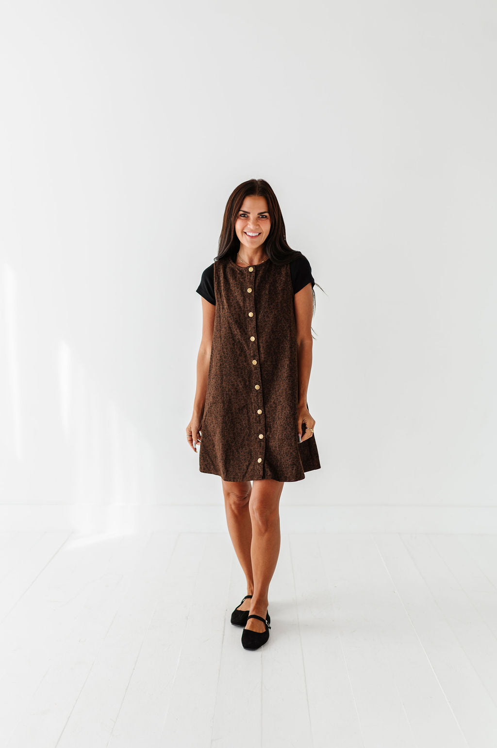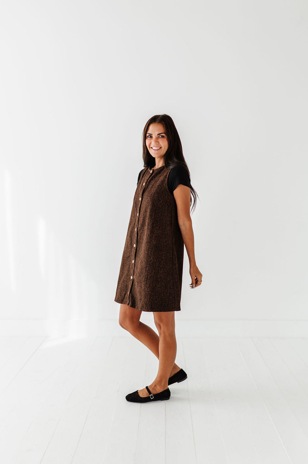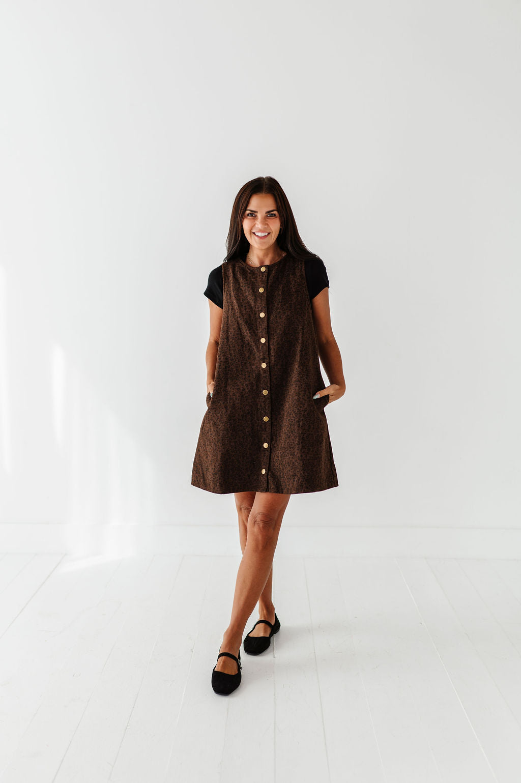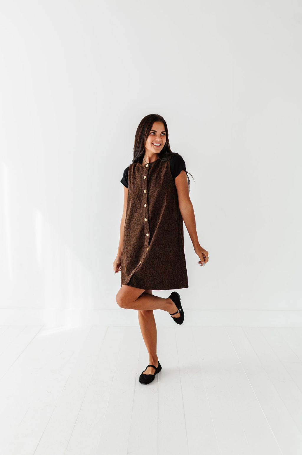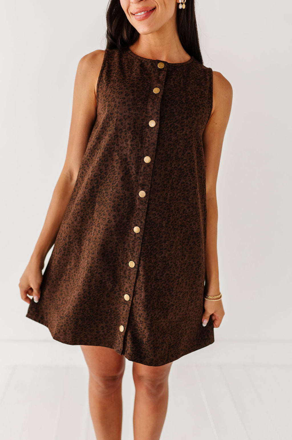 - Dark brown denim wash with black leopard print